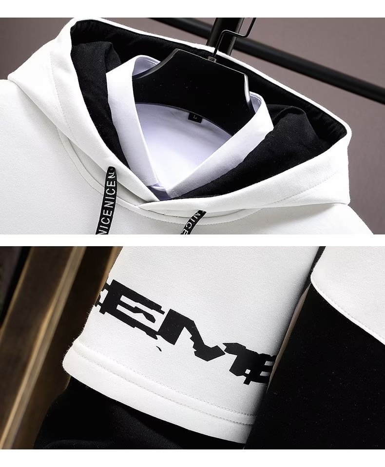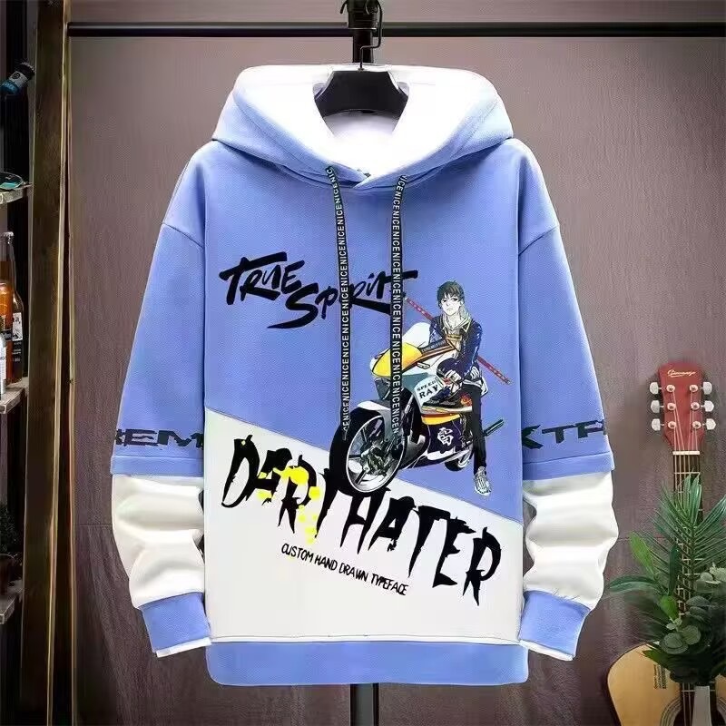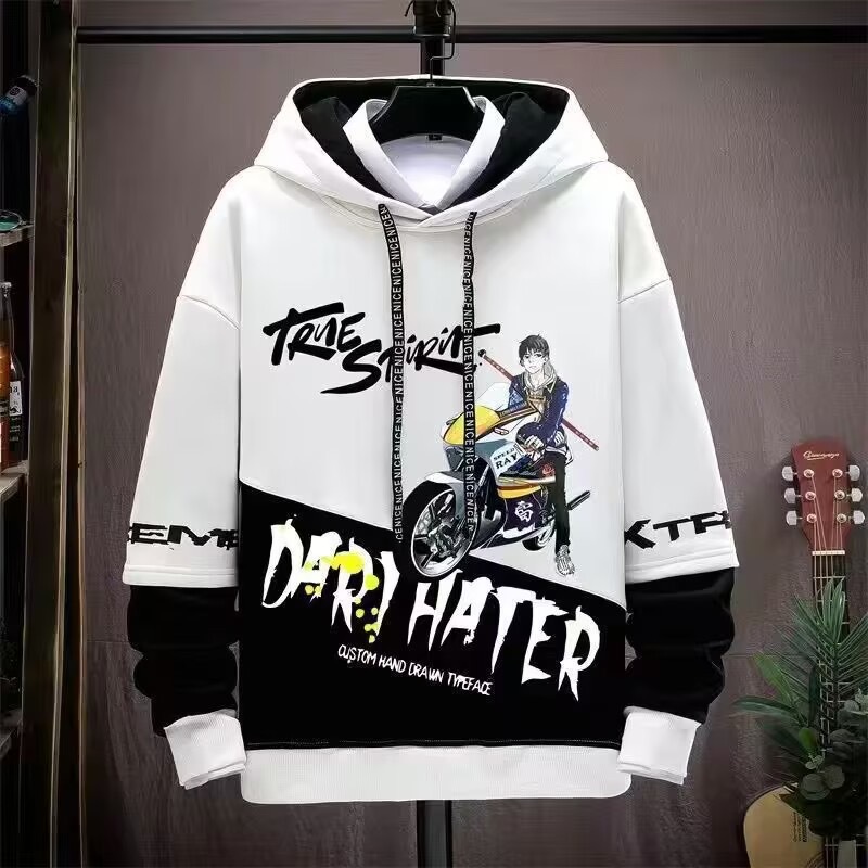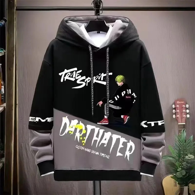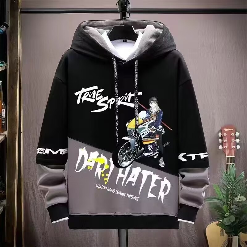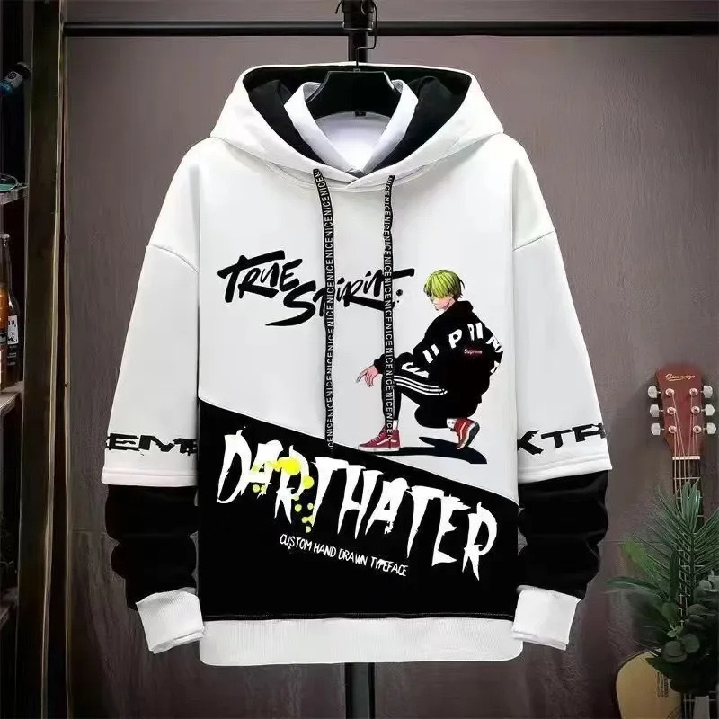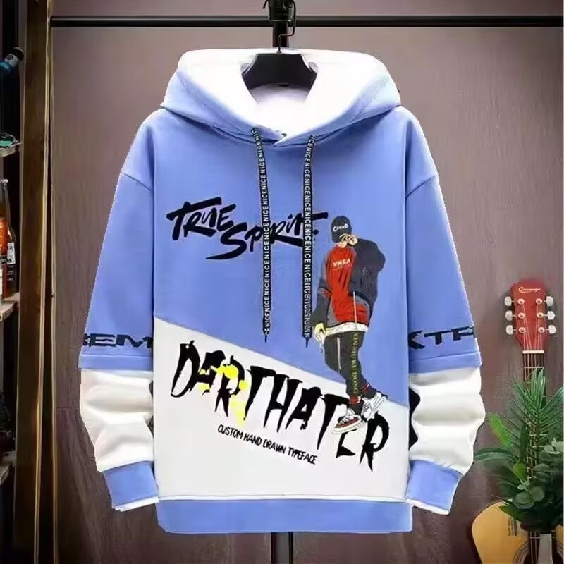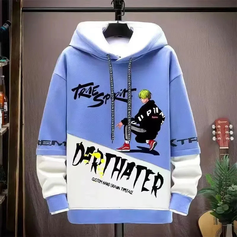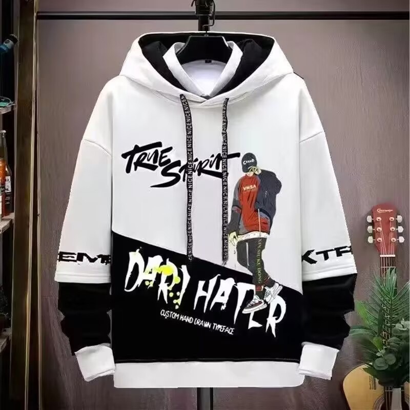 봄 초가을 스웨트 셔츠 남성용 긴팔 프린트 스플 라이스 풀오버 트렌디 브랜드 핸섬 후드 루즈 청소년 탑스토어 가기