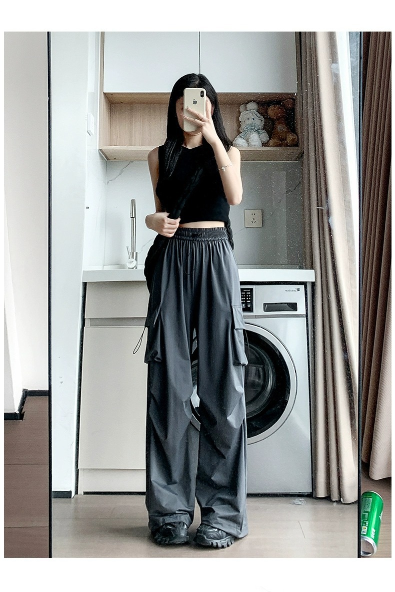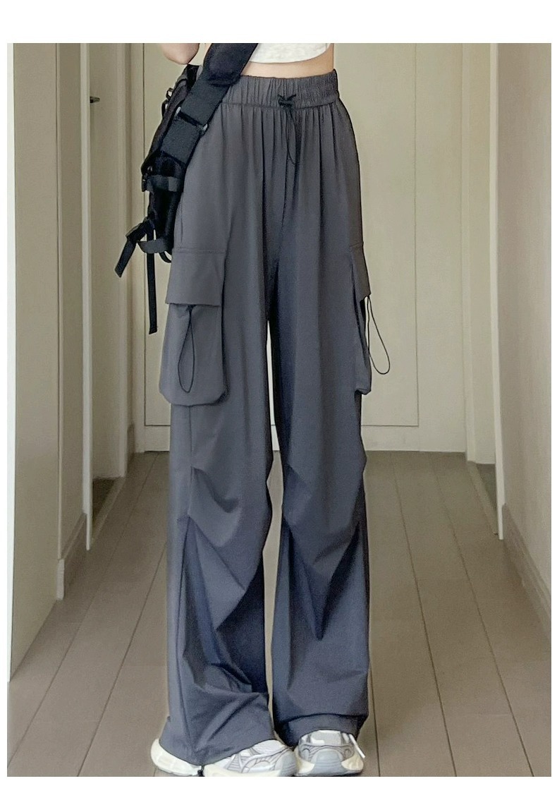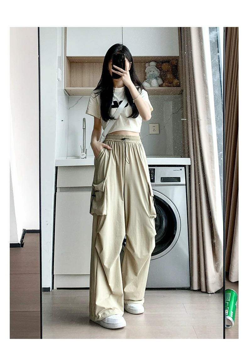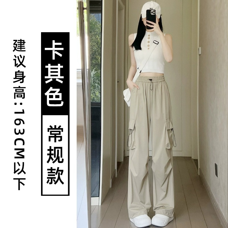 145 작은 키 큰 오버홀 여자 여름 높은 허리 충전 느슨한 넓은 다리 바지 150 빠른 건조 등산 스포츠 바지