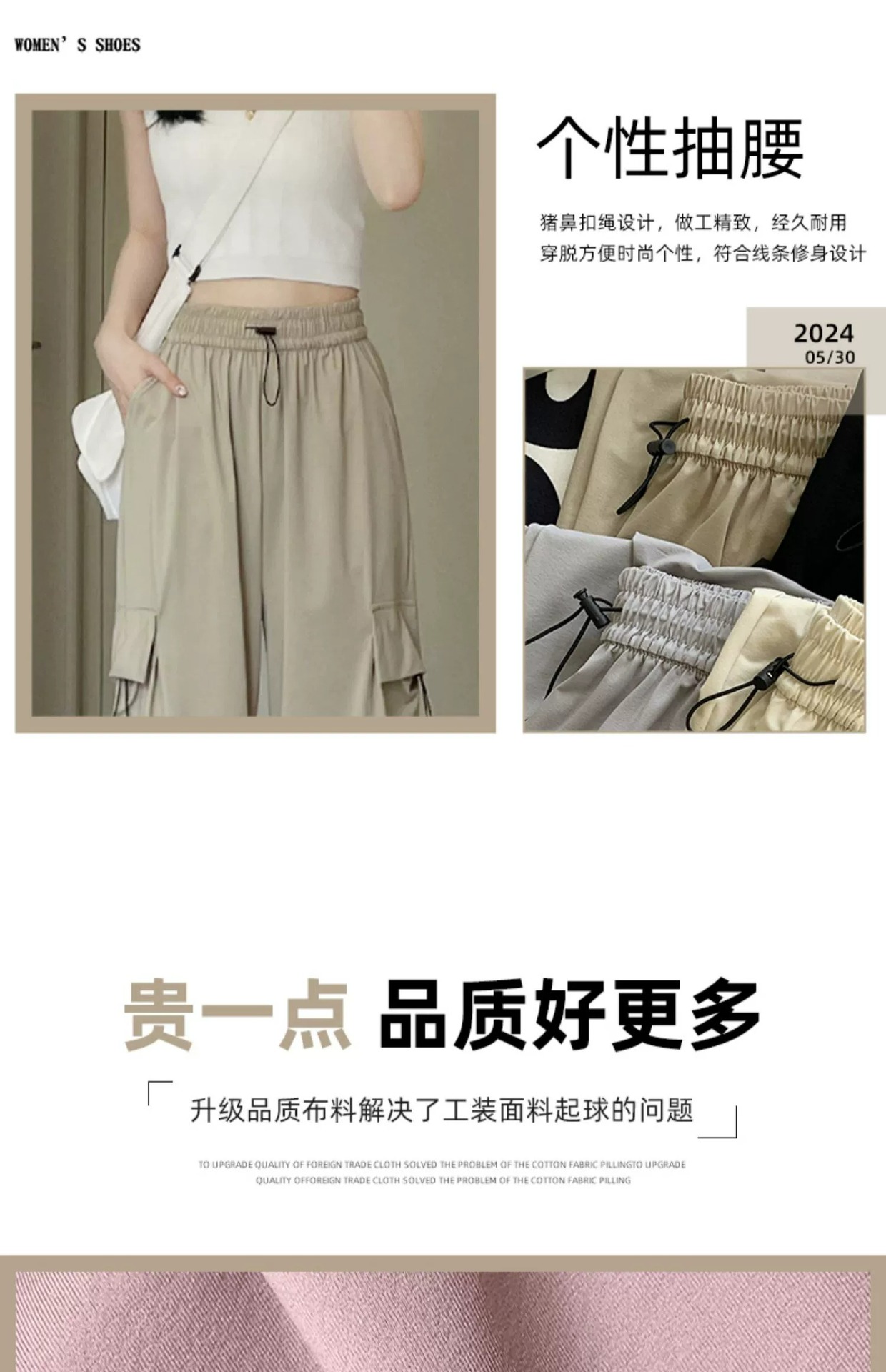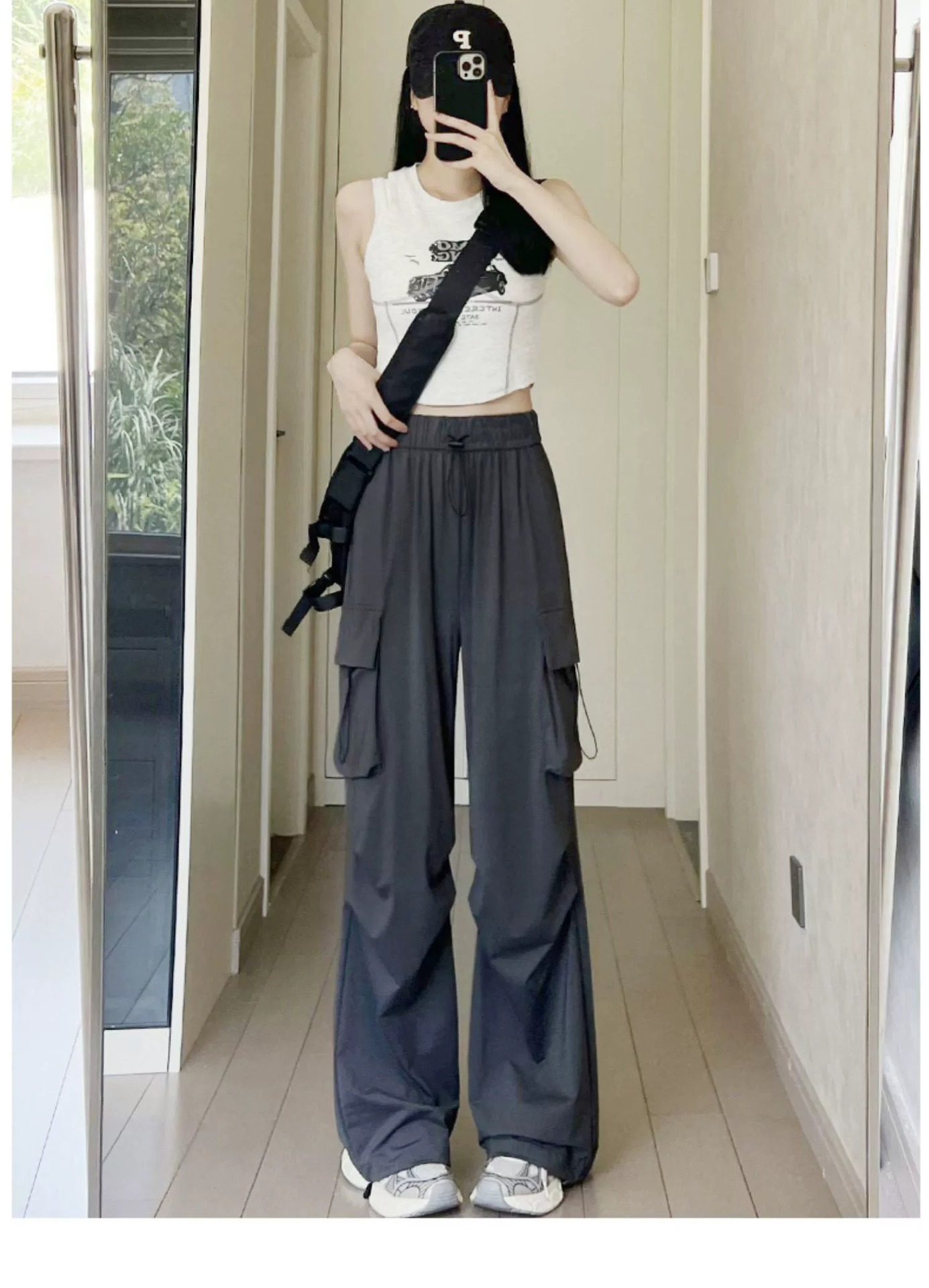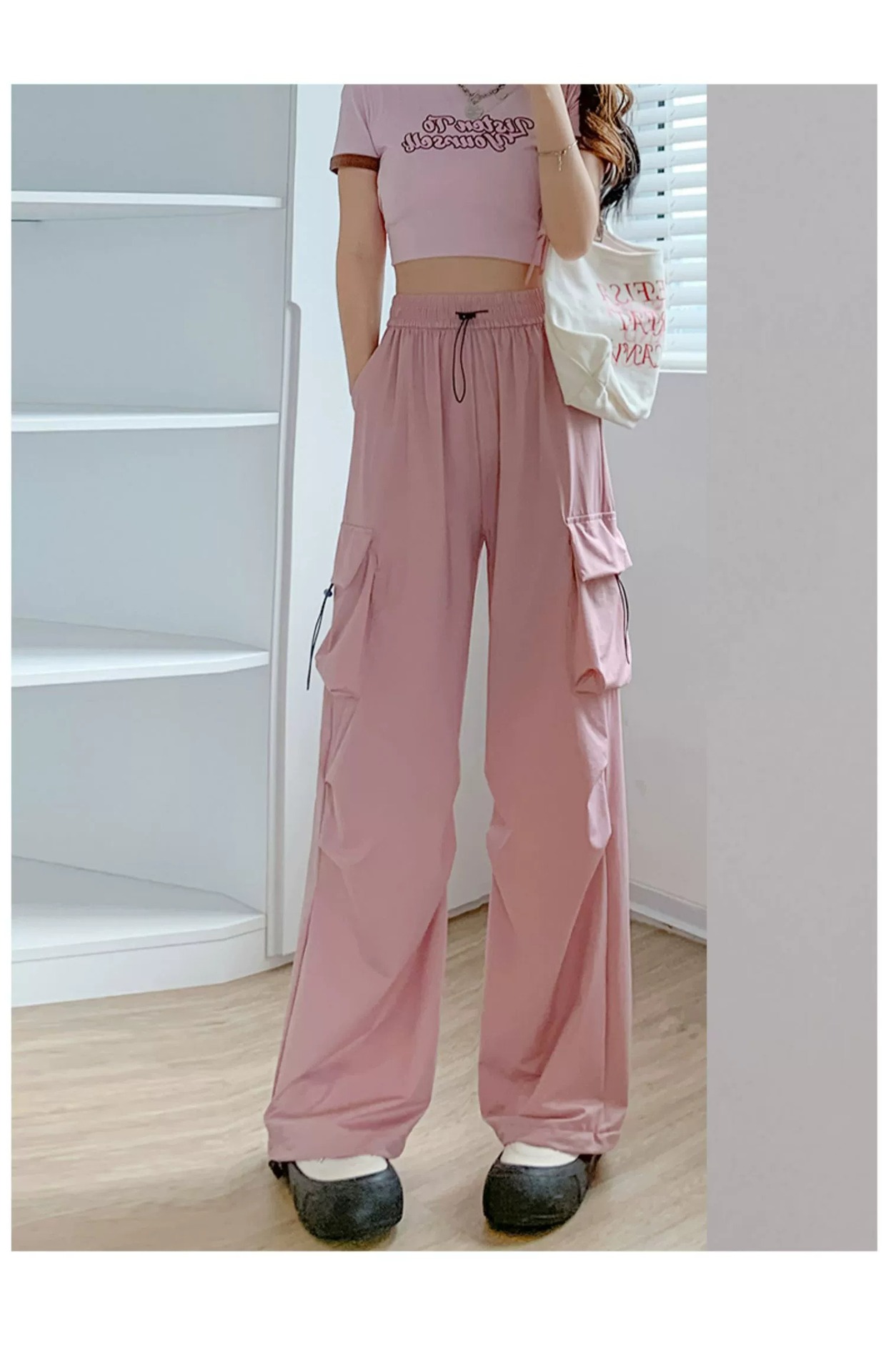 145 작은 키 큰 오버홀 여자 여름 높은 허리 충전 느슨한 넓은 다리 바지 150 빠른 건조 등산 스포츠 바지스토어 가기