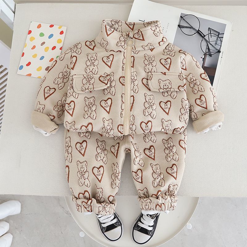 소년과 소녀 봄 정장 2025 새로운 스타일 어린 소녀 아기 봄, 가을 캐주얼 겉옷 사랑 버블 정장스토어 가기