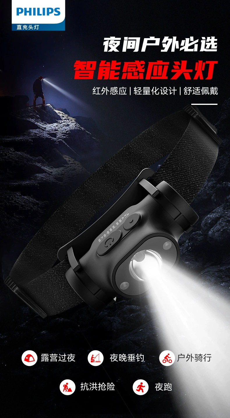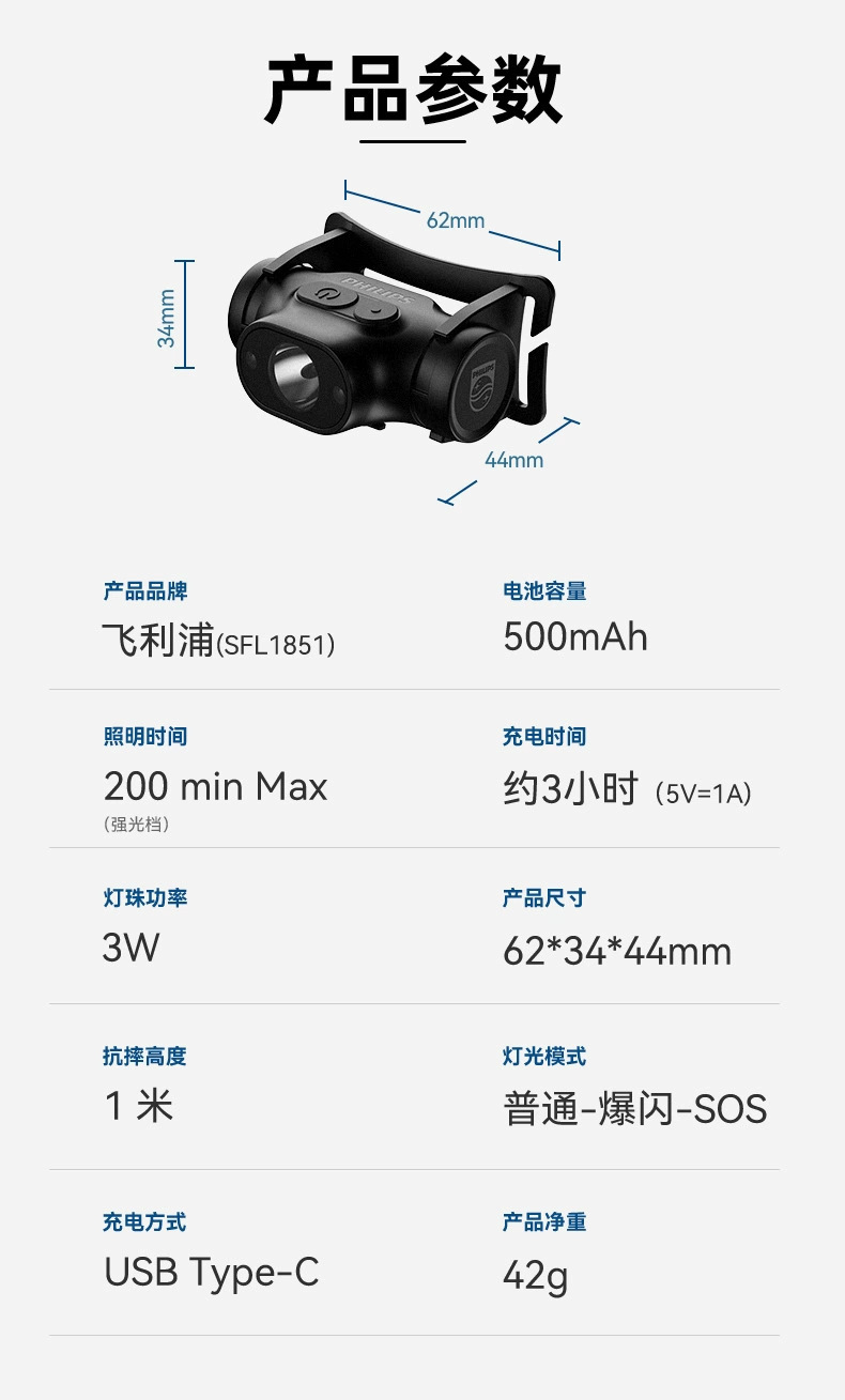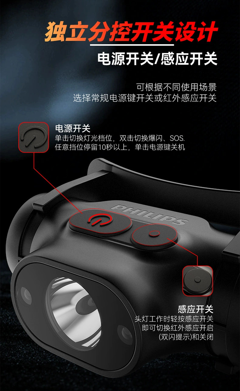 필립스 SFL1851 헤드 장착 장거리 손전등 야외 캠핑 휴대용 손전등 유도 헤드 램프