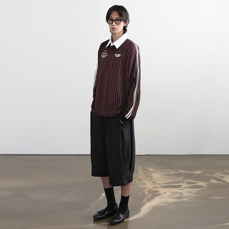 한국 badblood 아메리칸 스타일 레트로 스트라이프 셔츠 여성 폴로 라펠 칼리지 스타일 긴 소매 셔츠 코트 탑
