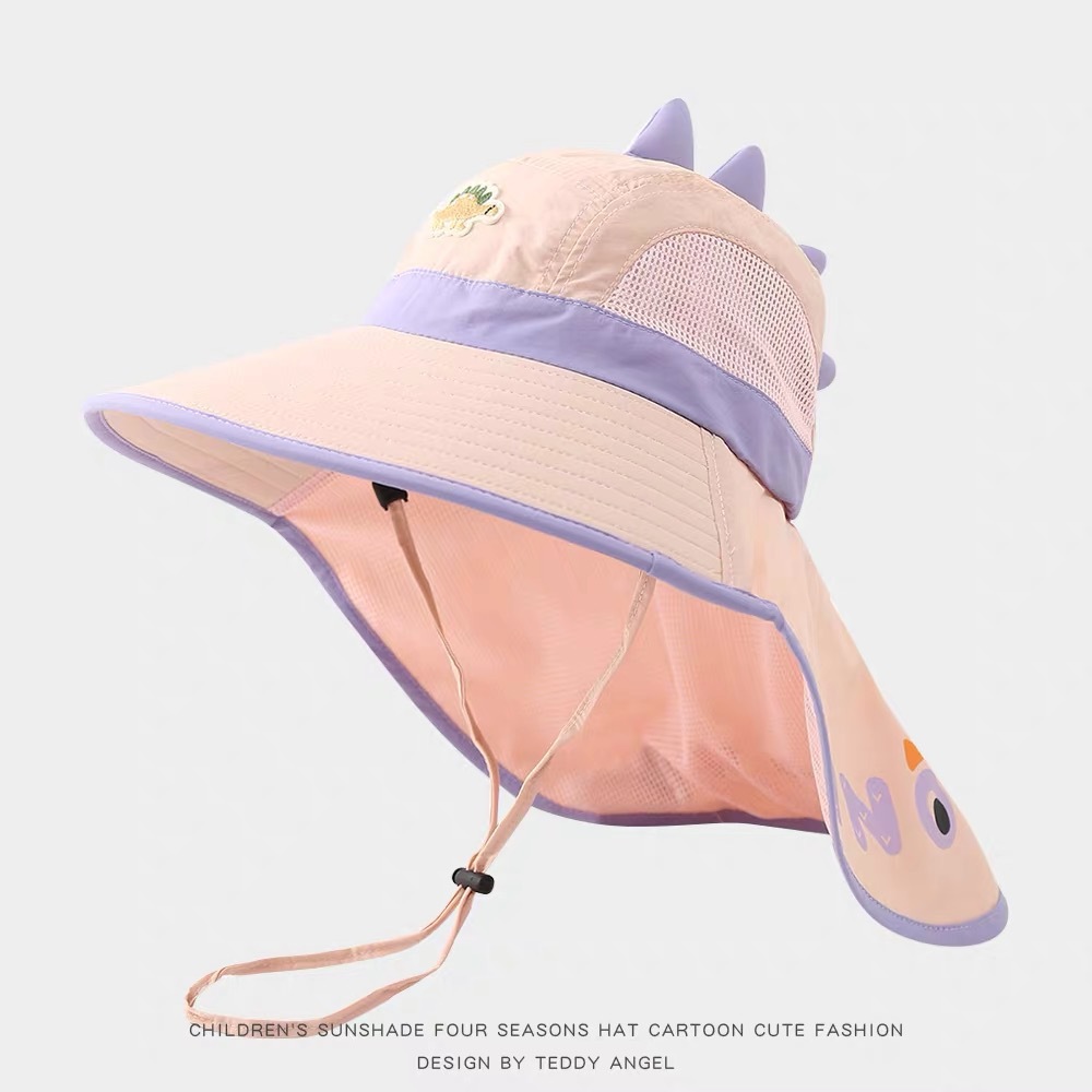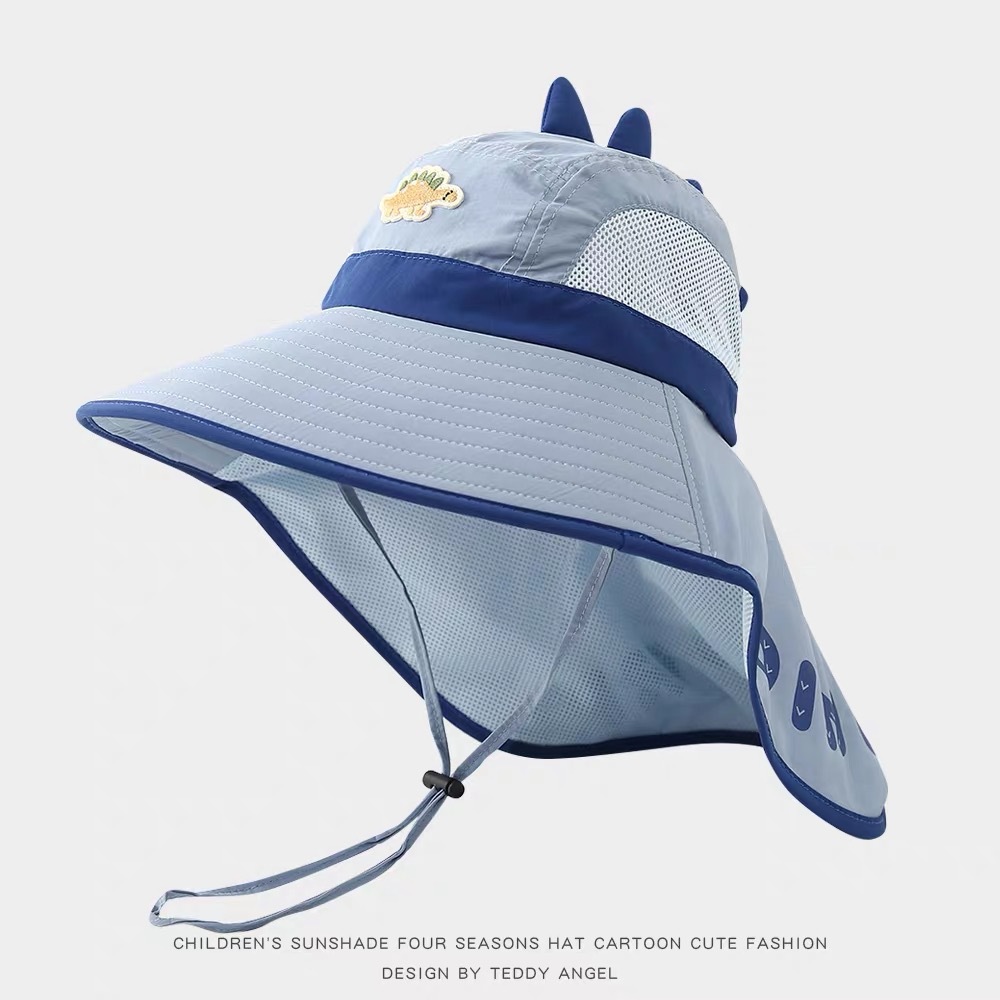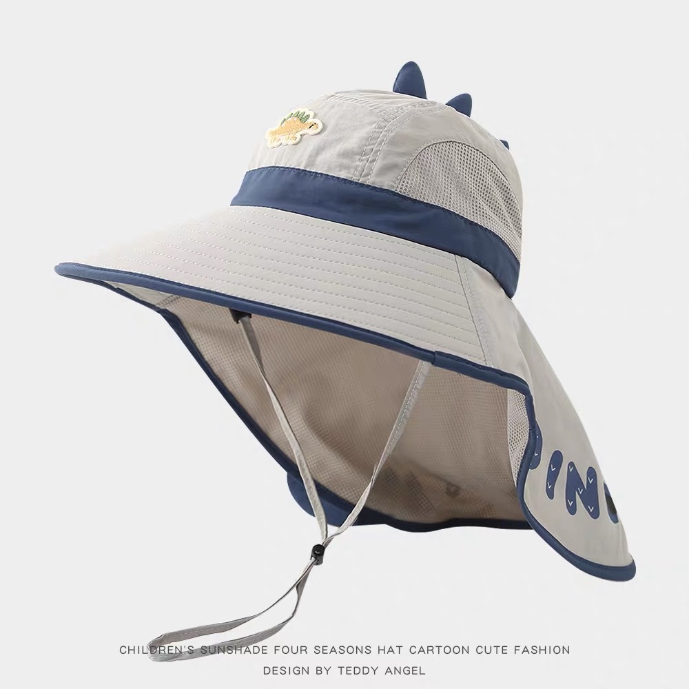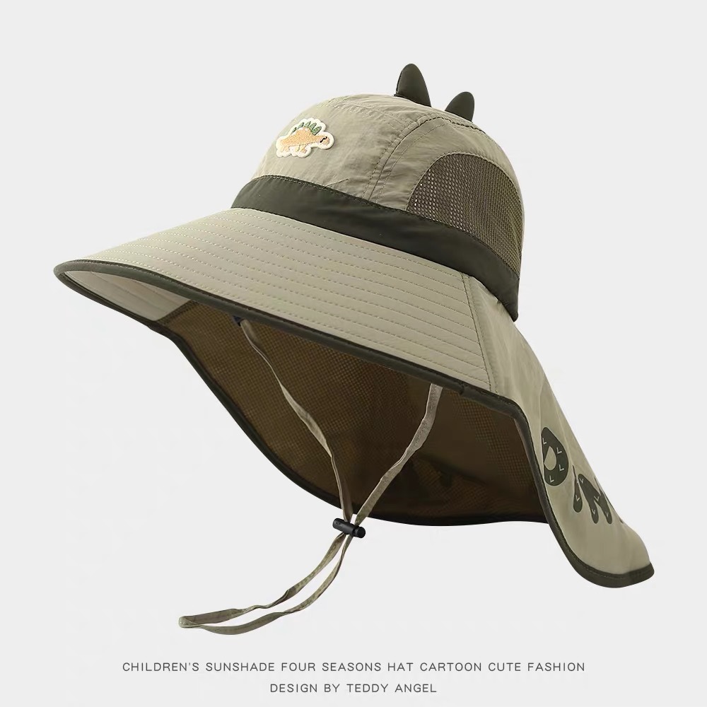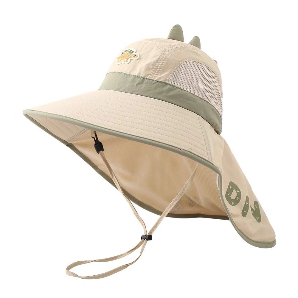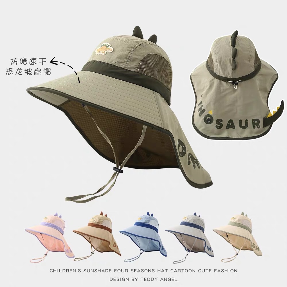 어린이 태양 보호 모자 여름 통기성 공룡 큰 챙 어부 모자 아기 야외 해변 목 보호 목도리 태양 모자