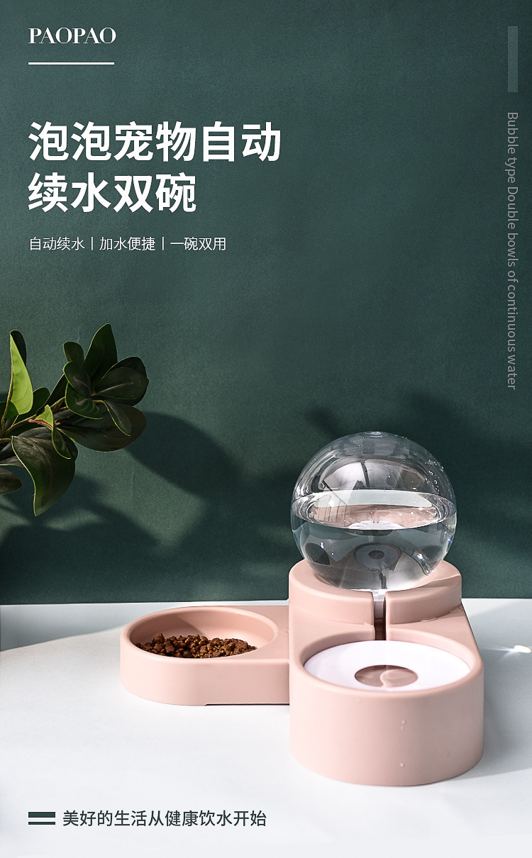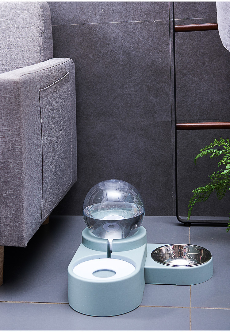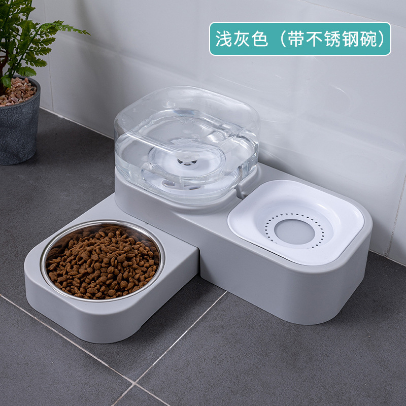 애완견 그릇, 스테인리스 이중 그릇, 일체형, 물기 없는 입, 고급스러운 외관, 대용량, 고양이 그릇이 넘어짐 방지, 물과 사료 일체형스토어 가기