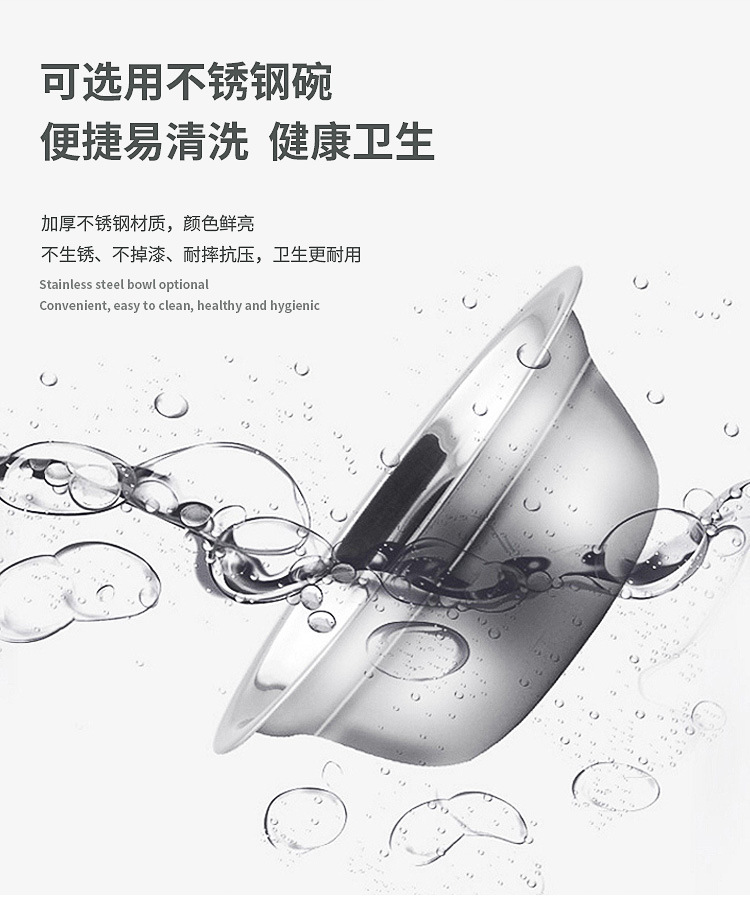 애완견 그릇, 스테인리스 이중 그릇, 일체형, 물기 없는 입, 고급스러운 외관, 대용량, 고양이 그릇이 넘어짐 방지, 물과 사료 일체형