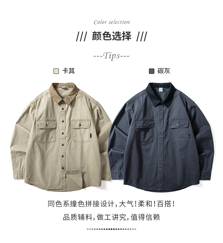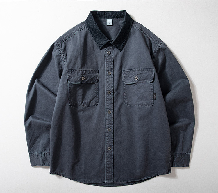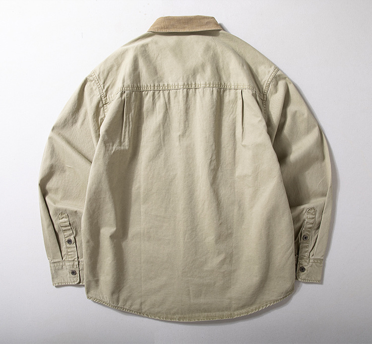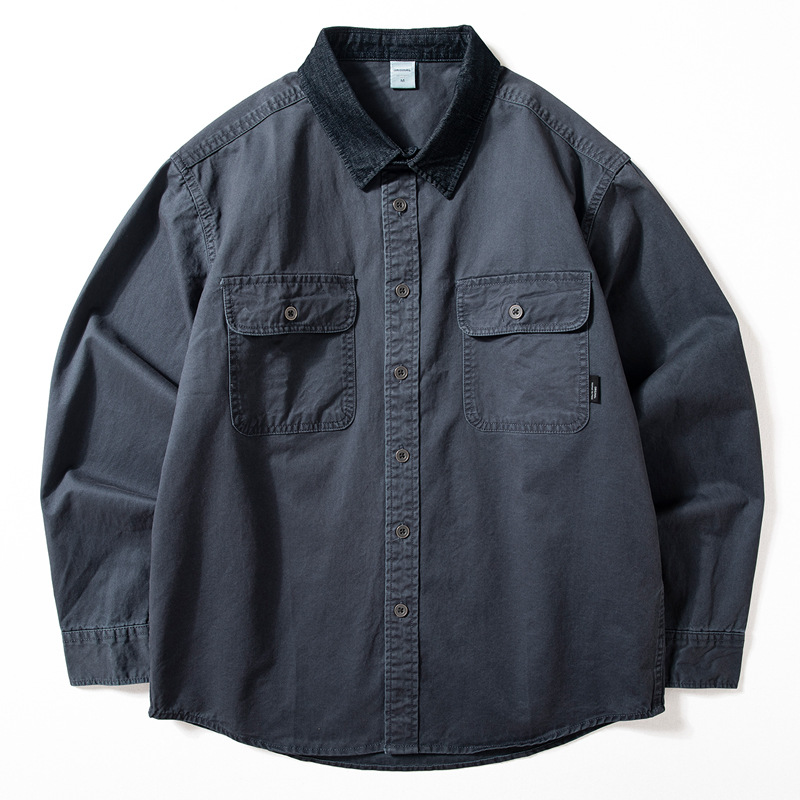 크록 셔츠 남성용 긴팔 두껍게 씻은 늙은면 느슨한 미국 스타일 옷깃 탑 봄과 가을 얇은 코트 트렌디