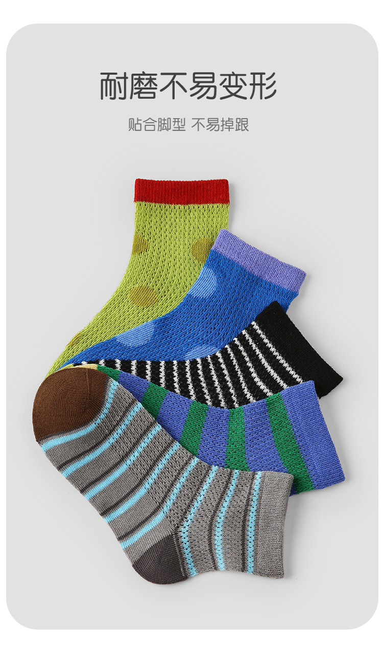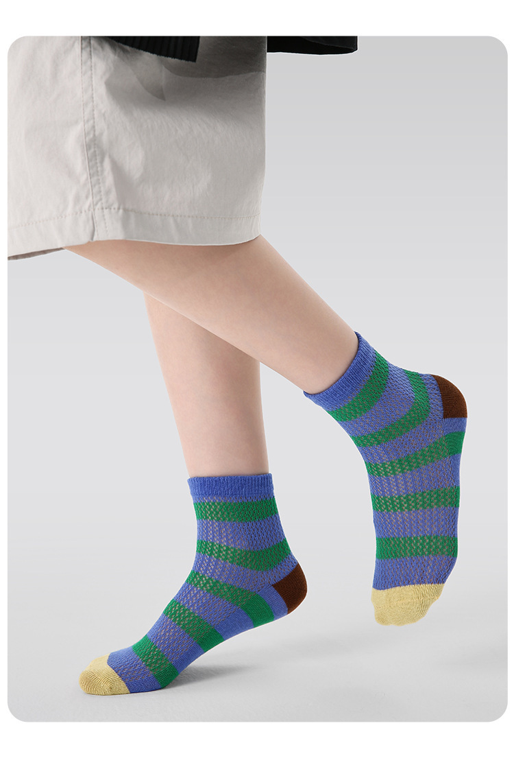 어린이 양말 도매 2025 봄과 여름 얇은 줄무늬 웨이브 포인트 카드 스타킹면 통기성 스포츠 메쉬 소년 양말스토어 가기