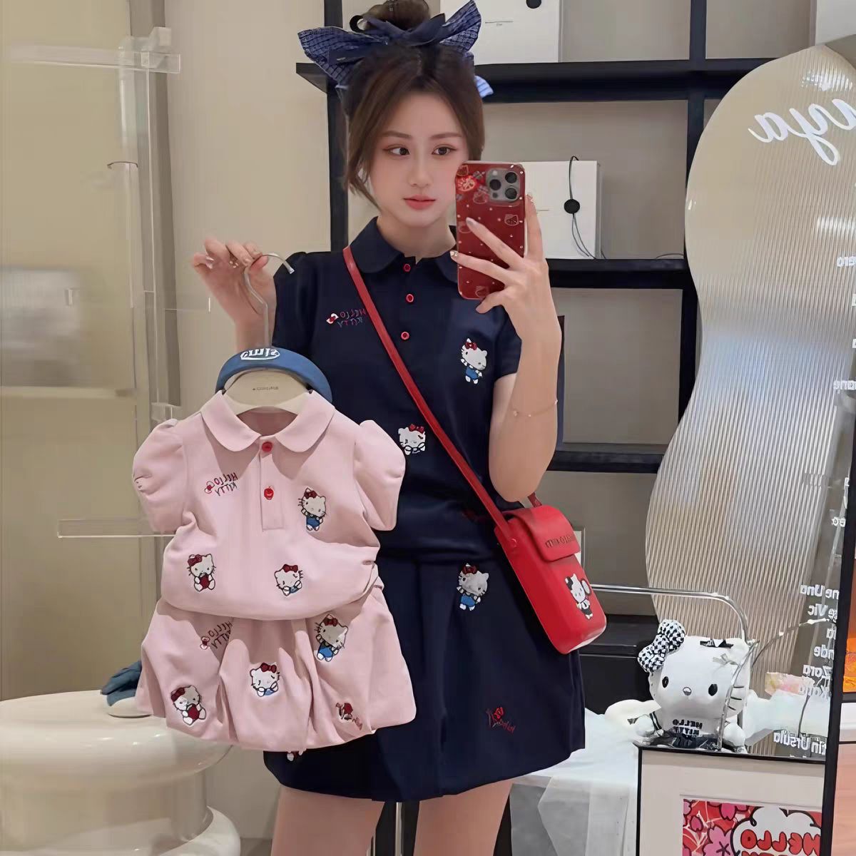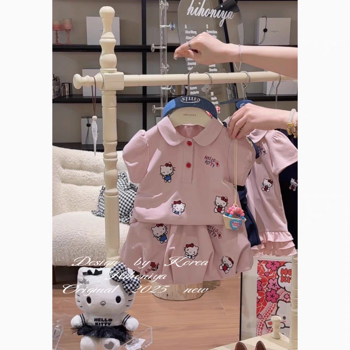 소녀의 키티 고양이 세트 2025 여름 새로운 스타일 어린이 탑 소녀의 여름 스커트 투피스 세트스토어 가기