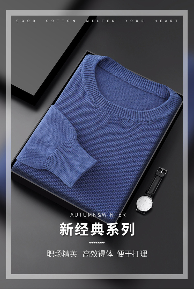 가을 겨울 신작 남성 순면 스웨터 라운드 넥 풀오버 한국 스타일 캐주얼 루즈 긴팔 스웨터스토어 가기