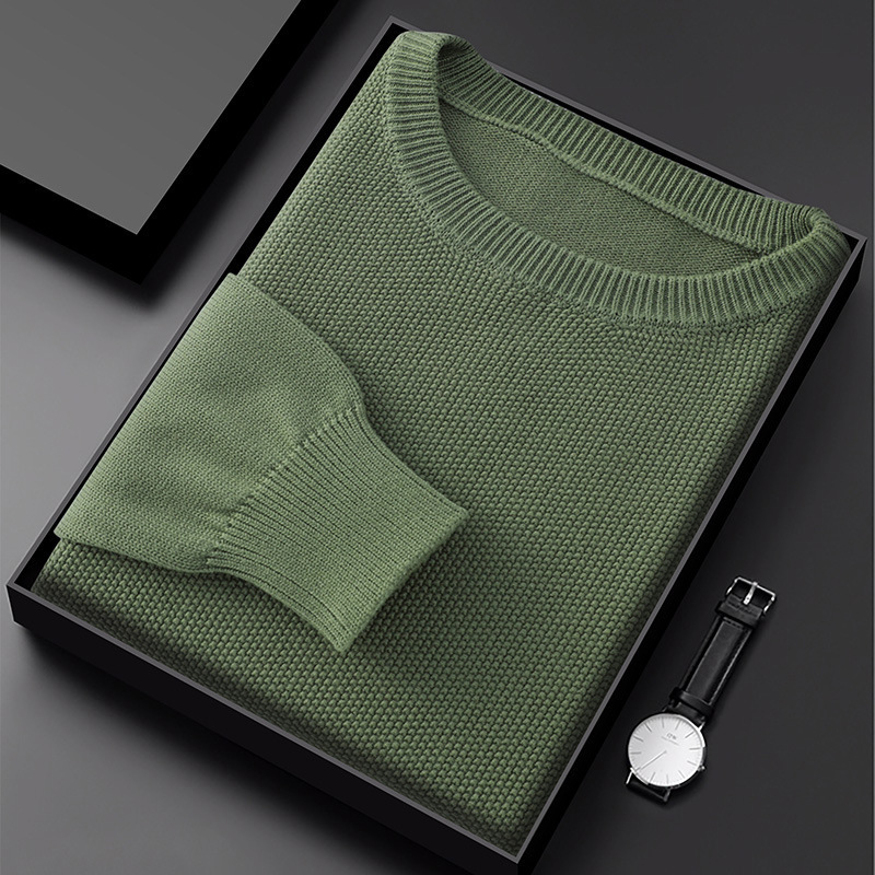 가을 겨울 신작 남성 순면 스웨터 라운드 넥 풀오버 한국 스타일 캐주얼 루즈 긴팔 스웨터