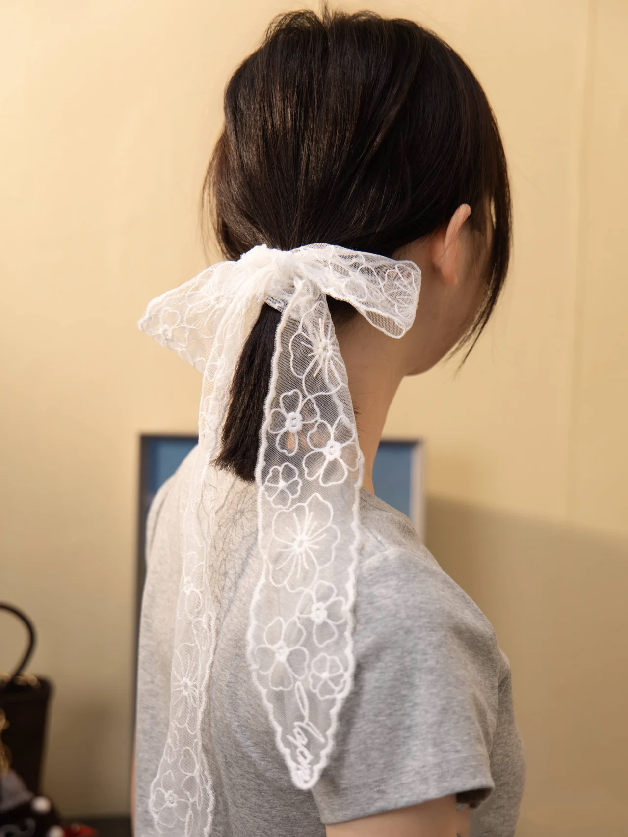 레이스 활 실크 스카프 헤어 벨트 메쉬 레이스 리본 분위기 올 매치 여름 헤어 액세서리 목 긴 실크 스카프스토어 가기
