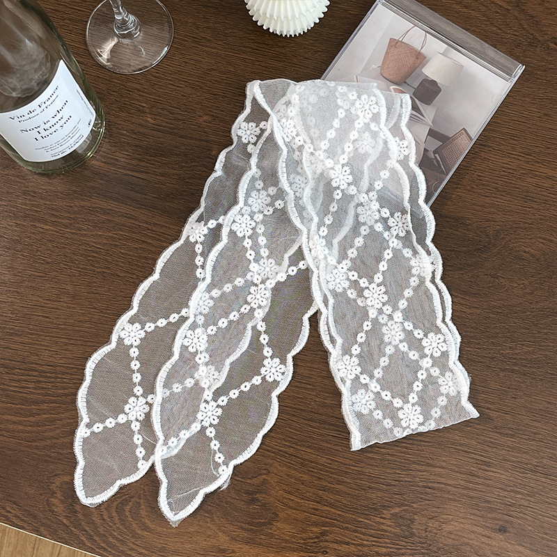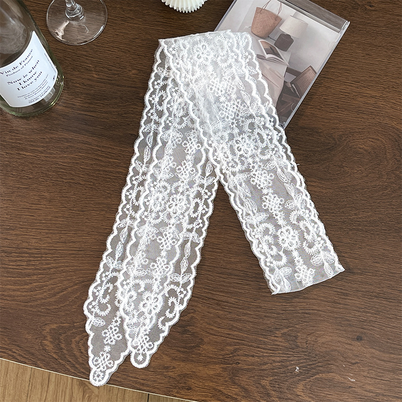 레이스 활 실크 스카프 헤어 벨트 메쉬 레이스 리본 분위기 올 매치 여름 헤어 액세서리 목 긴 실크 스카프