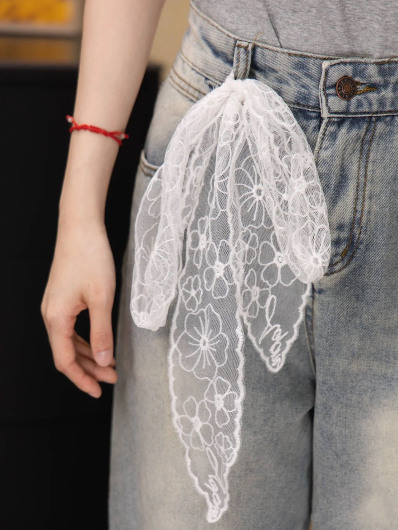 • 레이스 꽃 흰 리본