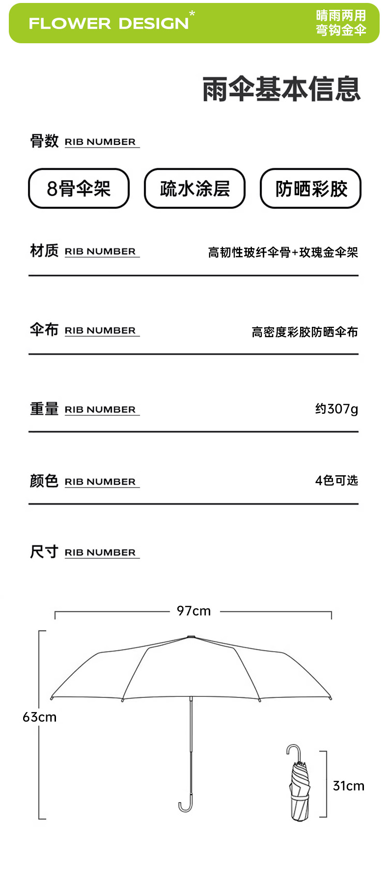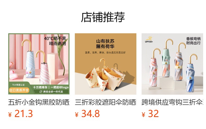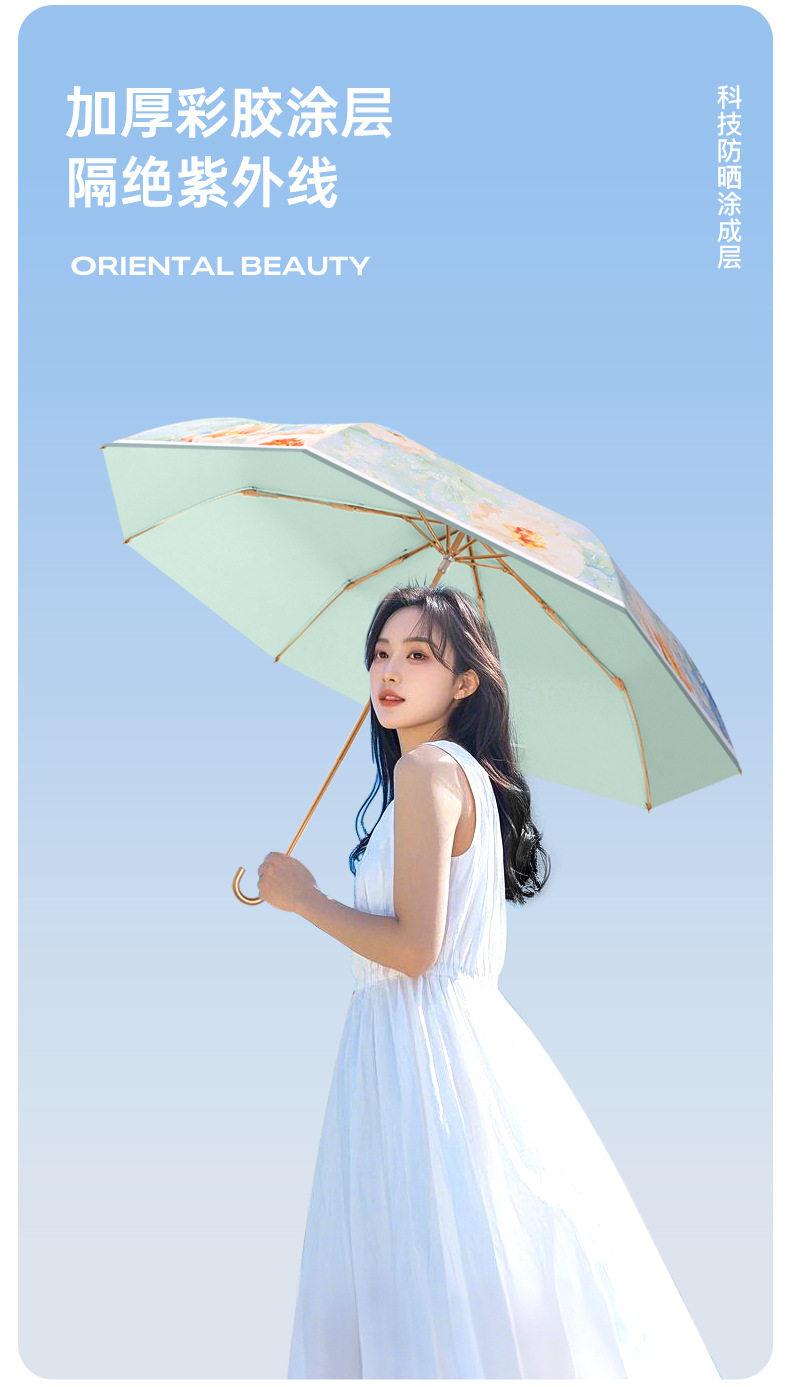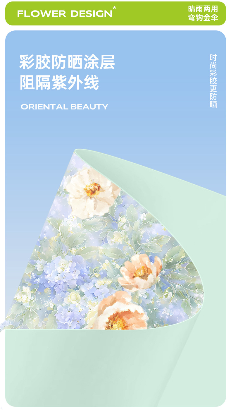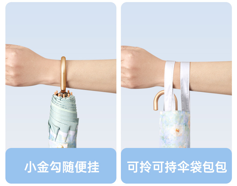 골든 커브 후크 파라솔 컬러 접착제 태양 보호 태양 우산 도매 태양 우산 사용자 정의 접는 휴대용 하이 엔드 우산 여성을위한스토어 가기