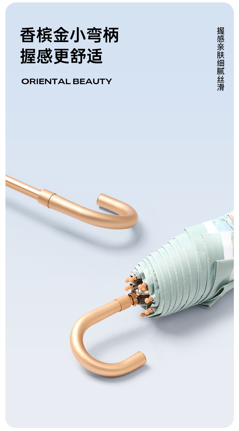 골든 커브 후크 파라솔 컬러 접착제 태양 보호 태양 우산 도매 태양 우산 사용자 정의 접는 휴대용 하이 엔드 우산 여성을위한