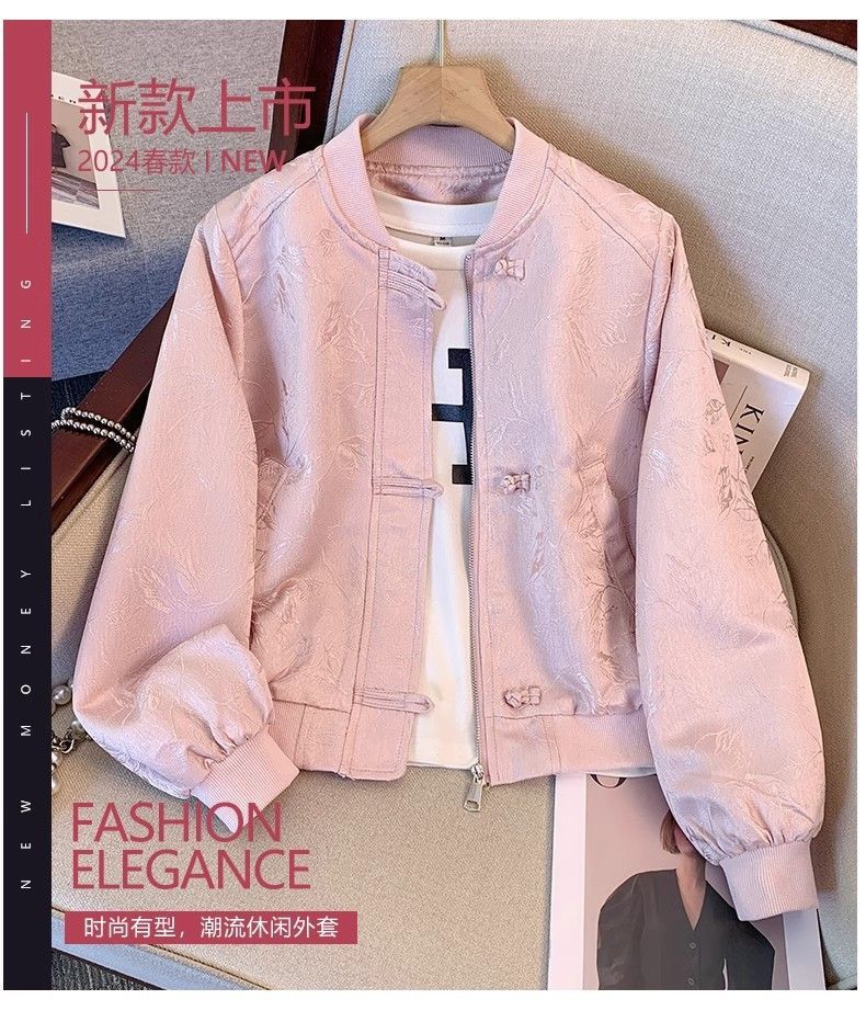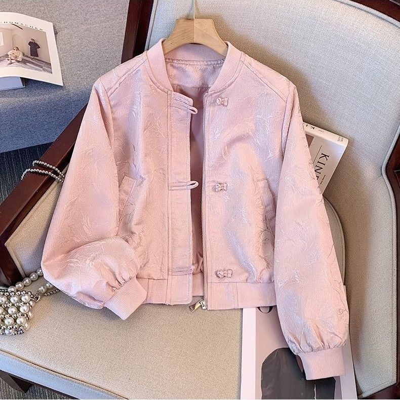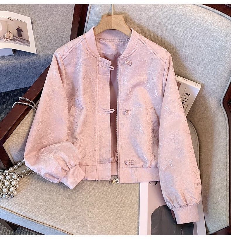 A6C 새로운 중국 스타일 국가 스타일 야구 세트 코트 여자 봄과 가을 2025 새로운 폭발 버튼 자카드 향기로운 스타일
