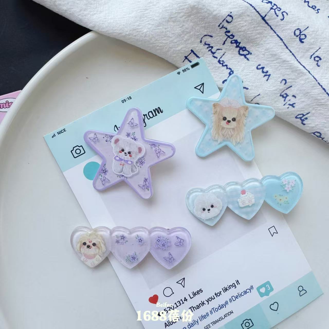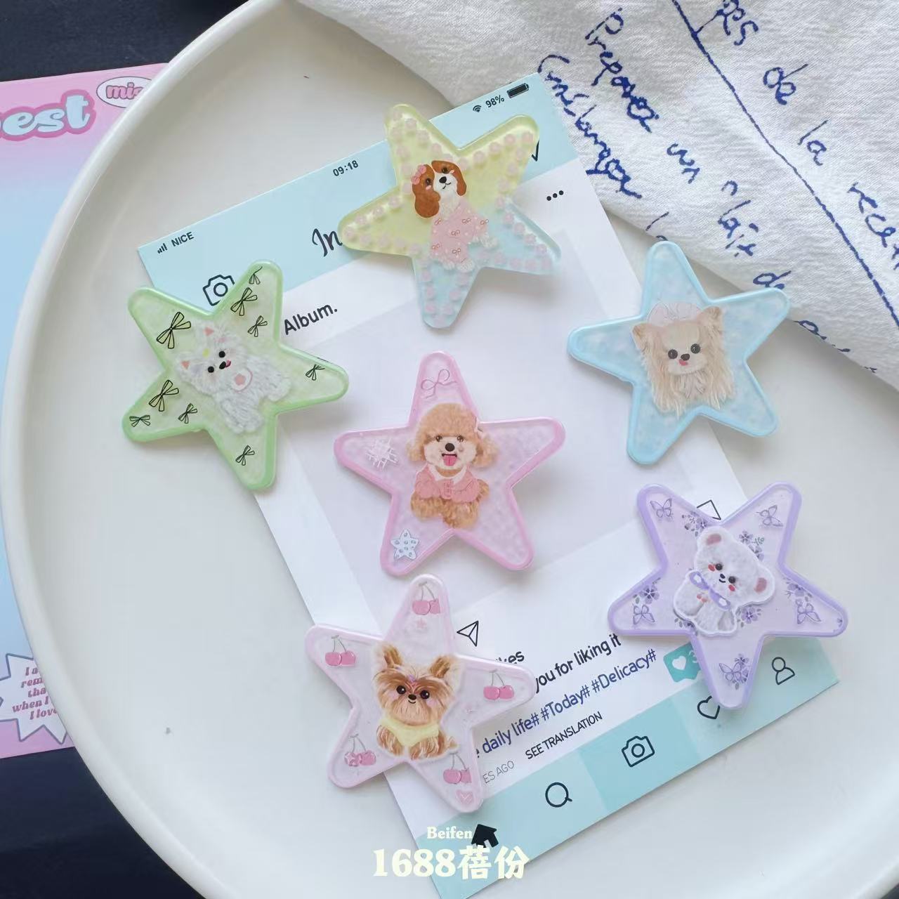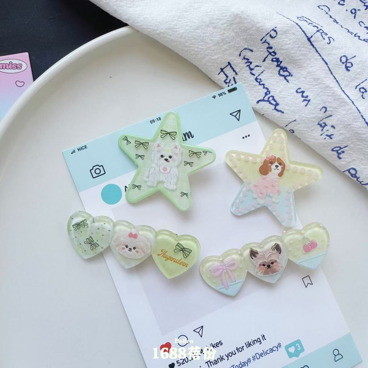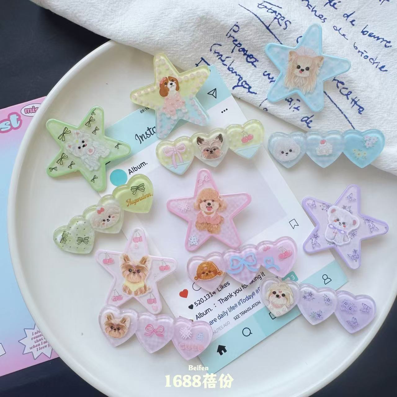 귀여운 만화 귀여운 애완 동물 강아지 사랑 다섯개 별 머리핀 달콤한 소녀 심장 학생 덕빌 클립 머리핀 앞머리 클립스토어 가기