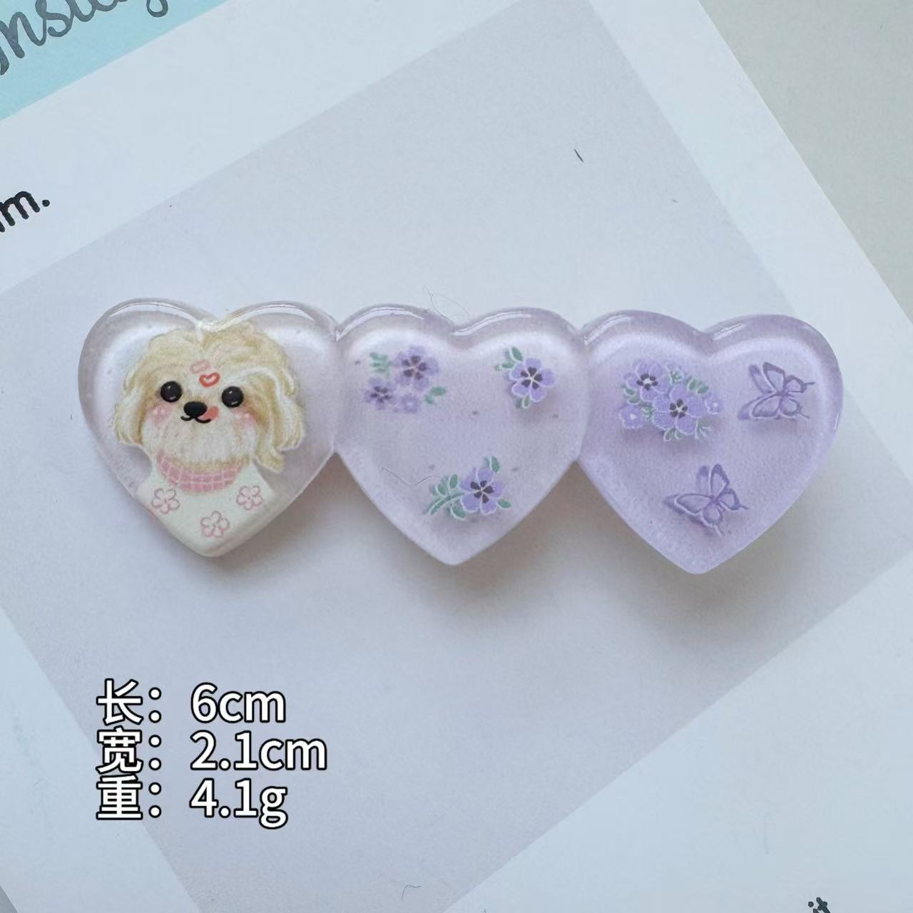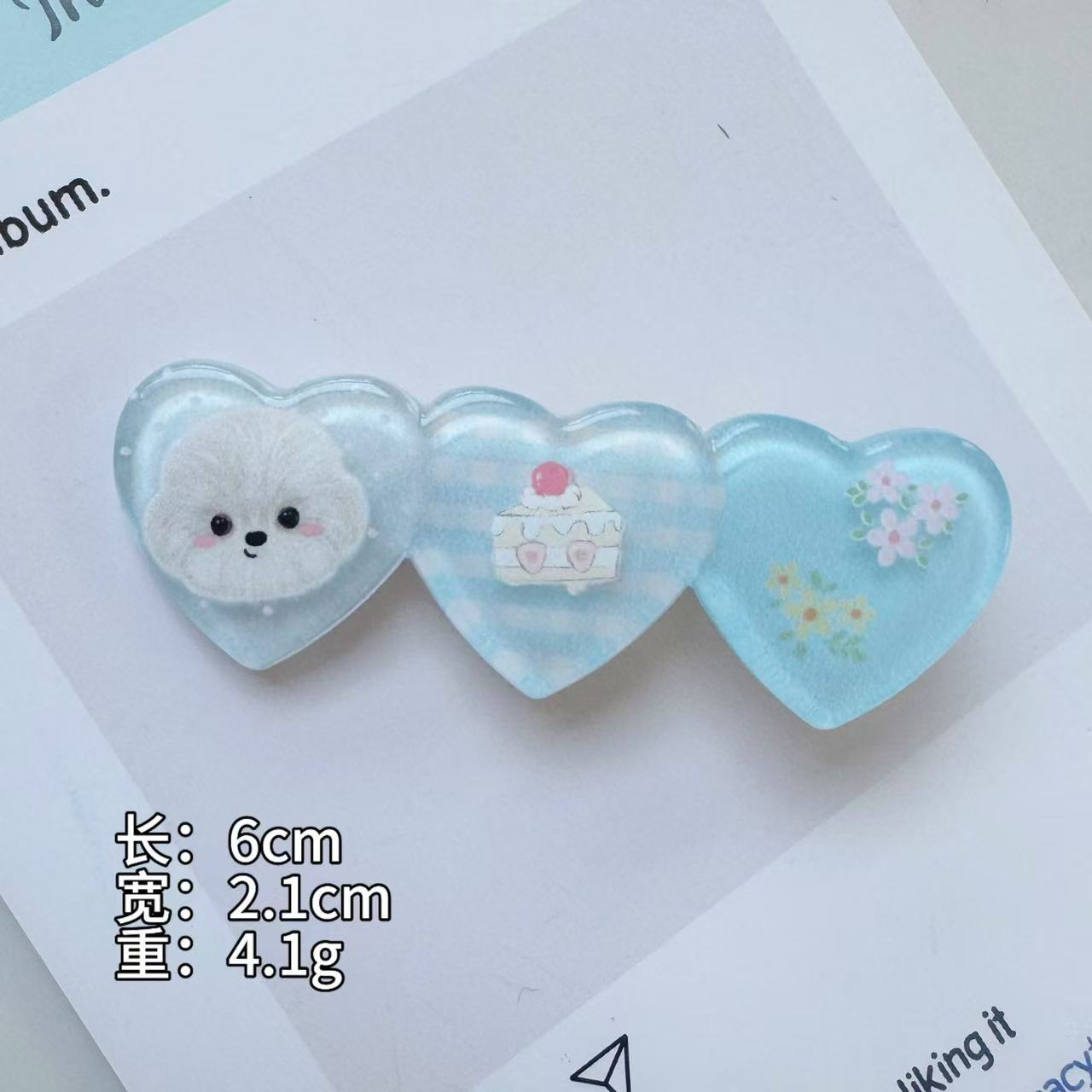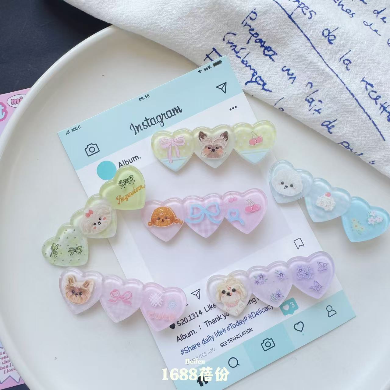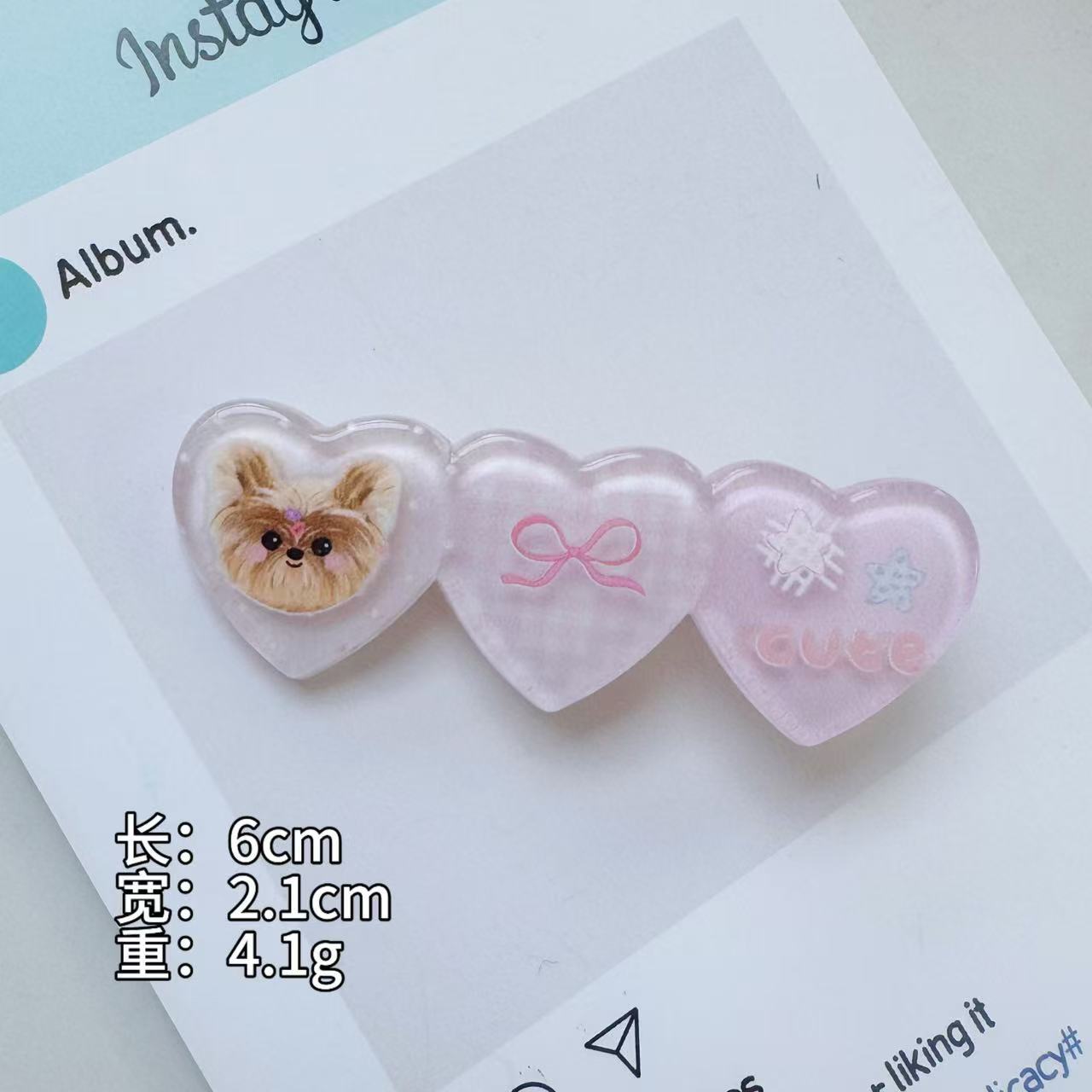 귀여운 만화 귀여운 애완 동물 강아지 사랑 다섯개 별 머리핀 달콤한 소녀 심장 학생 덕빌 클립 머리핀 앞머리 클립스토어 가기