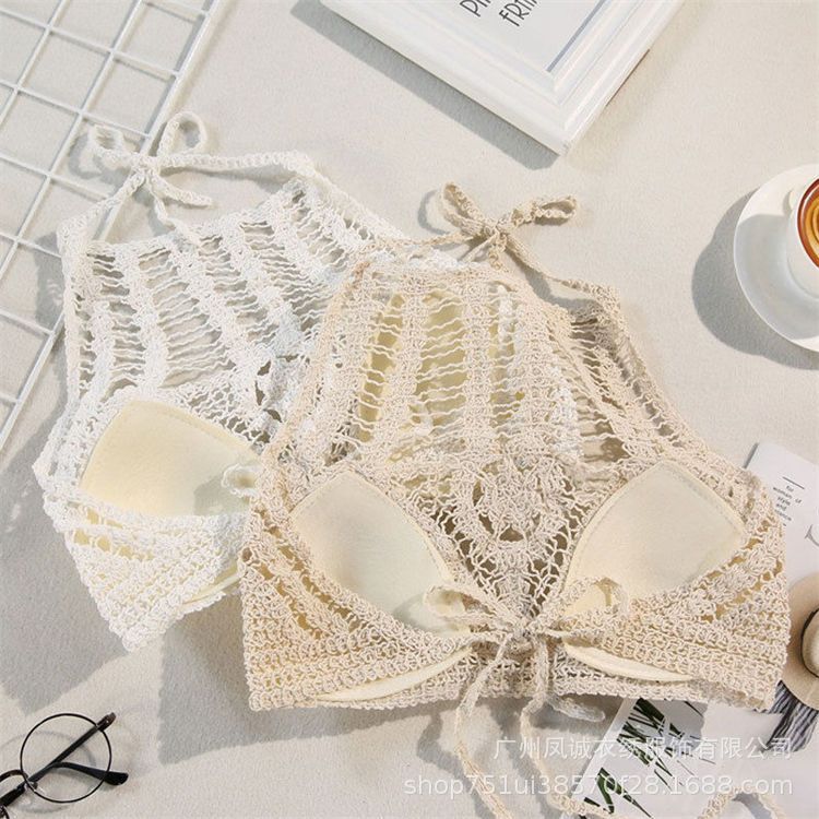 새로운 패션 섹시한 작은 캐미솔 해변 온천 해변 레이스 업 중공 디자인 짧은 탑 여성용 유행