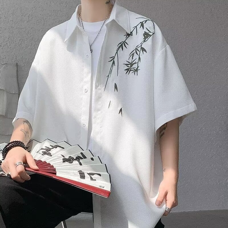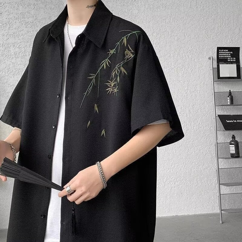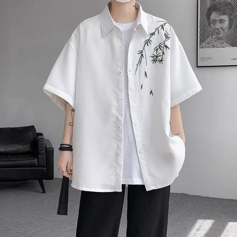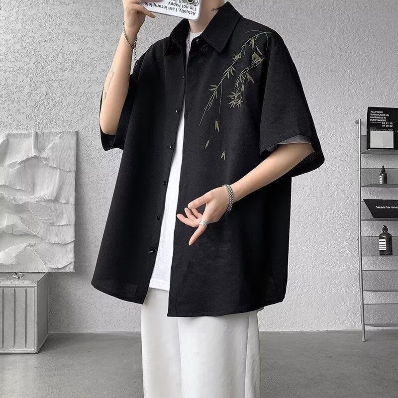 새로운 중국 스타일 반팔 셔츠 남자의 여름 얼음 실크 빠른 건조 7 7 소매 선 스크린 코트 홍콩 스타일 트렌디 한 캐주얼 탑스토어 가기