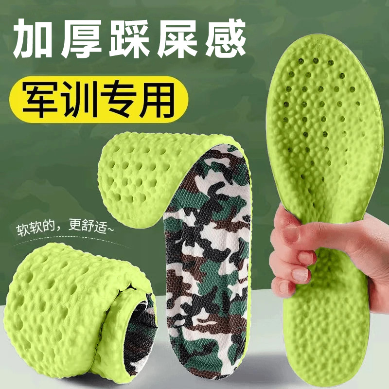 똥 밟는 느낌의 부드러운 밑창의 군사 훈련 깔창, 남성용 여름 스포츠 깔창, 땀 흡수, 탈취 및 통기성, 여성용 두꺼운 고탄성 PU 깔창스토어 가기