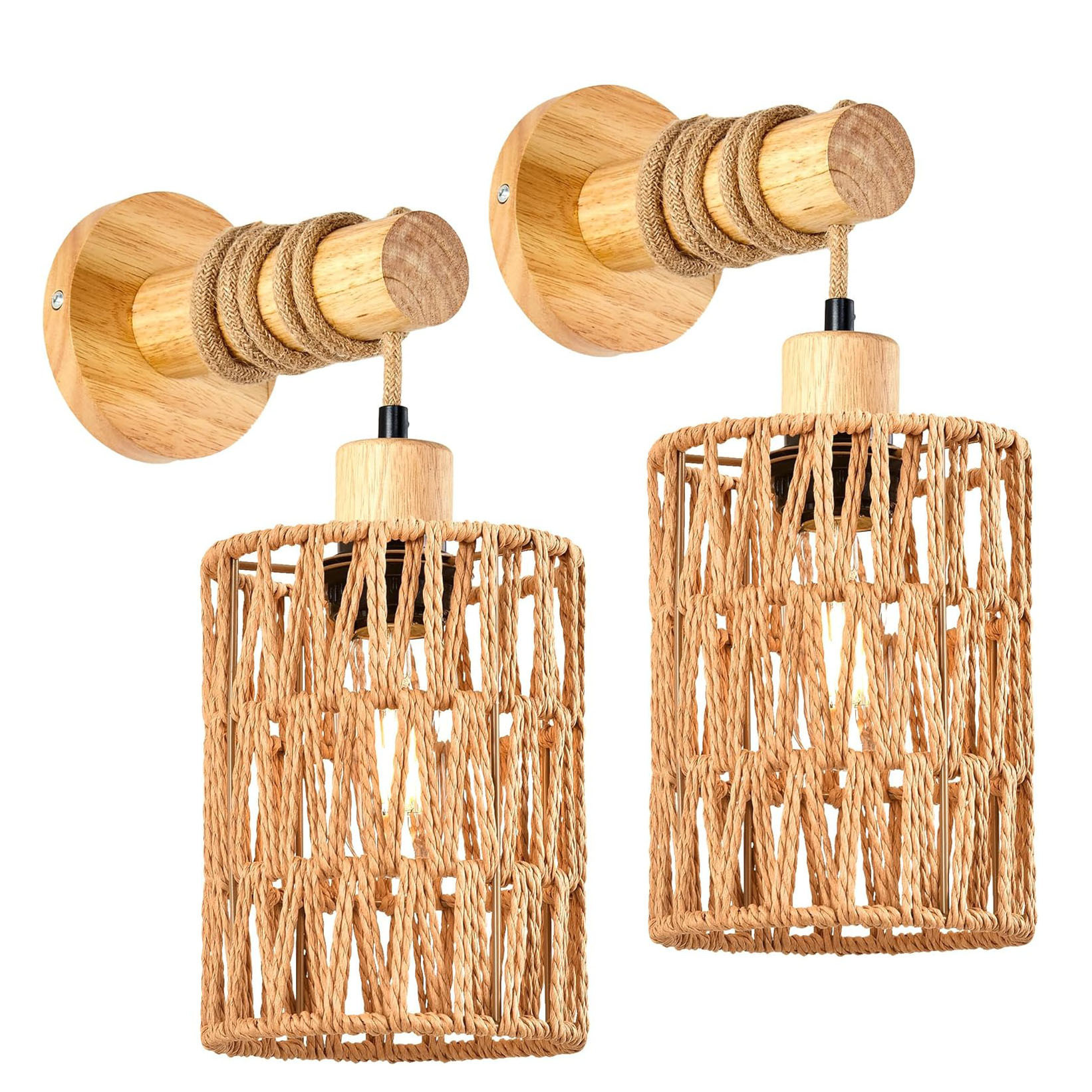 중산 램프 아마존 농가 국가 인테리어 배경 벽 램프 수제 등나무 대마 로프 나무 침실 램프스토어 가기