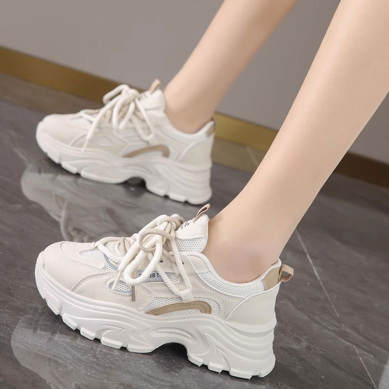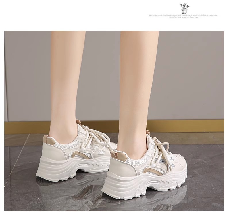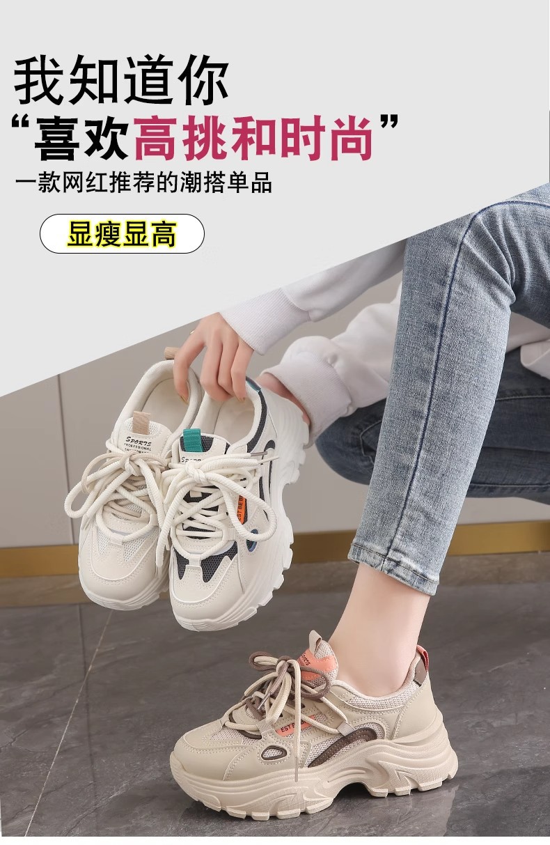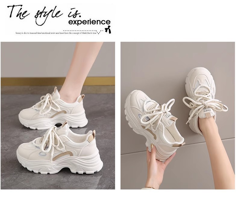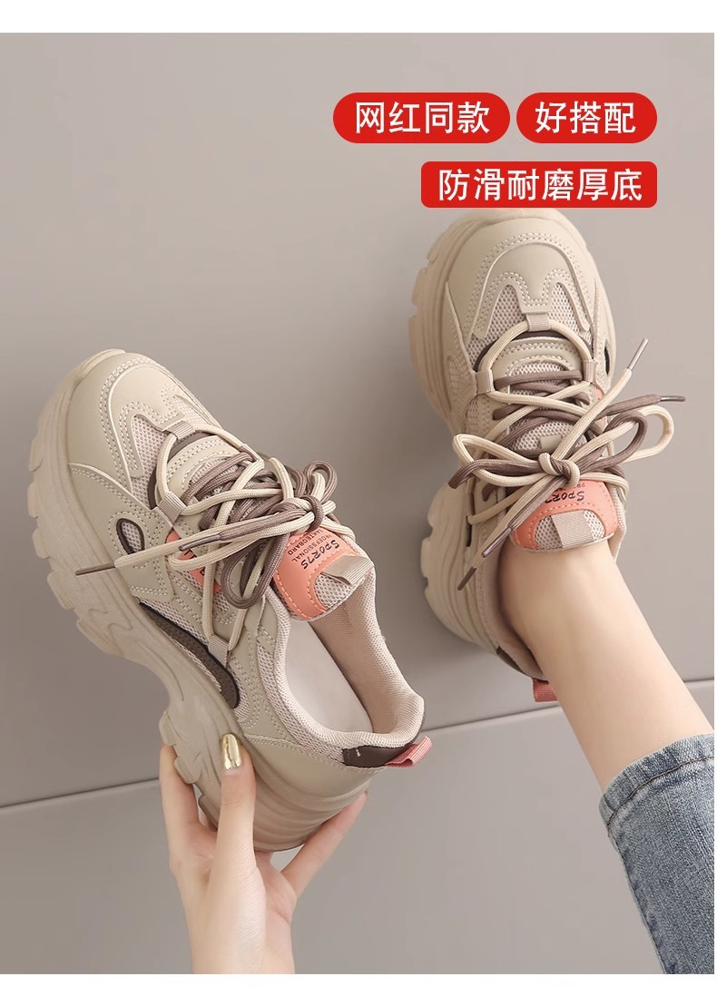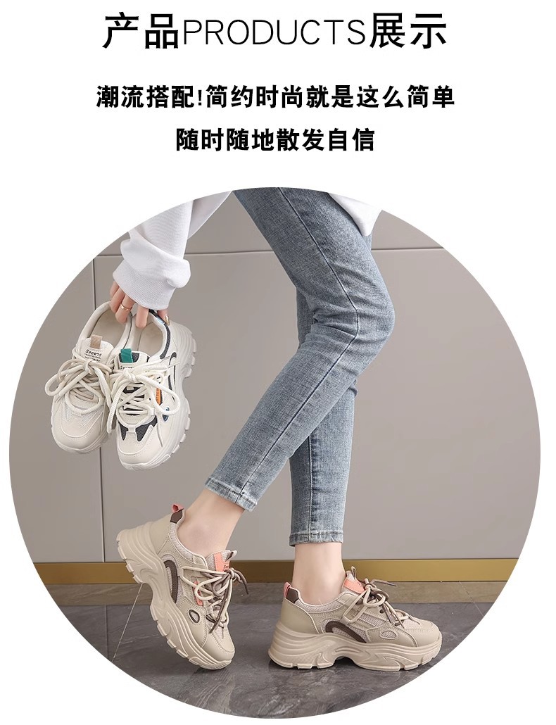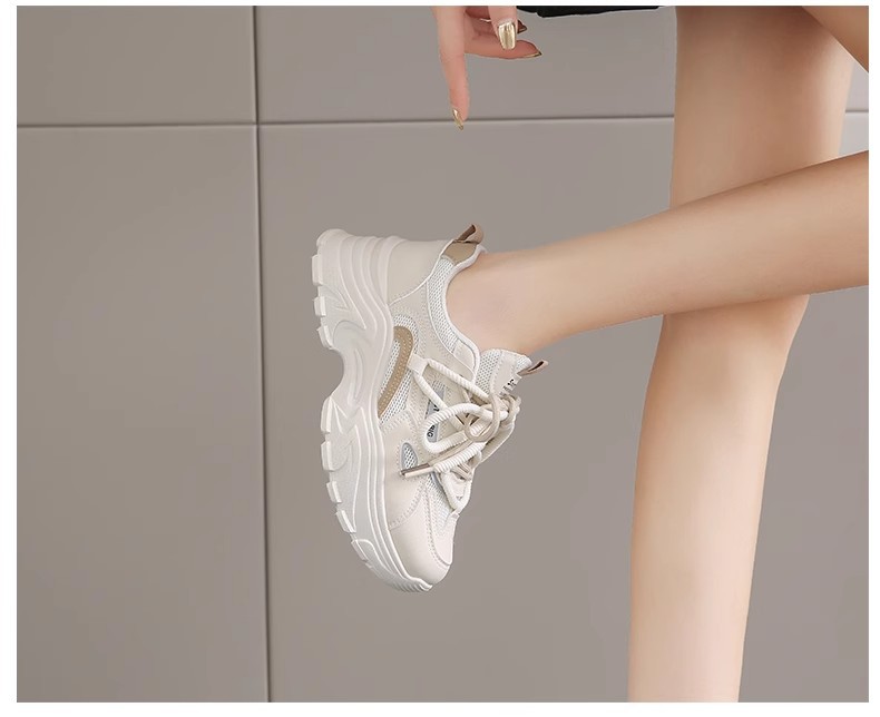 발을 드러내는 두꺼운 밑창의 작은 흰색 신발 여성용 운동화 2025 새로운 봄, 가을 인기 통기성 메쉬 여성용 아빠 신발스토어 가기
