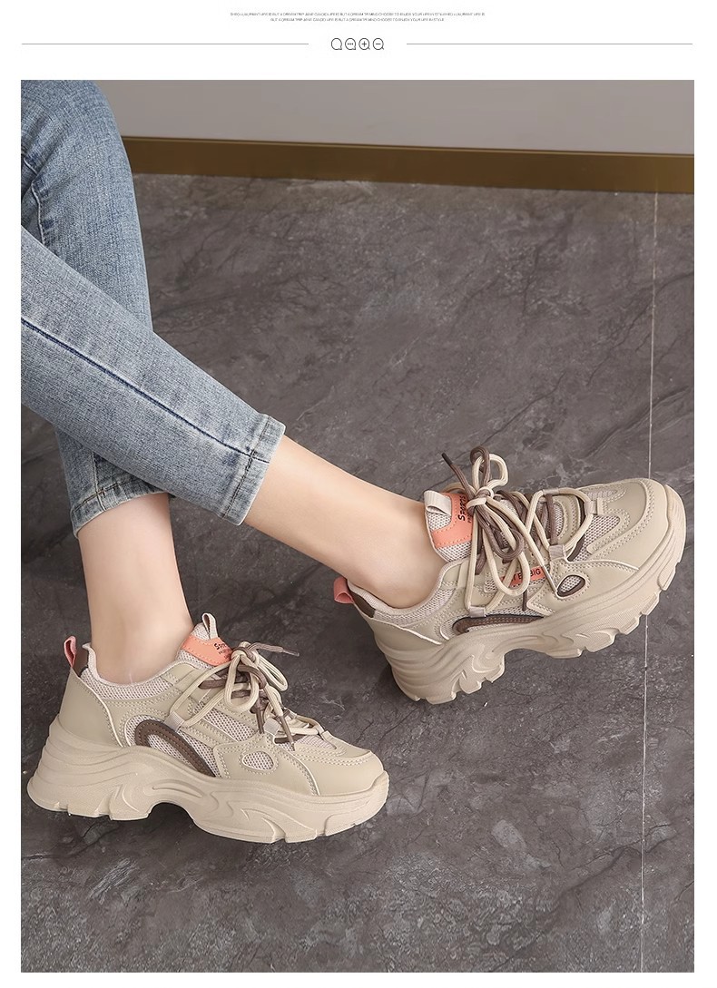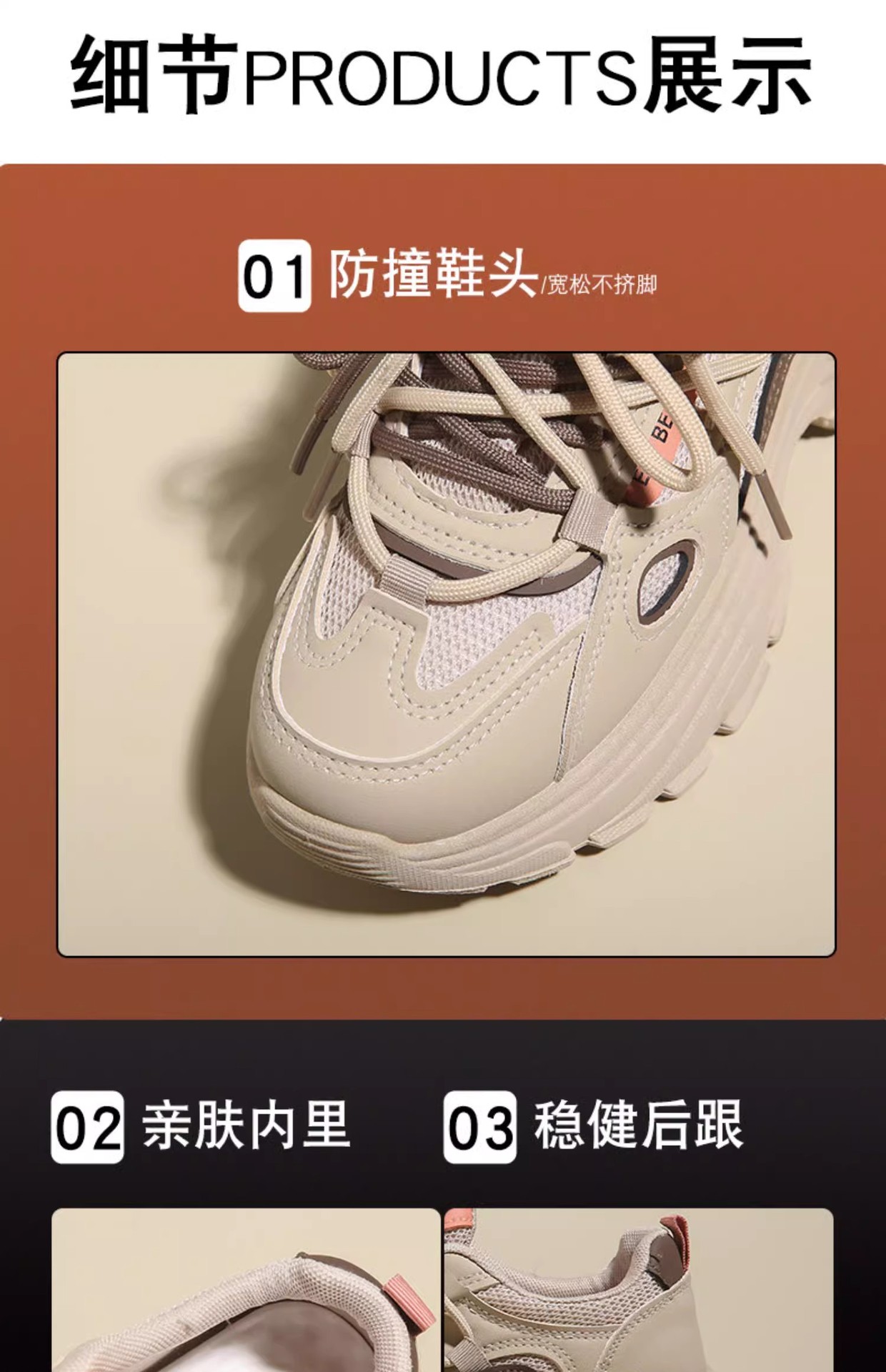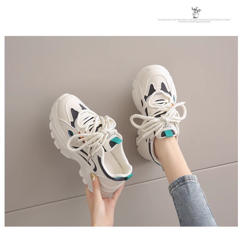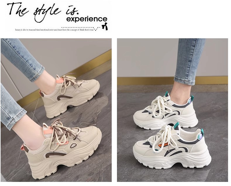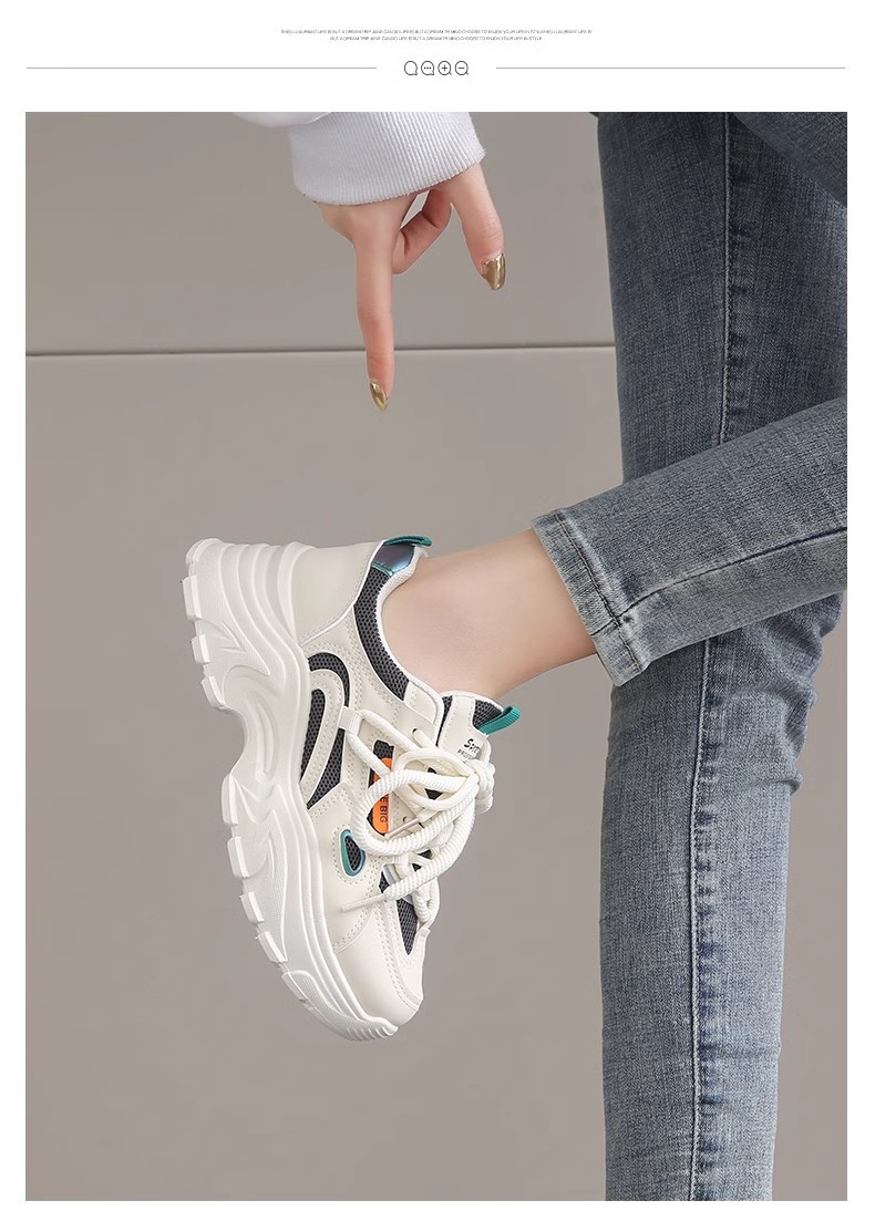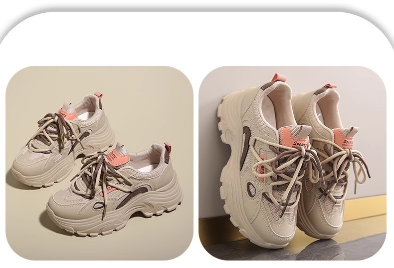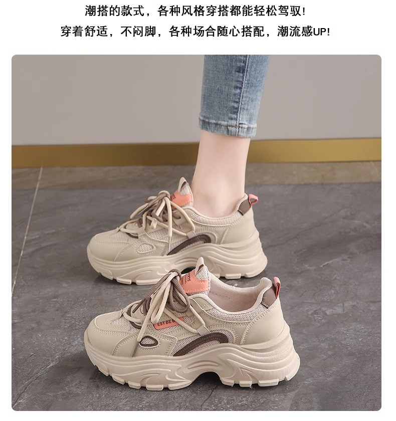 발을 드러내는 두꺼운 밑창의 작은 흰색 신발 여성용 운동화 2025 새로운 봄, 가을 인기 통기성 메쉬 여성용 아빠 신발스토어 가기