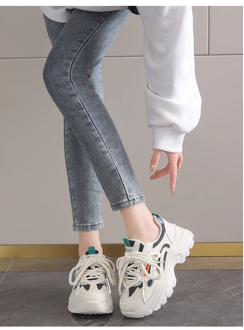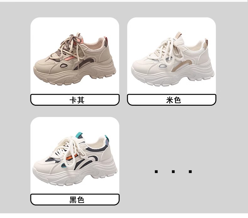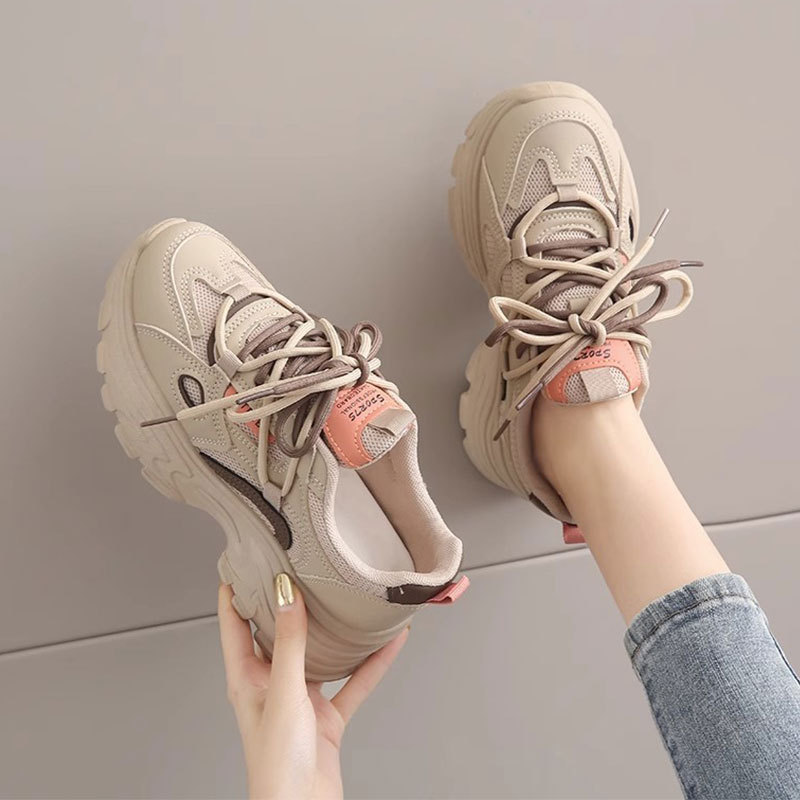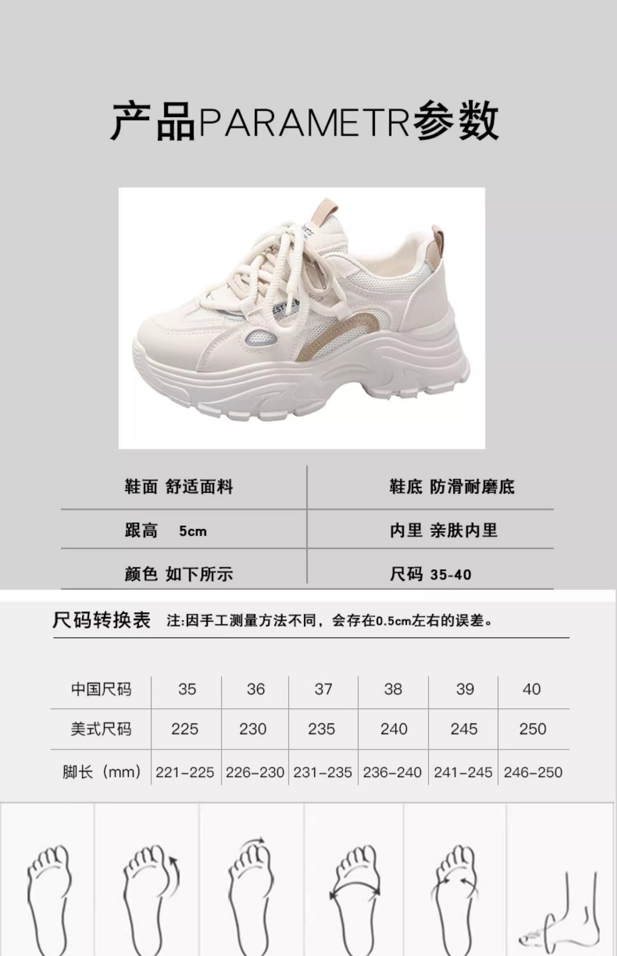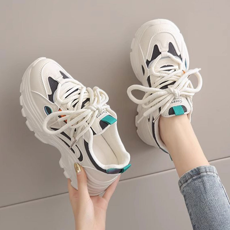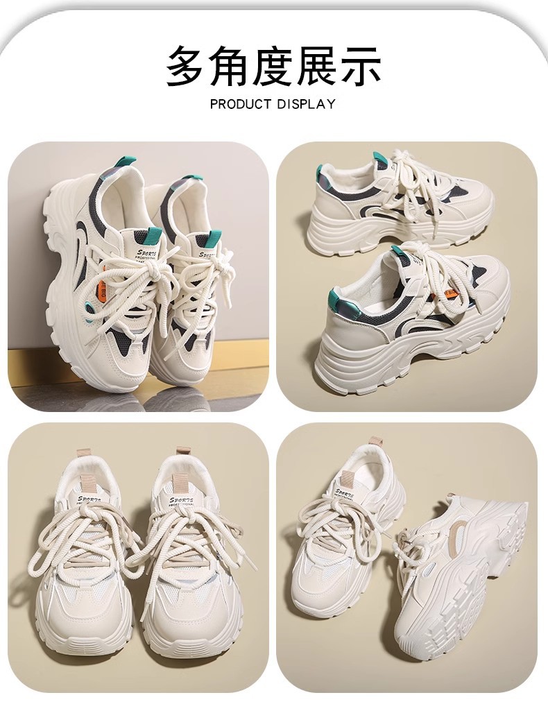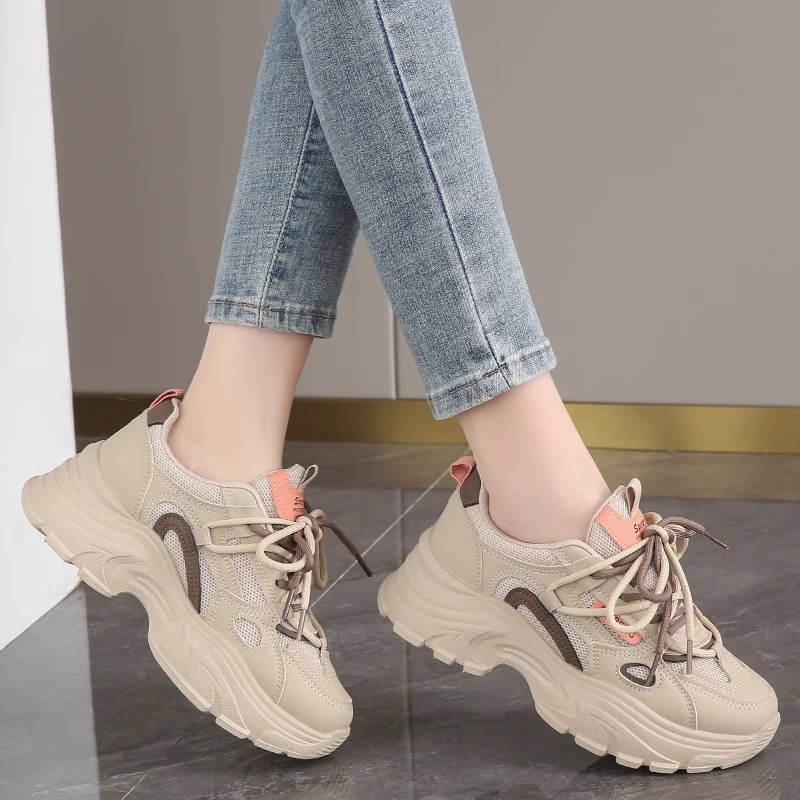 발을 드러내는 두꺼운 밑창의 작은 흰색 신발 여성용 운동화 2025 새로운 봄, 가을 인기 통기성 메쉬 여성용 아빠 신발스토어 가기