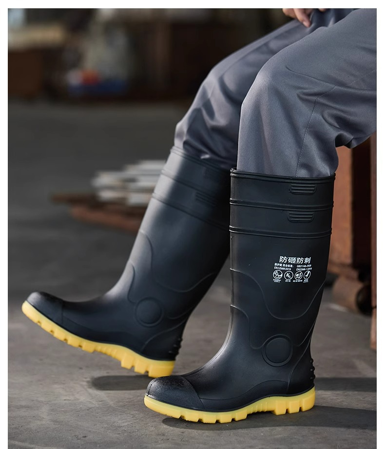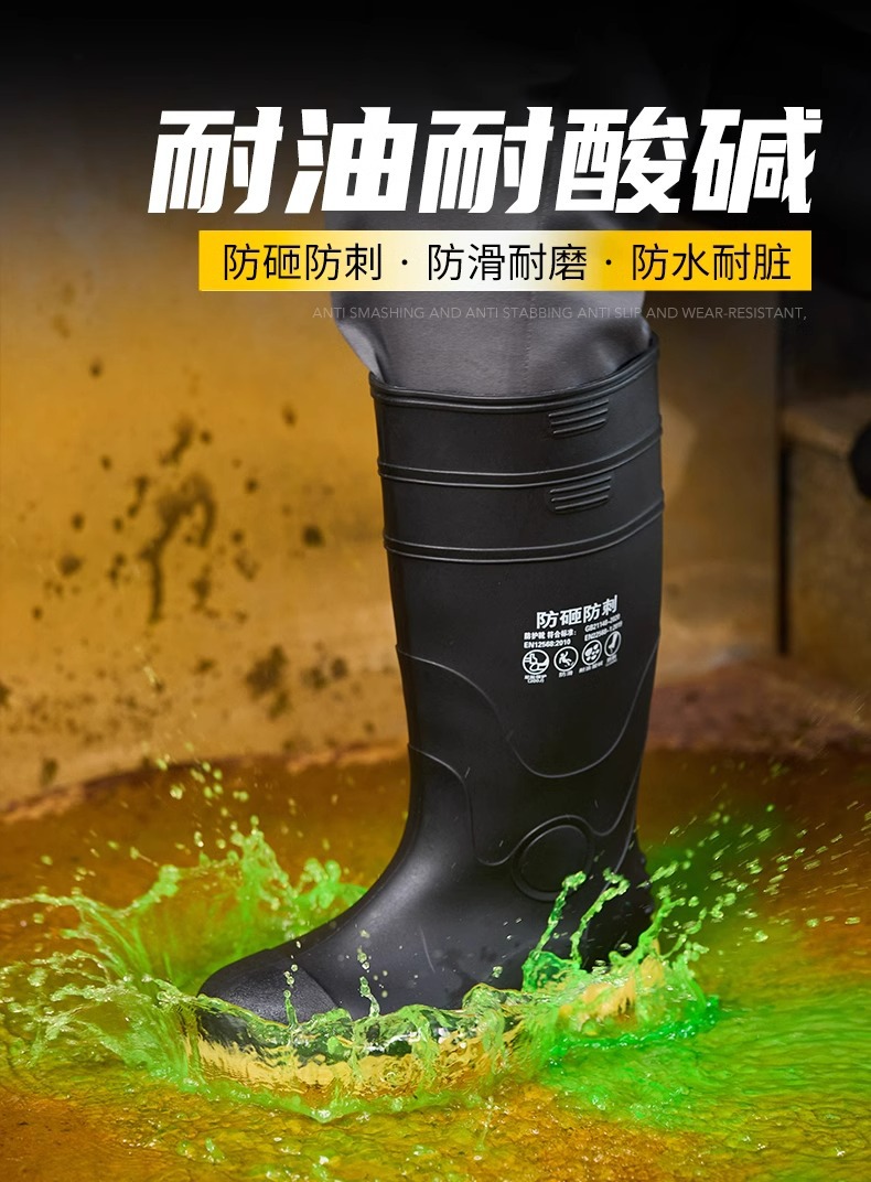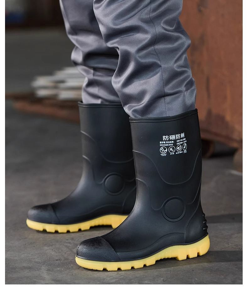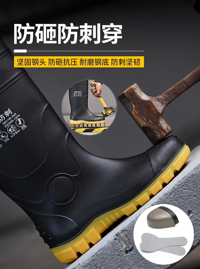 스매싱 방지 및 찌르기 방지 물 신발 내유성 산-알칼리 레인 슈즈 3 대 부식 방지 레인 부츠 안티 화학 부츠 노동 보호 남성용 스틸 헤드 강판