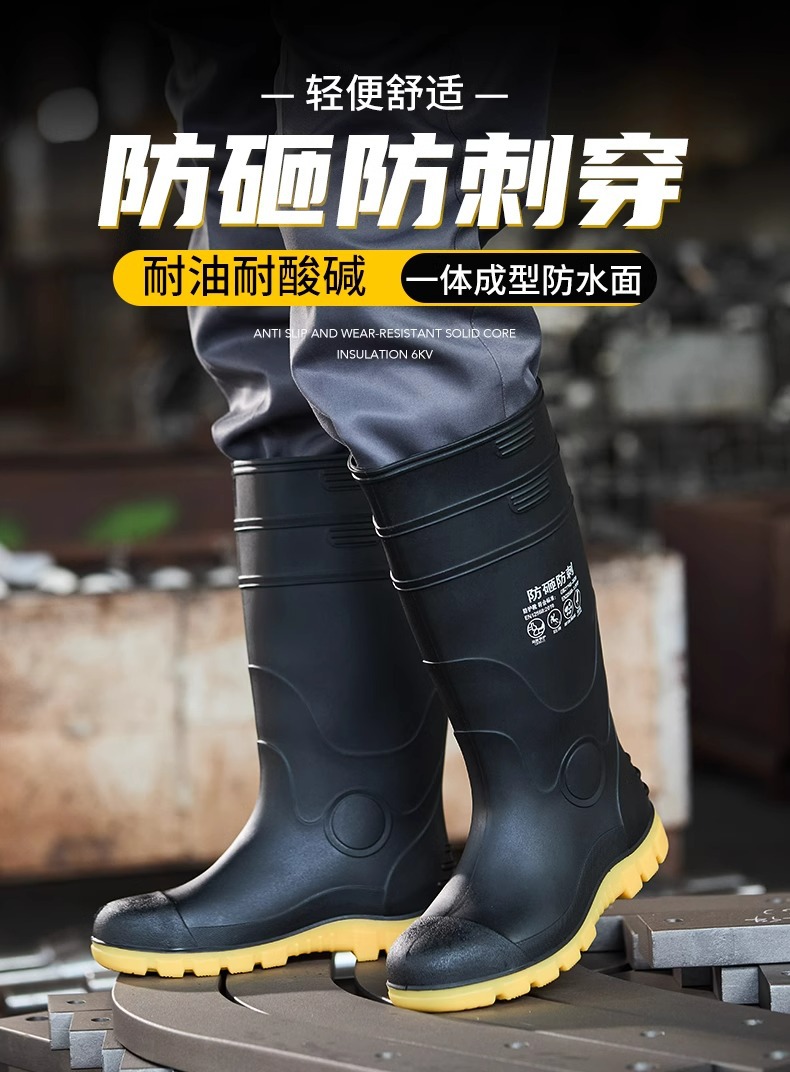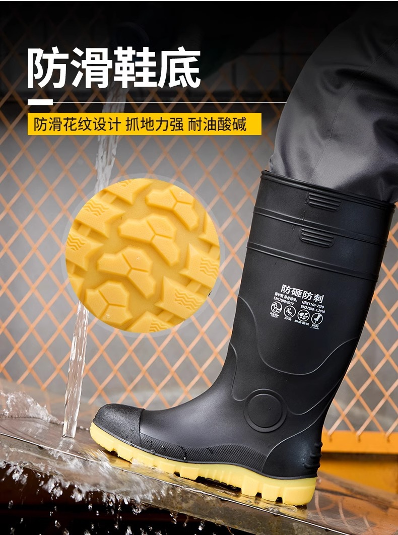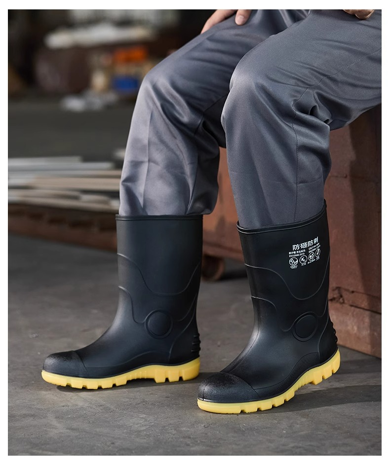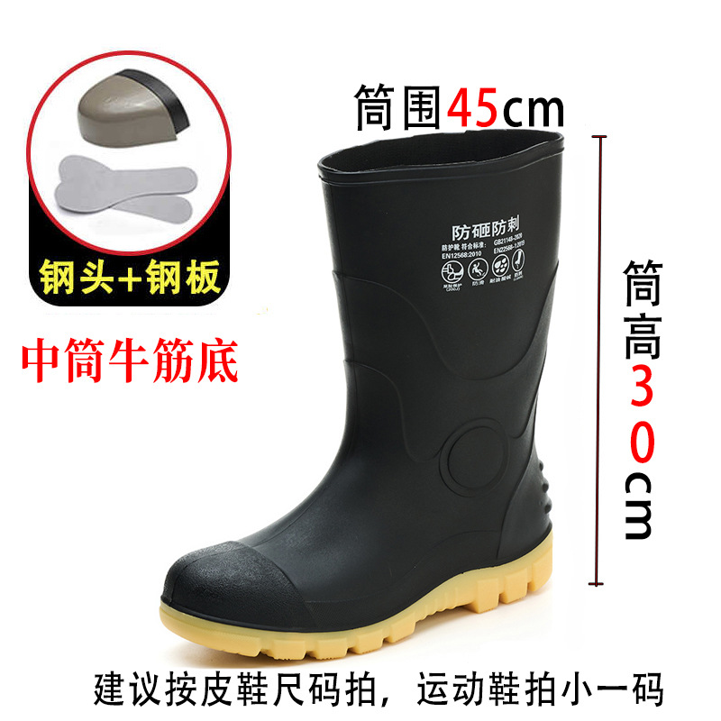 스매싱 방지 및 찌르기 방지 물 신발 내유성 산-알칼리 레인 슈즈 3 대 부식 방지 레인 부츠 안티 화학 부츠 노동 보호 남성용 스틸 헤드 강판