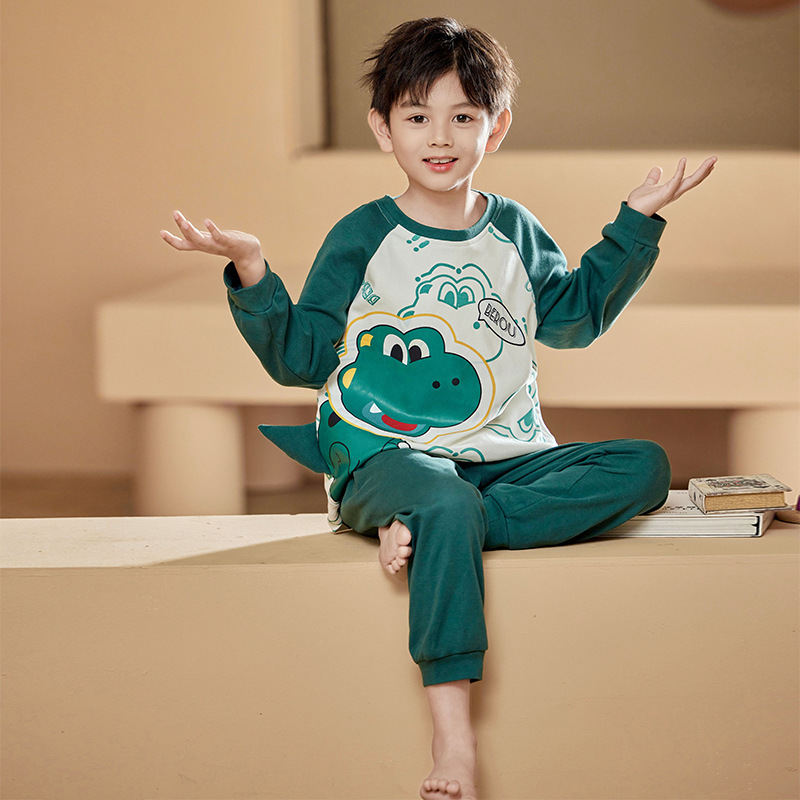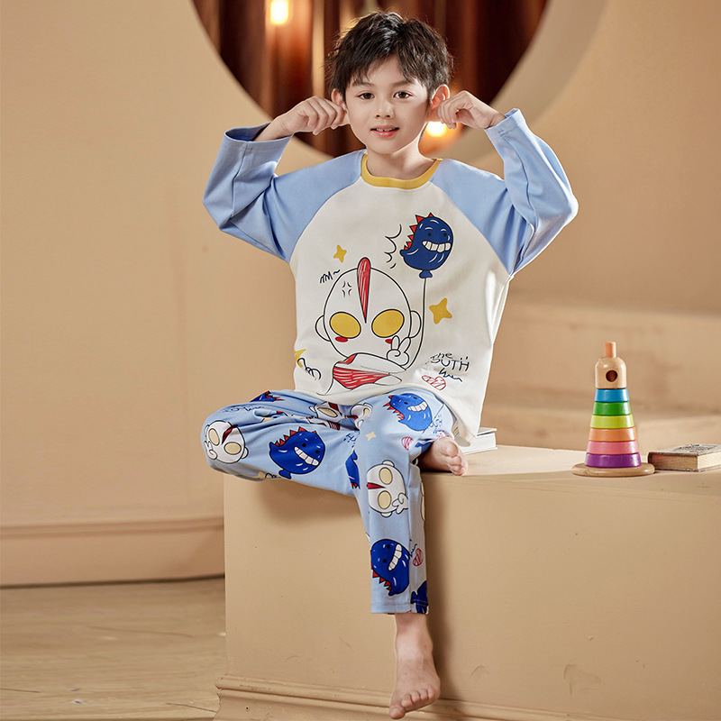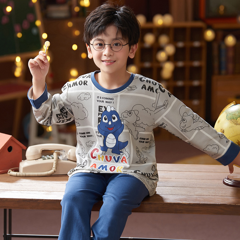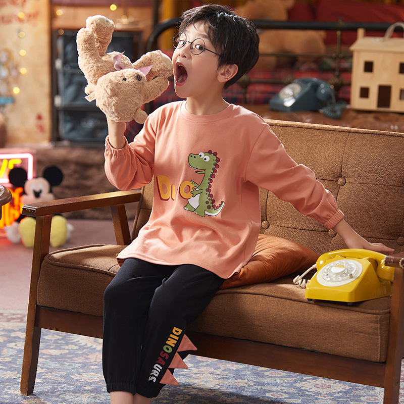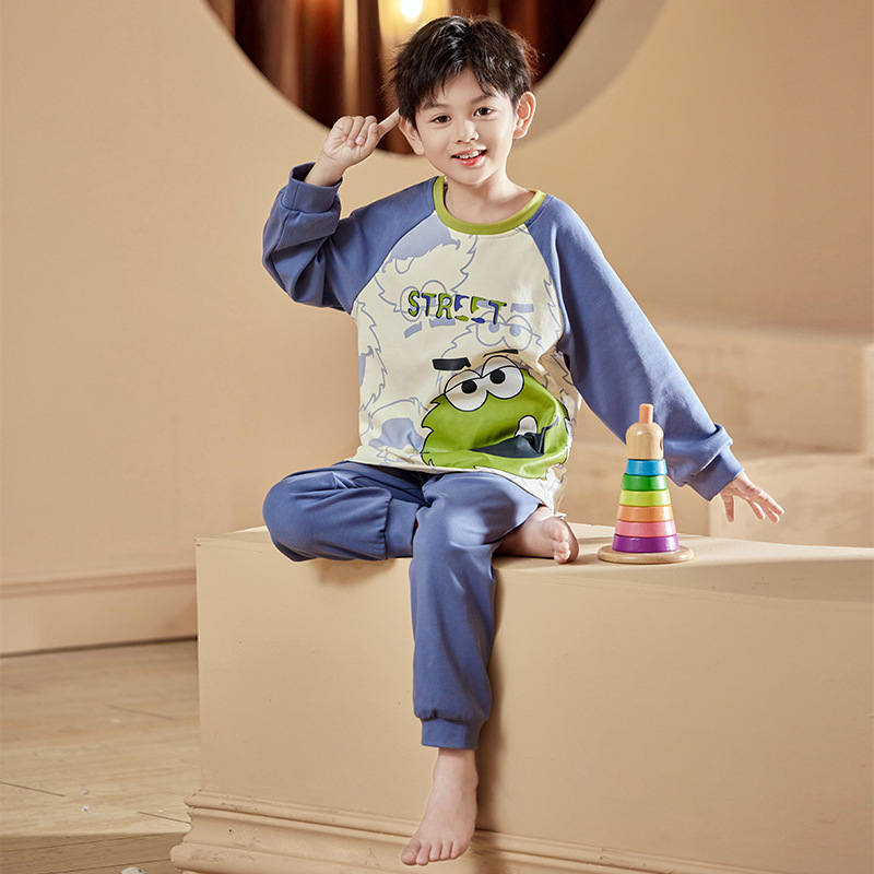2024 봄 신작 어린이 잠옷 봄, 가을 소년, 소녀, 중대형 어린이를위한 얇은 긴팔 가정복 작은 괴물