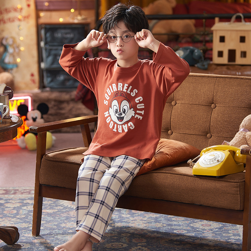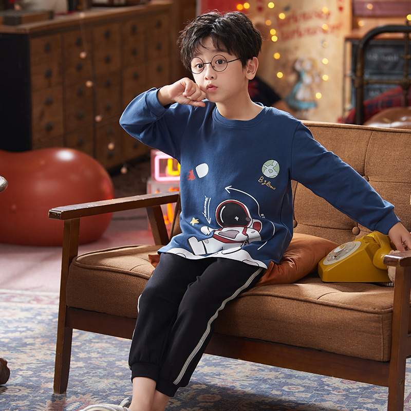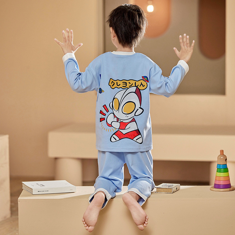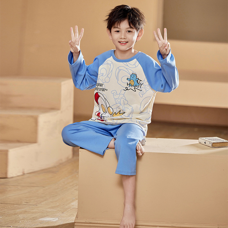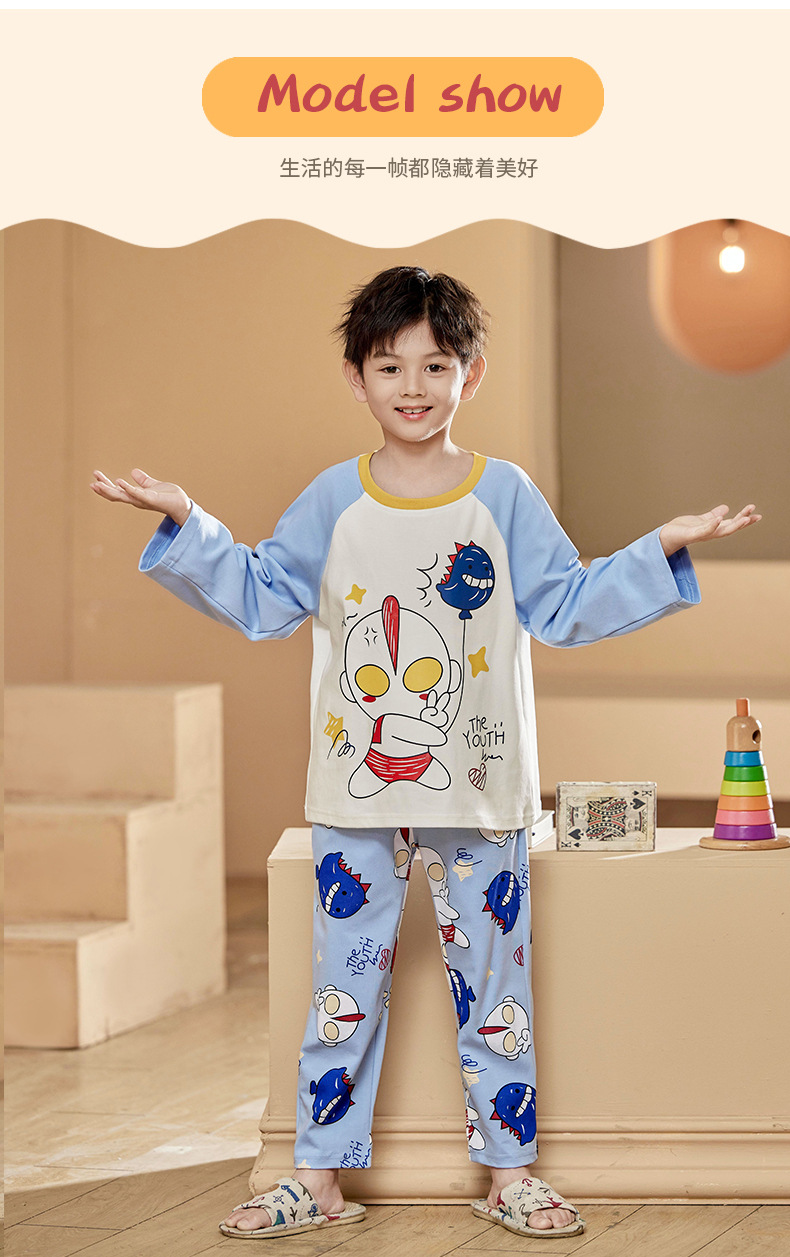 2024 봄 신작 어린이 잠옷 봄, 가을 소년, 소녀, 중대형 어린이를위한 얇은 긴팔 가정복 작은 괴물