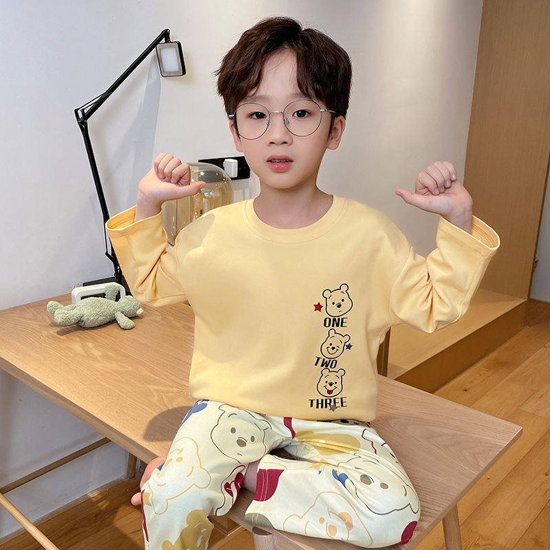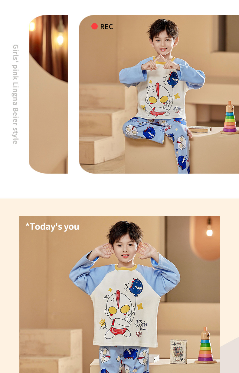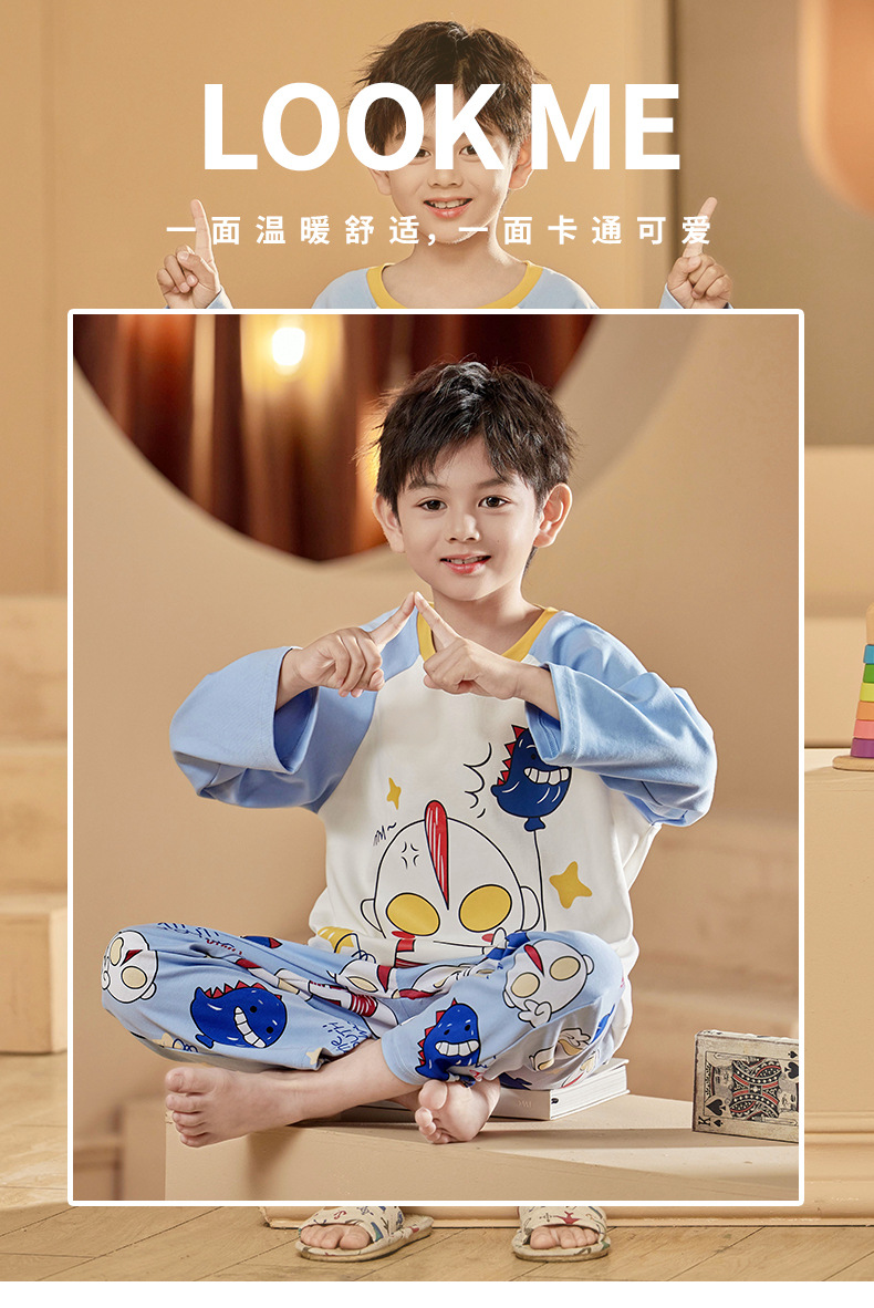 2024 봄 신작 어린이 잠옷 봄, 가을 소년, 소녀, 중대형 어린이를위한 얇은 긴팔 가정복 작은 괴물스토어 가기