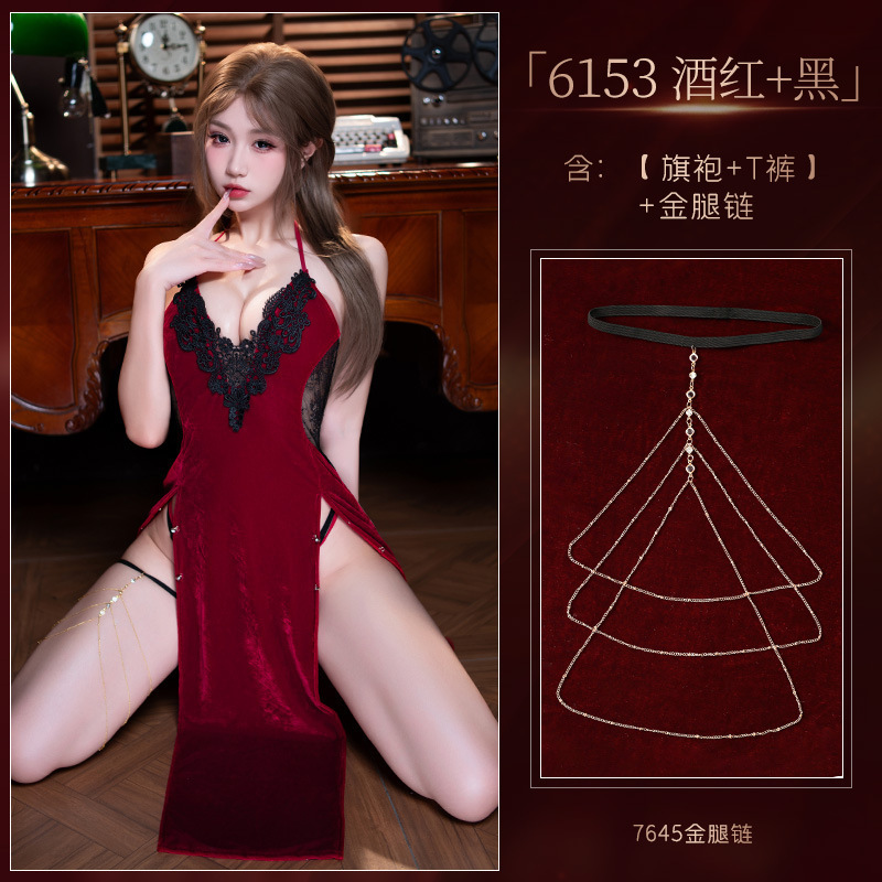 제조업체의 새로운 섹시한 속옷 여성의 섹시한 중화민국 레이스 반 시스루 백리스 치파오 유니폼 유혹 슈트