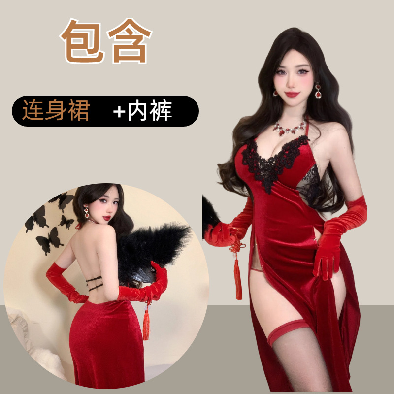 제조업체의 새로운 섹시한 속옷 여성의 섹시한 중화민국 레이스 반 시스루 백리스 치파오 유니폼 유혹 슈트스토어 가기