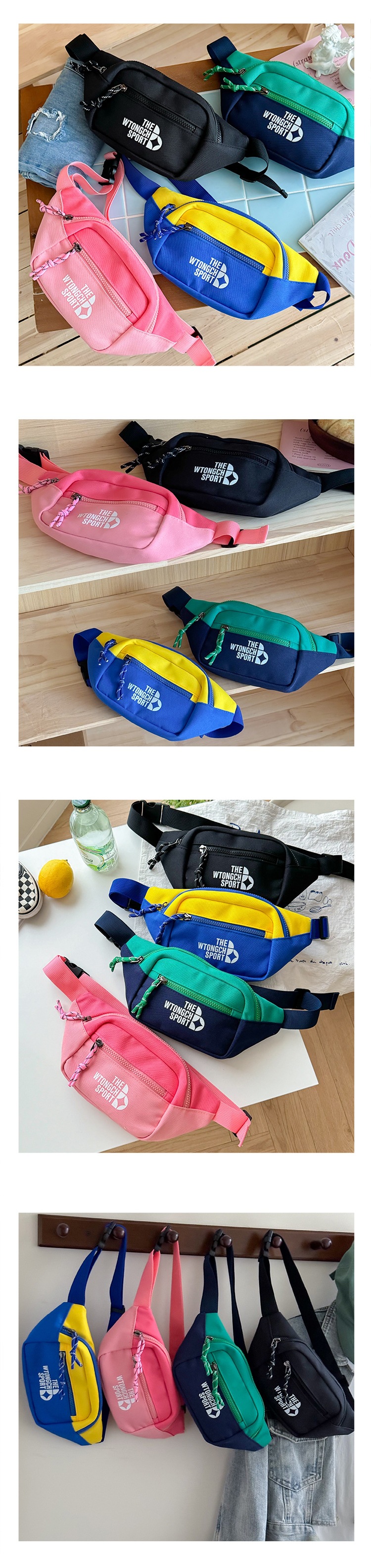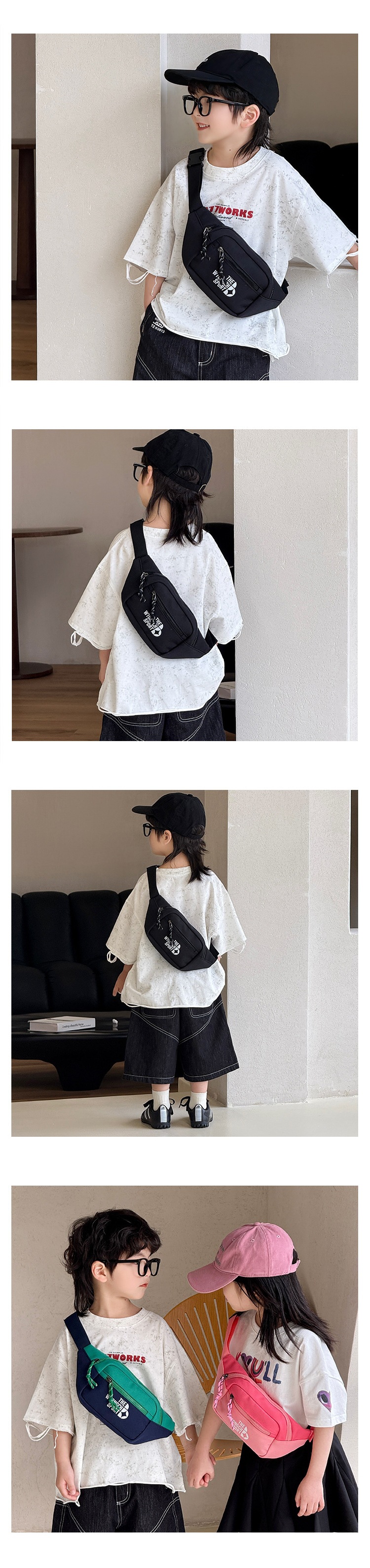 한국 스타일 트렌디 쿨 콘트라스트 컬러 어린이 가슴 가방 간단한 올매치 패셔너블 스포티 한 크로스 바디 백 소년 소녀 핸섬 가방스토어 가기