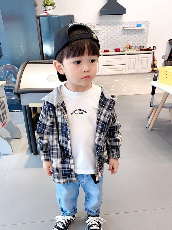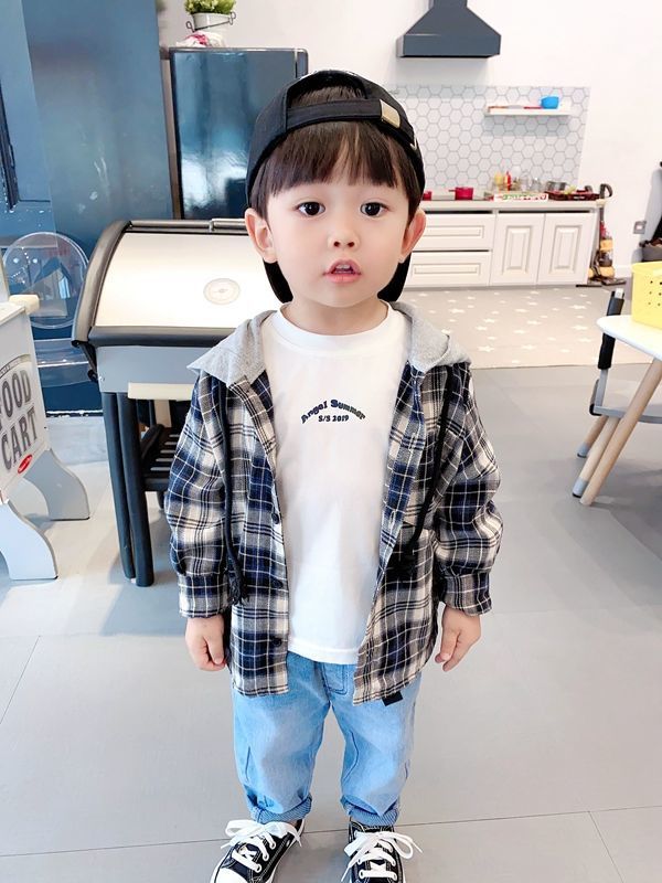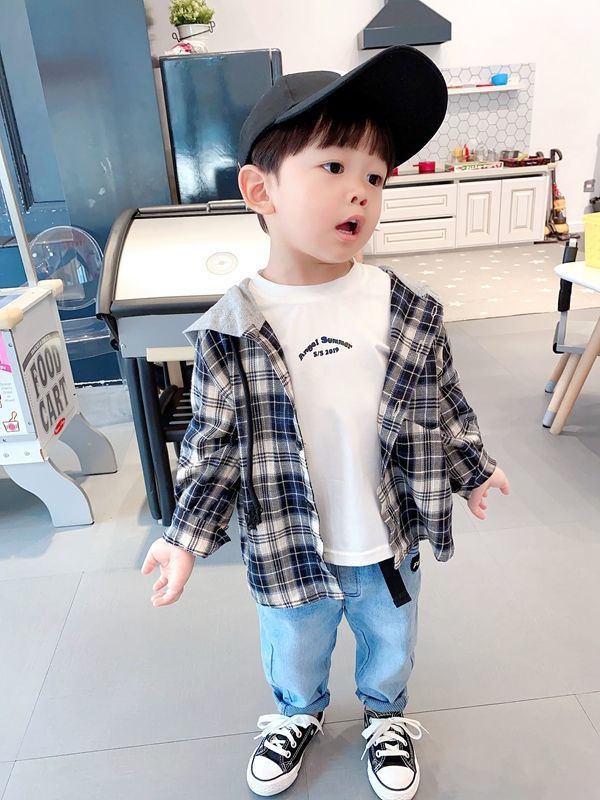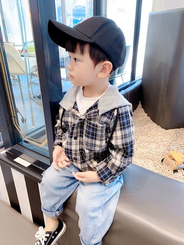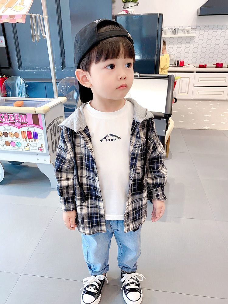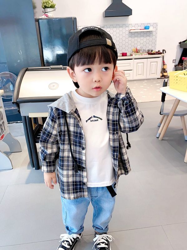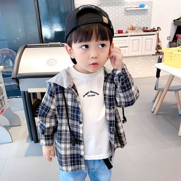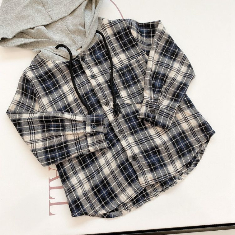 아동용 셔츠 봄과 가을 새로운 스타일의 후드티 중소형 아동용 한국식 격자 무늬 셔츠 소년 스타일 셔츠 소년 자켓