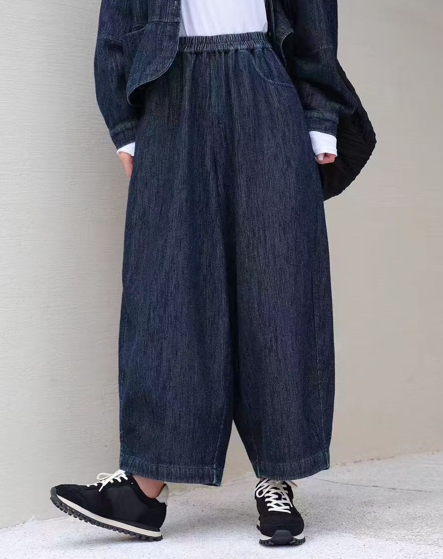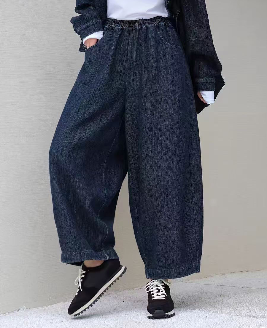 데님 넓은 다리 바지 2025 여름 새로운 간단한 패션 탄성 허리 플러스 사이즈 슬림 바지 어린이 25037스토어 가기