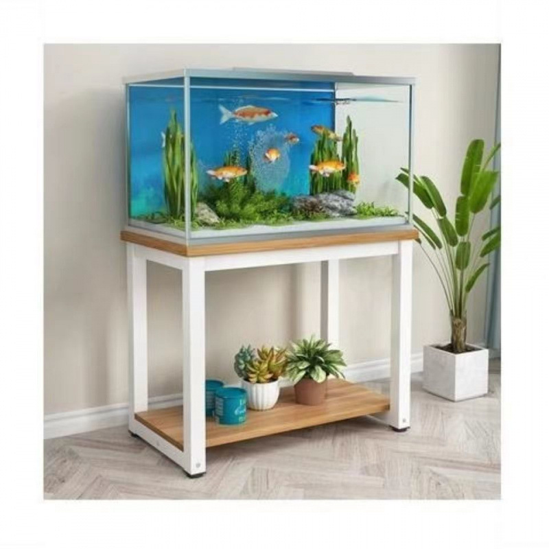 수조 선반 더블 레이어 강철 나무 바닥 캐비닛 거실 금속 바닥 랙 철 바닥 스탠딩 스토리지 랙 수조 테이블 내하중 베이스