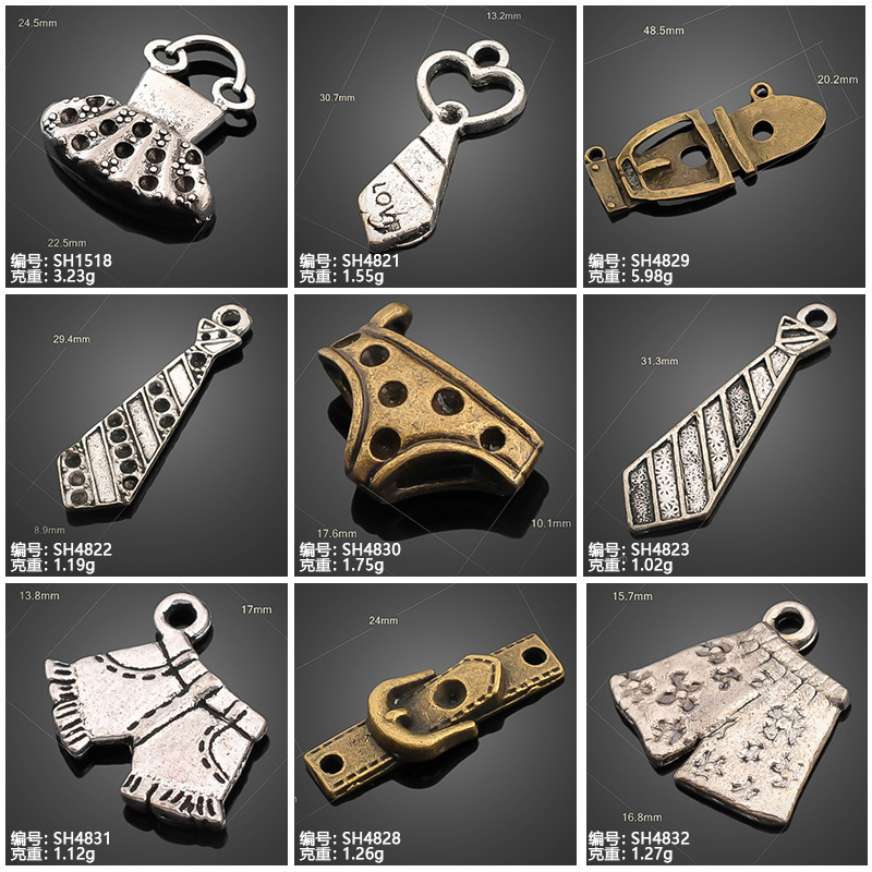의류 시리즈 펜던트 모자 반바지 스커트 수영복 스포츠 유니폼 티셔츠 아연 합금 쥬얼리 액세서리 작은 펜던트