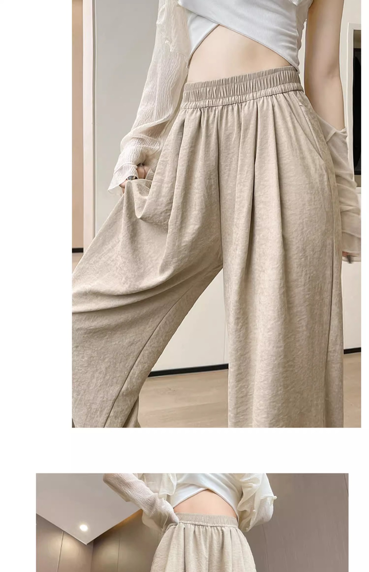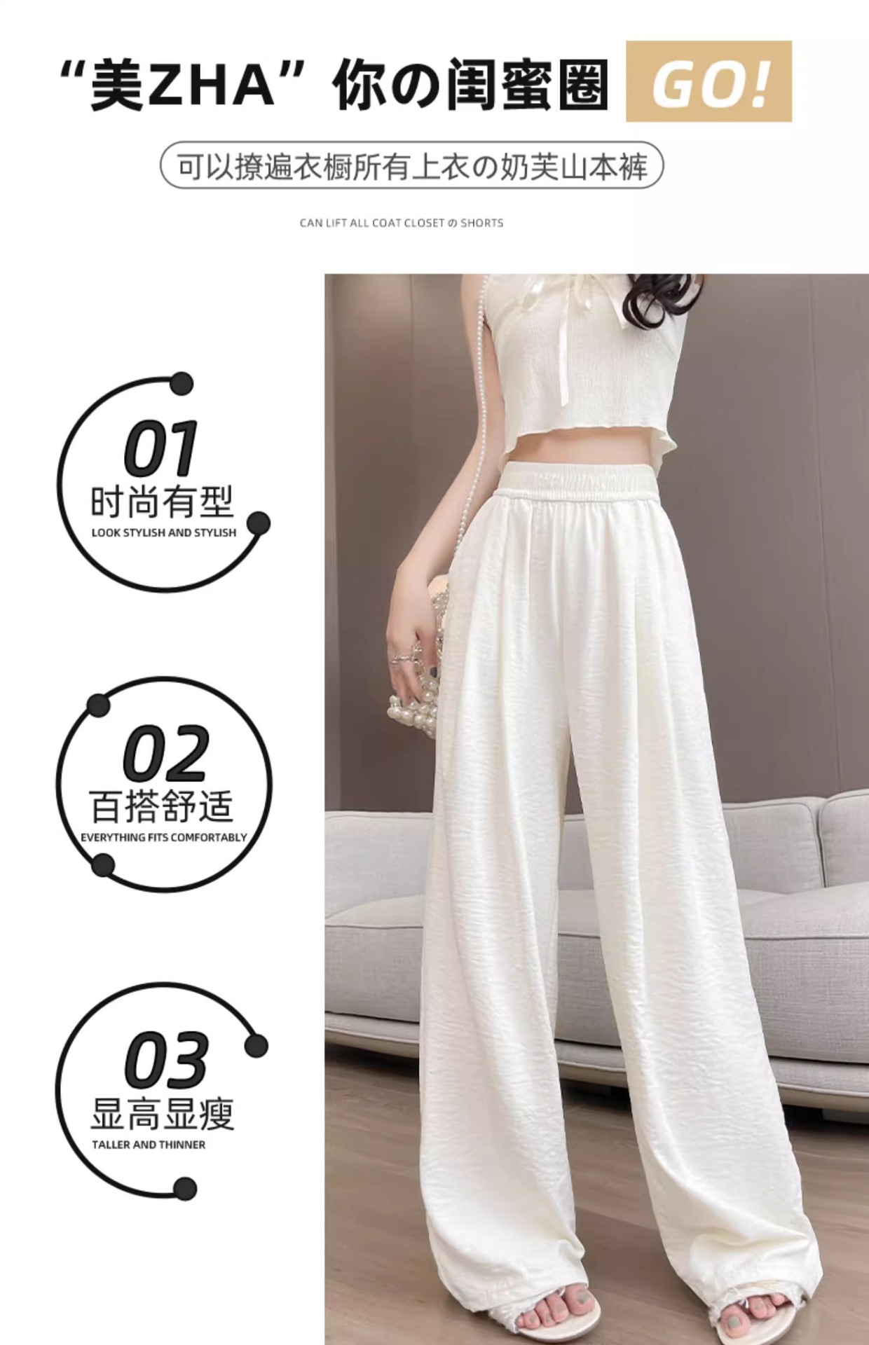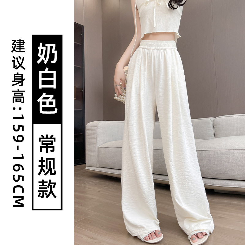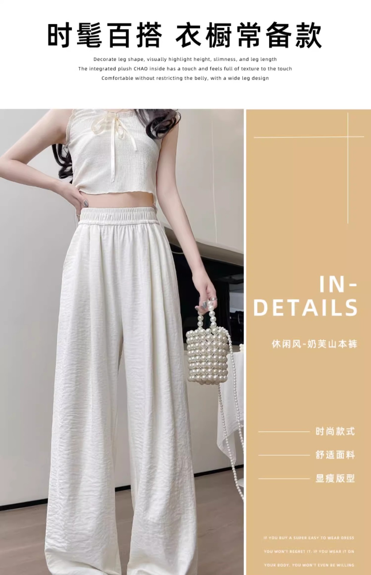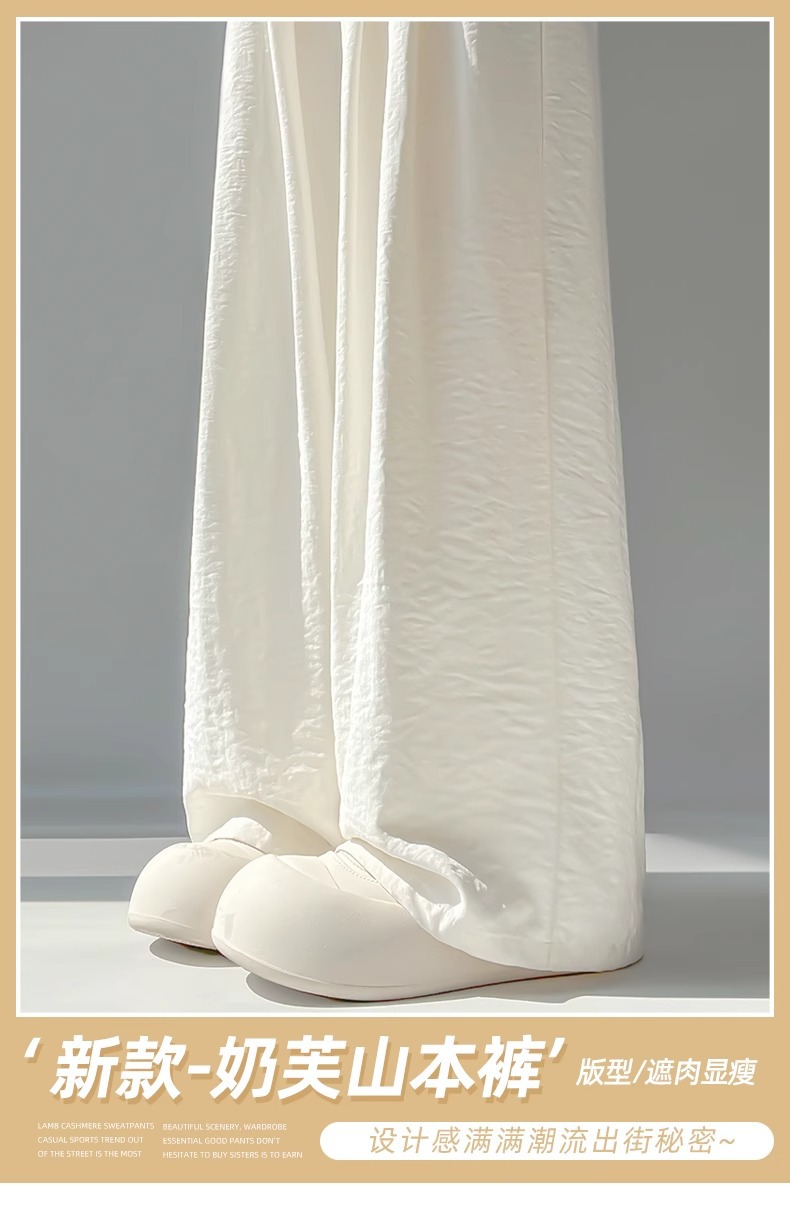 화이트 밀크 푸 야마모토 바지 여성의 봄과 여름 2025 새로운 높은 허리 좁은 버전 작은 슬랙 아이스 실크 바지