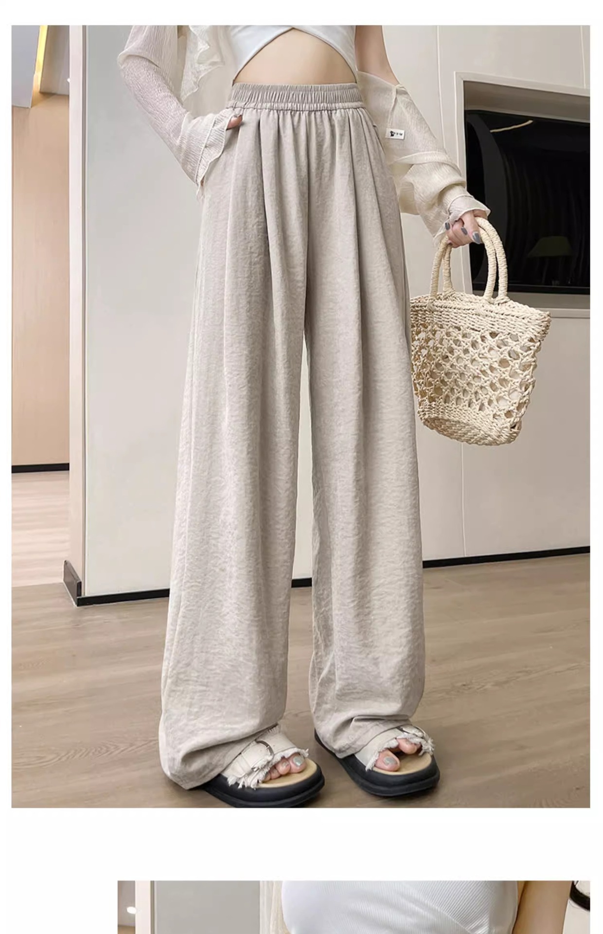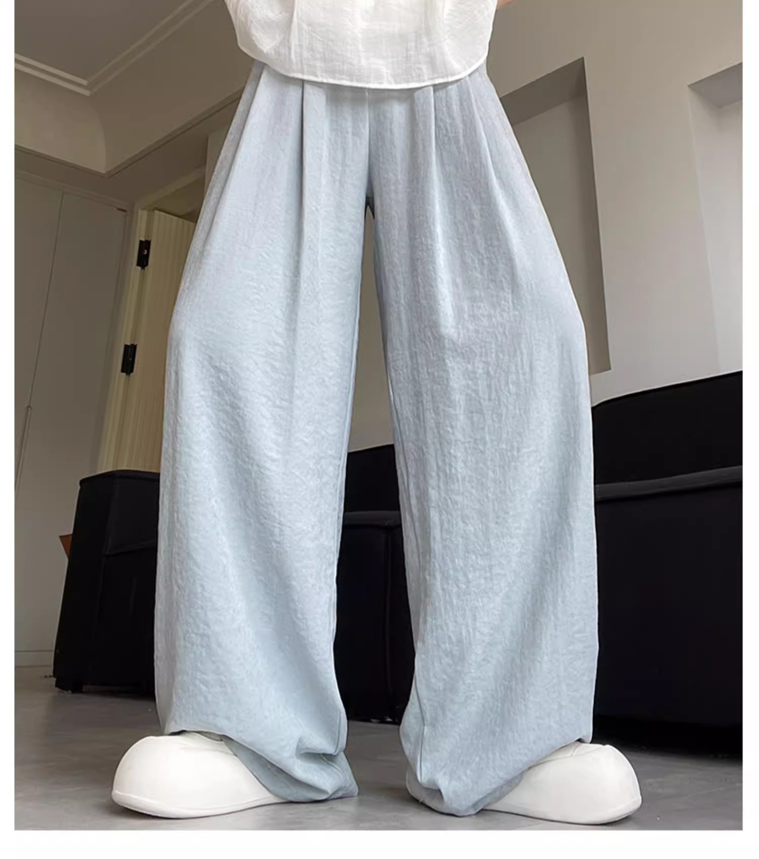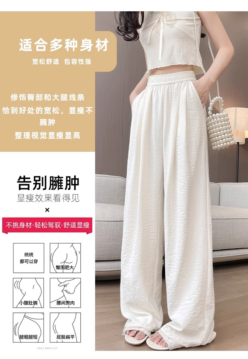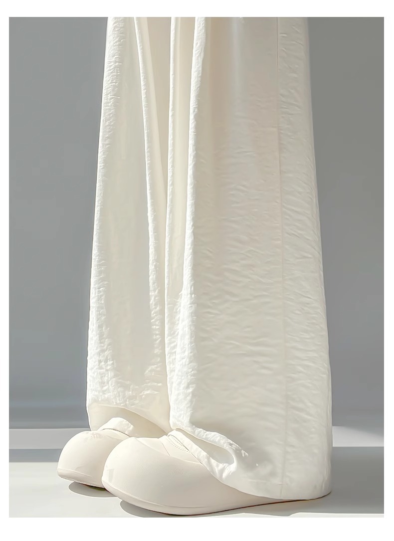 화이트 밀크 푸 야마모토 바지 여성의 봄과 여름 2025 새로운 높은 허리 좁은 버전 작은 슬랙 아이스 실크 바지