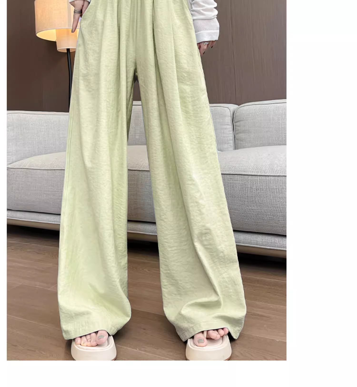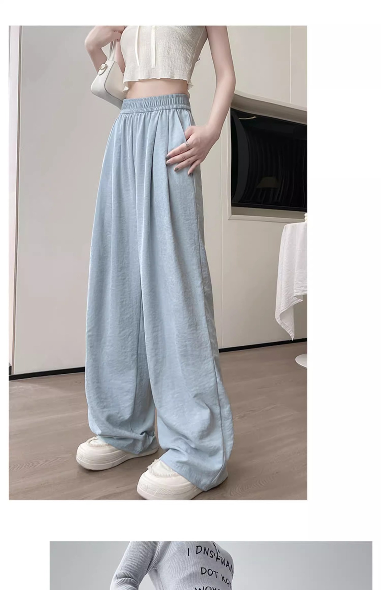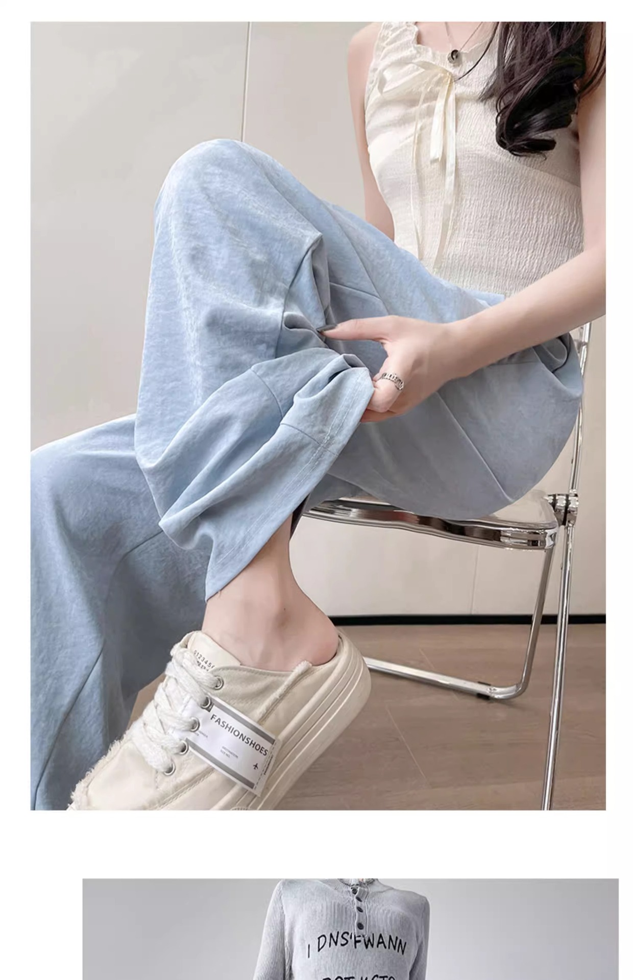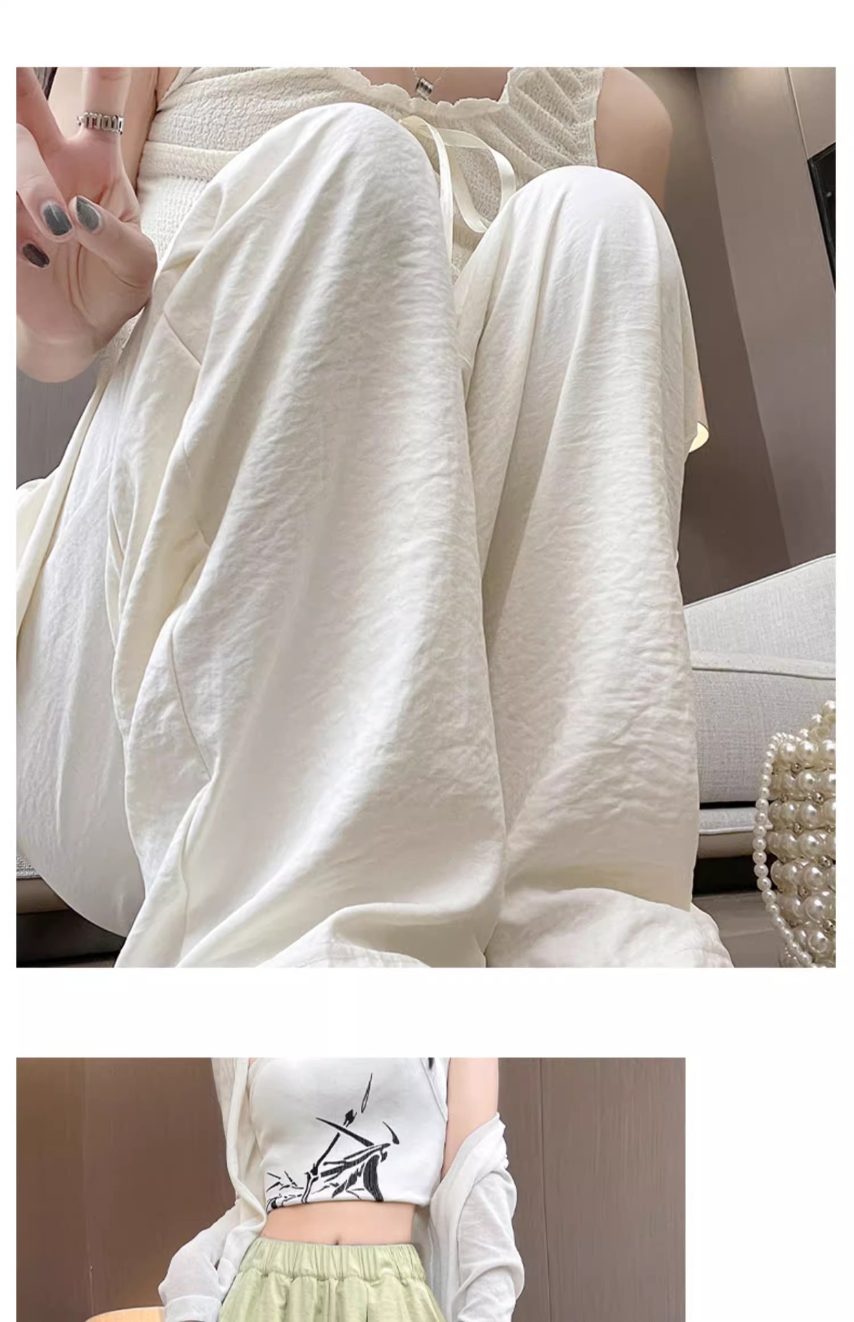 화이트 밀크 푸 야마모토 바지 여성의 봄과 여름 2025 새로운 높은 허리 좁은 버전 작은 슬랙 아이스 실크 바지