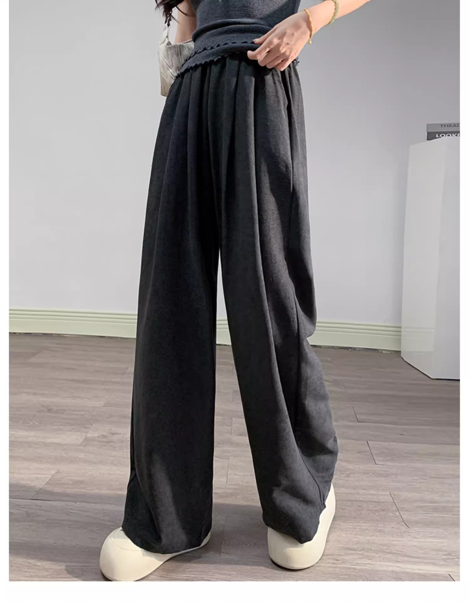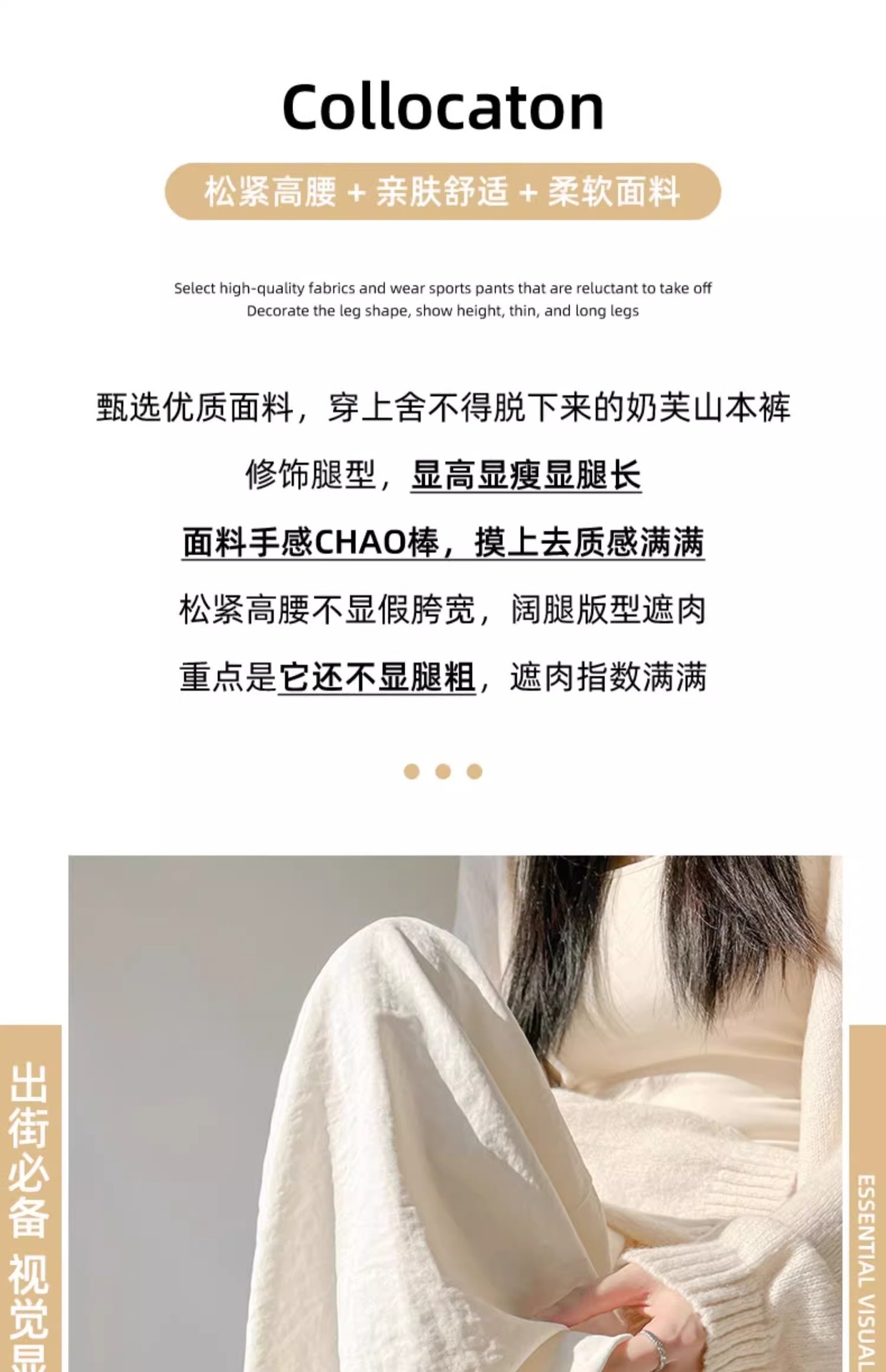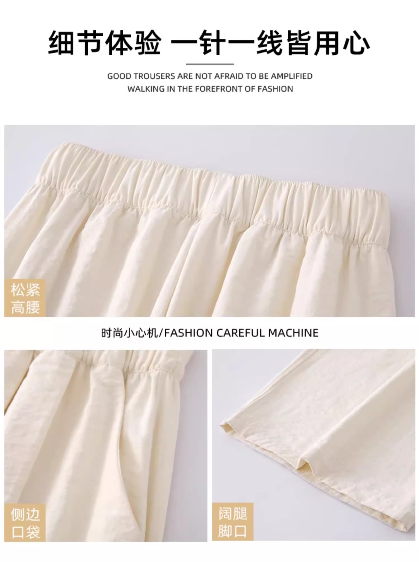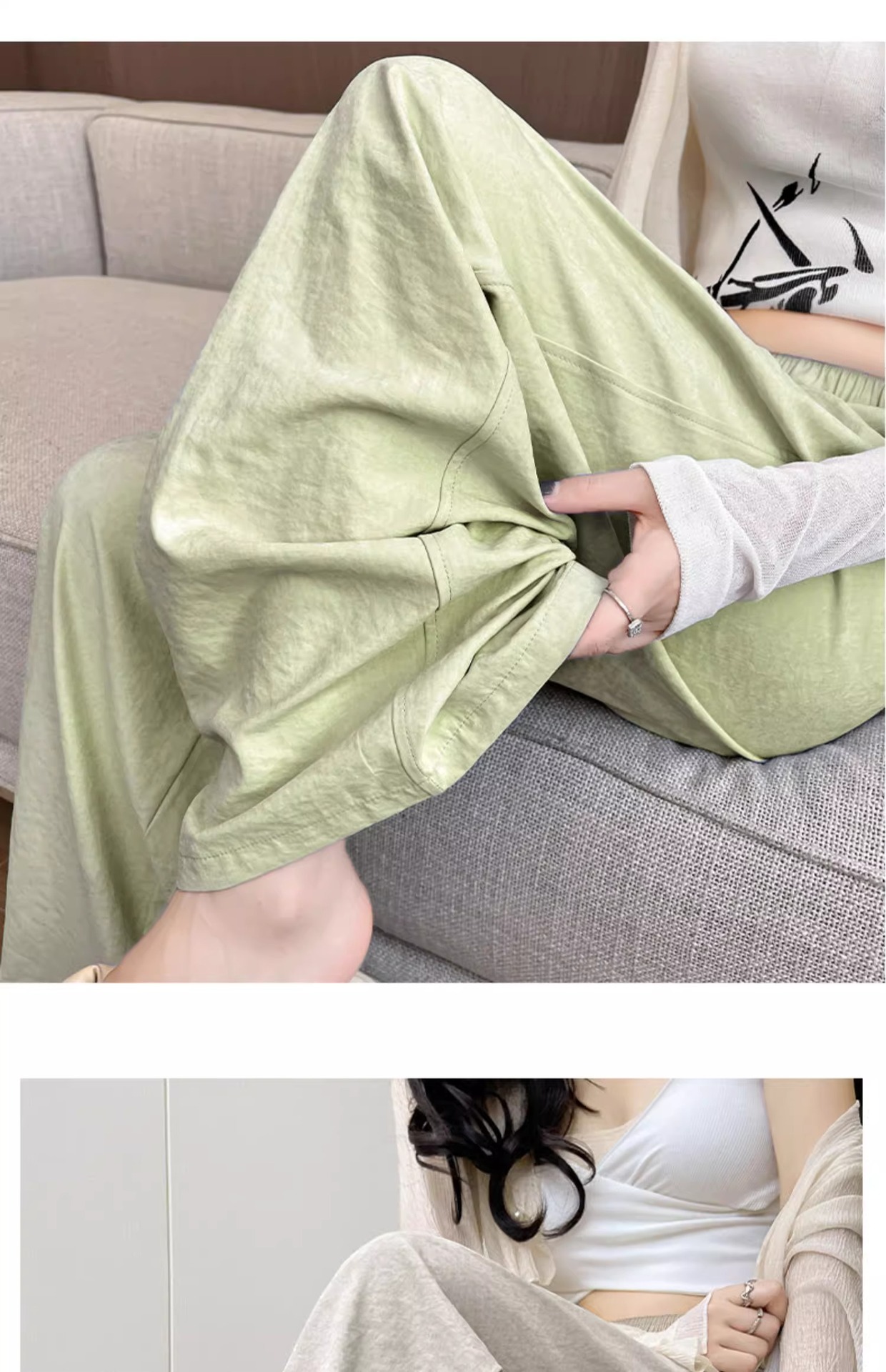 화이트 밀크 푸 야마모토 바지 여성의 봄과 여름 2025 새로운 높은 허리 좁은 버전 작은 슬랙 아이스 실크 바지