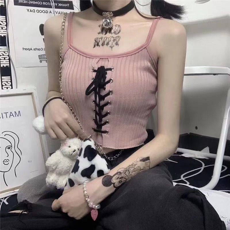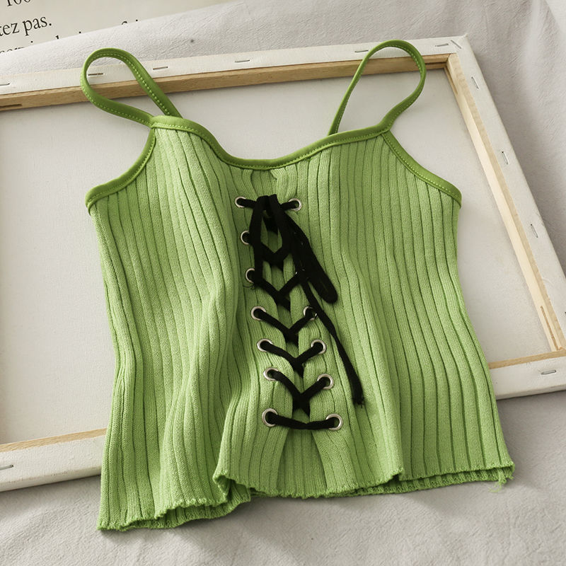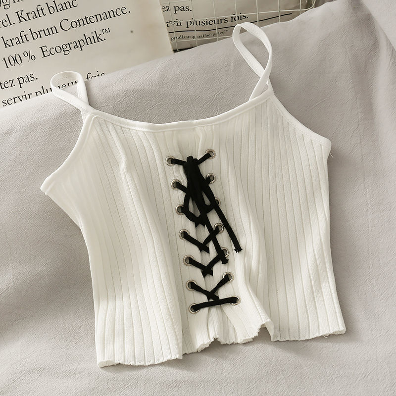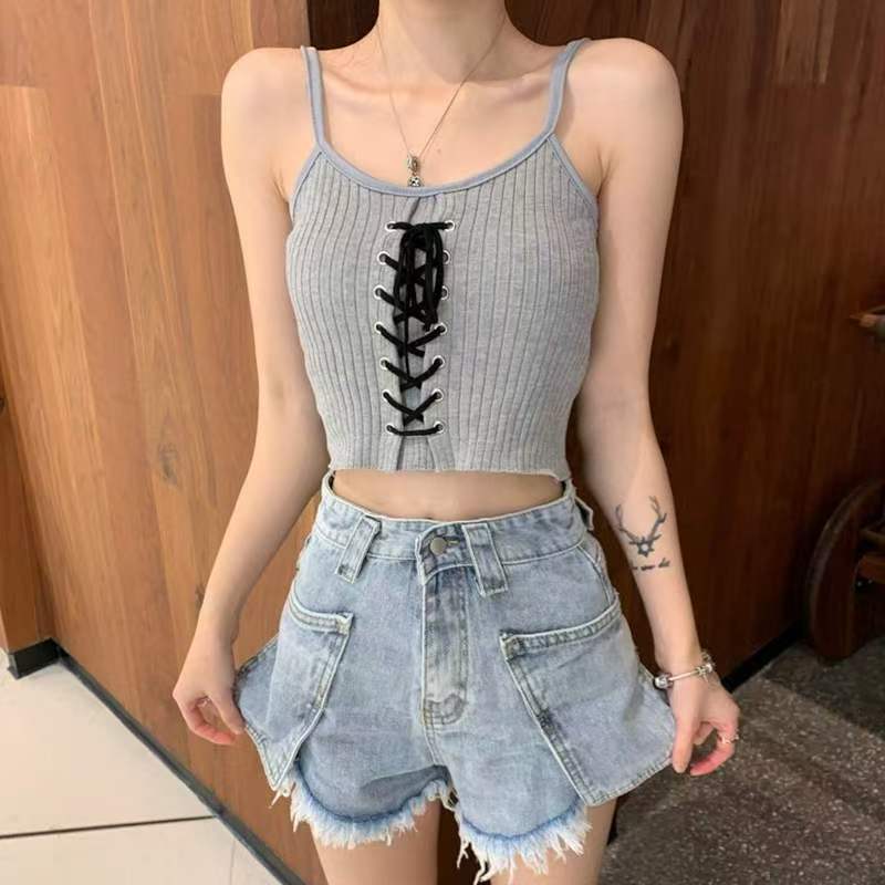 뜨거운 소녀 작은 카미 솔 여성의 여름 외부 내부 착용 디자인 틈새 서랍 스트랩 높은 허리 배꼽 짧은 탑스토어 가기