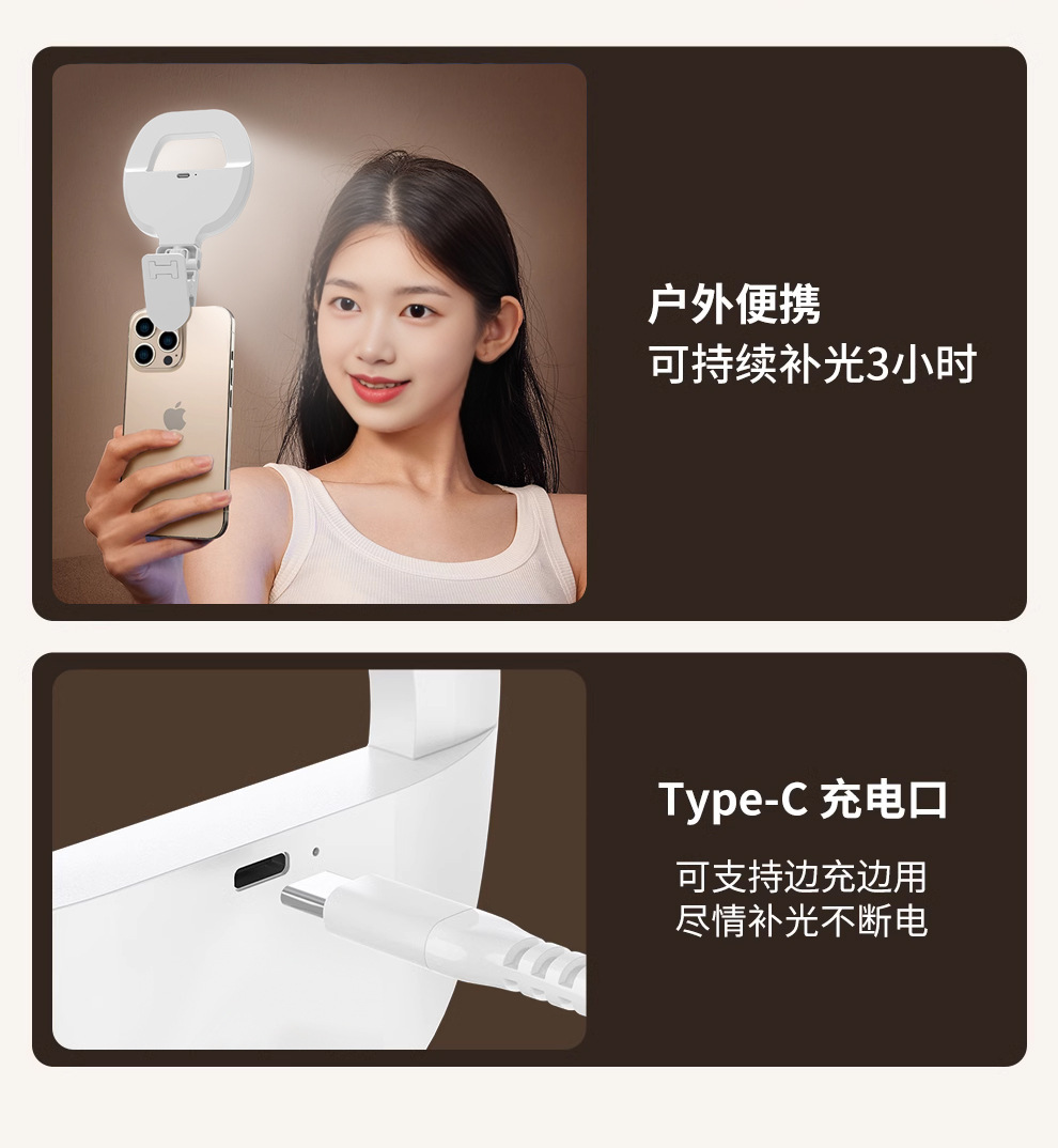 휴대 전화 충전 라이트 휴대용 야외 셀카 얼굴 포켓 라이트 뷰티 led 클립 라이트 충전식 분위기 조명