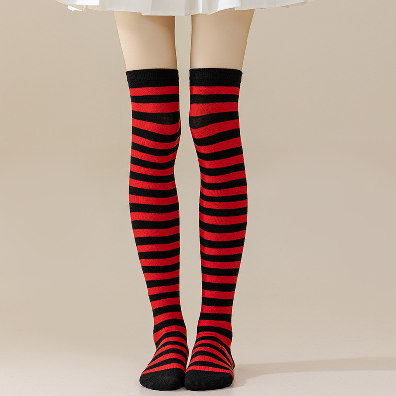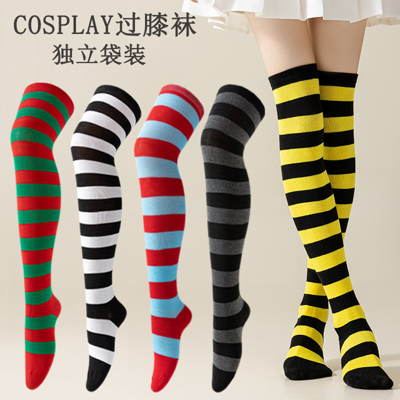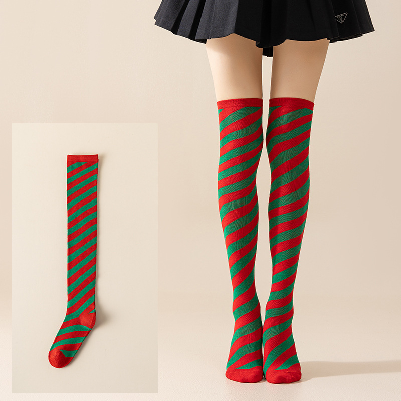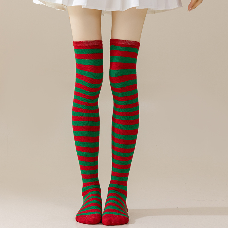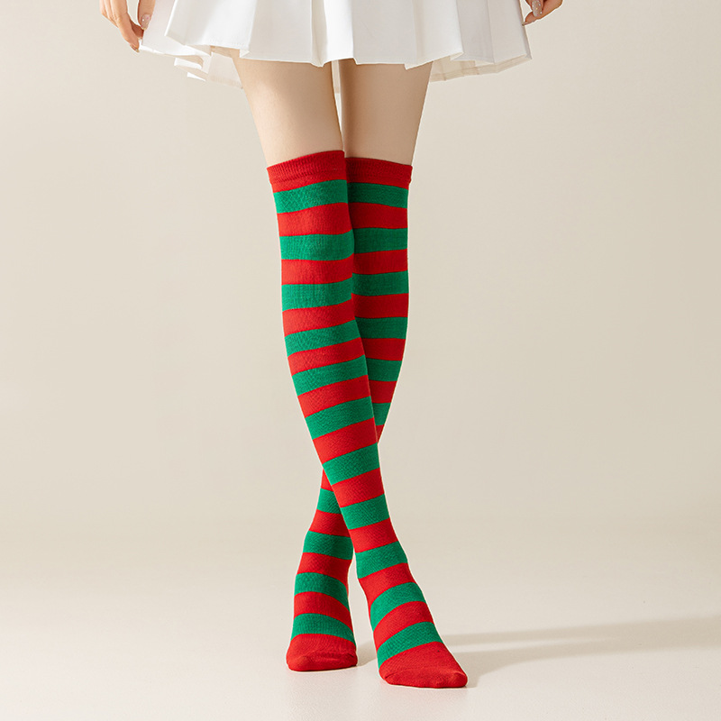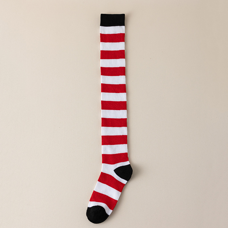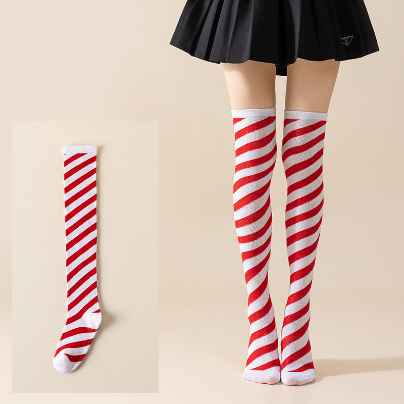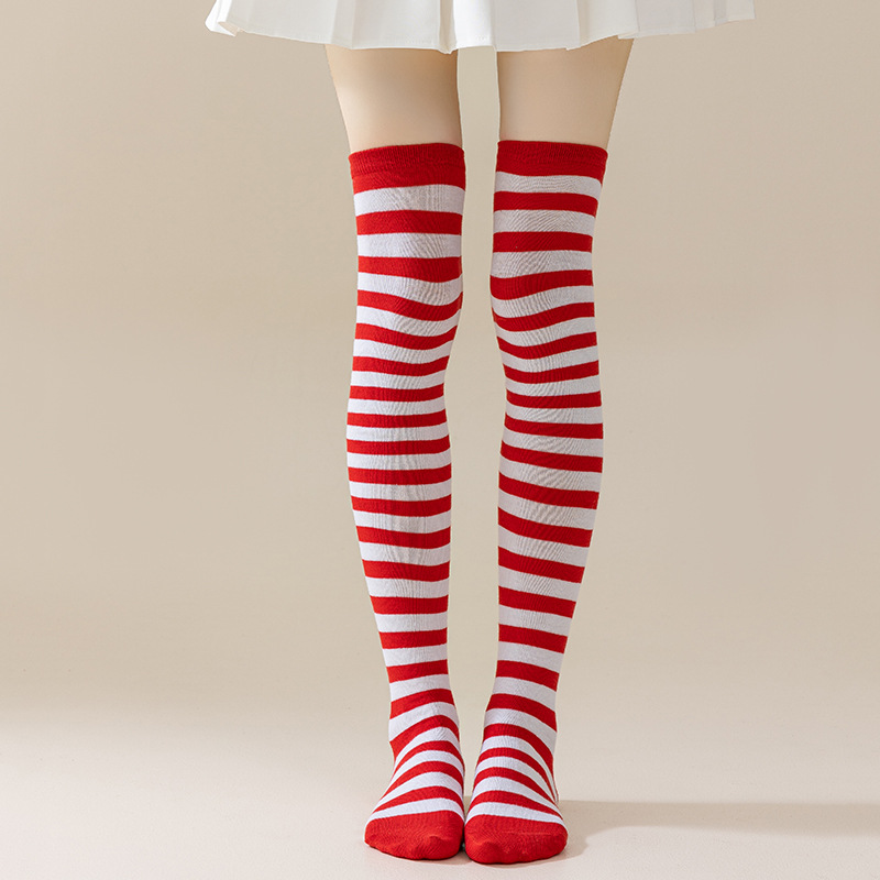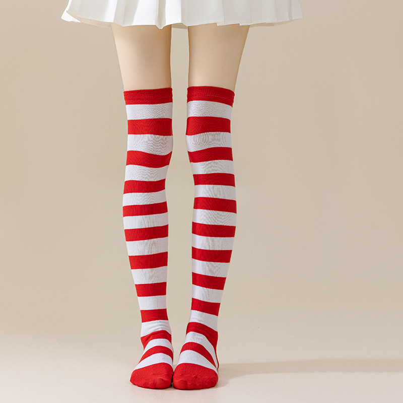 국경 간 여성 COSPLAY 애니메이션 줄무늬 크리스마스 JK 긴 배럴 다리가 무릎 양말 위로 허벅지스토어 가기
