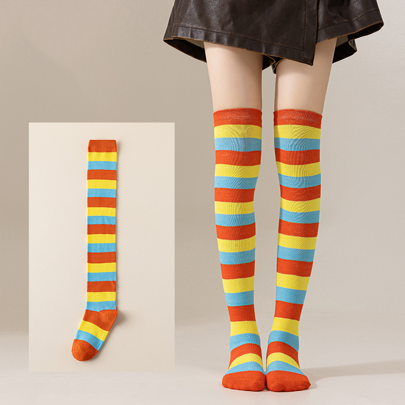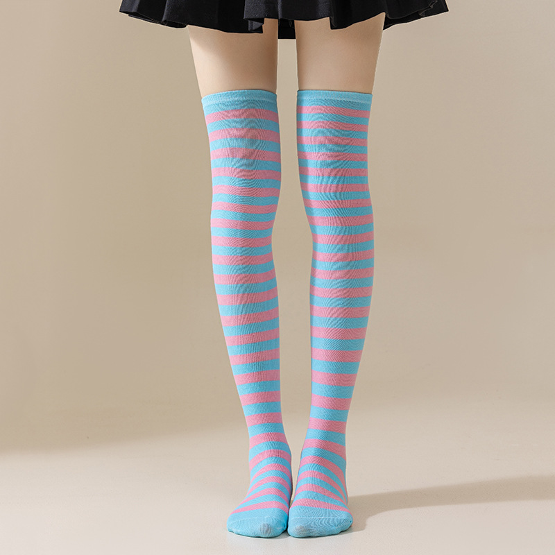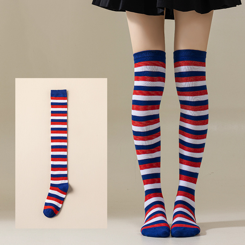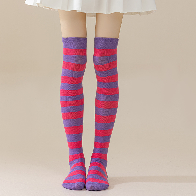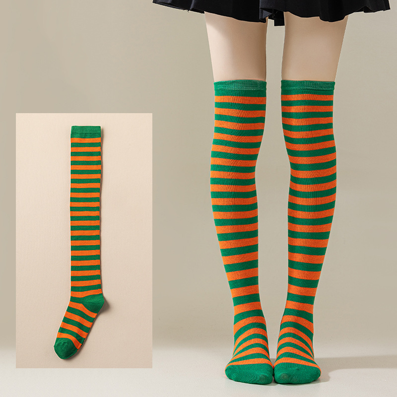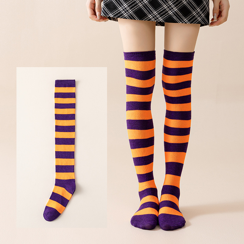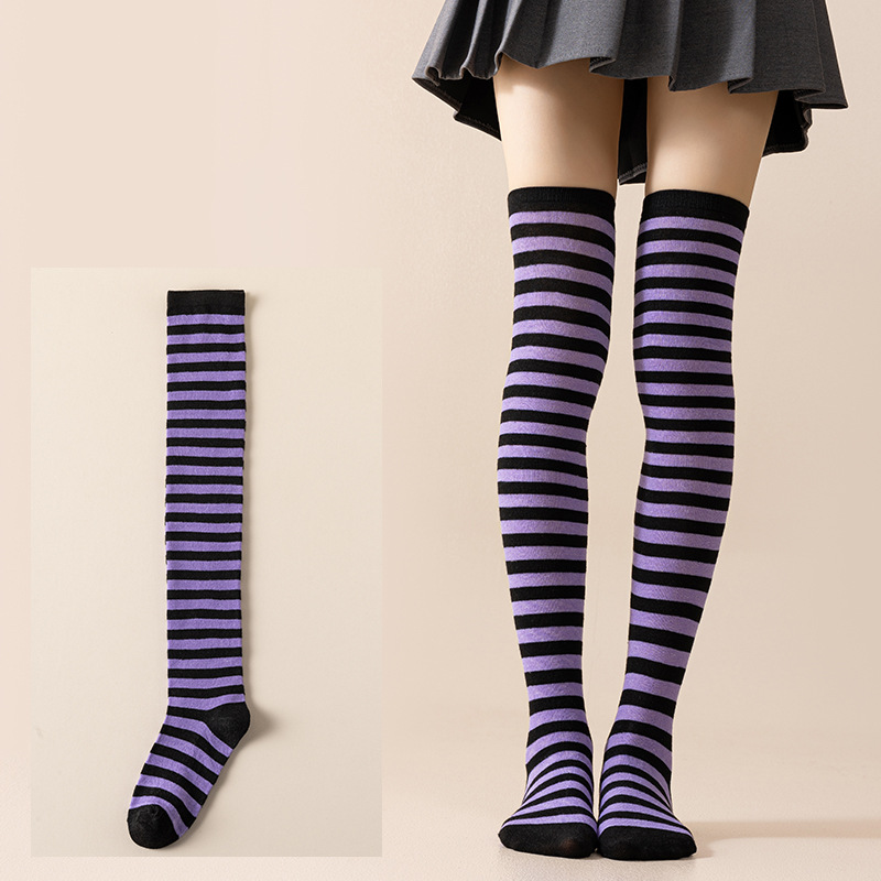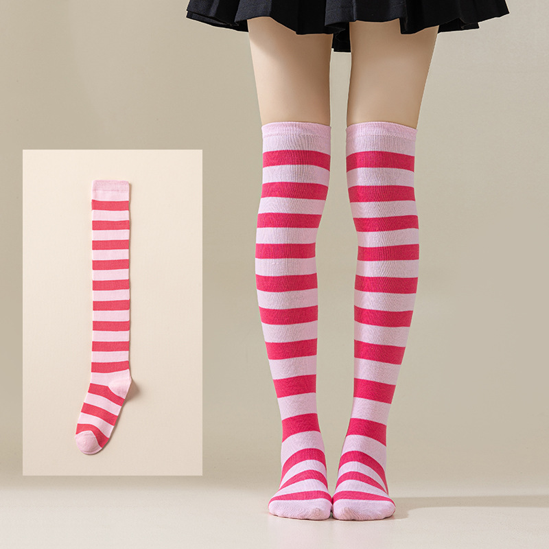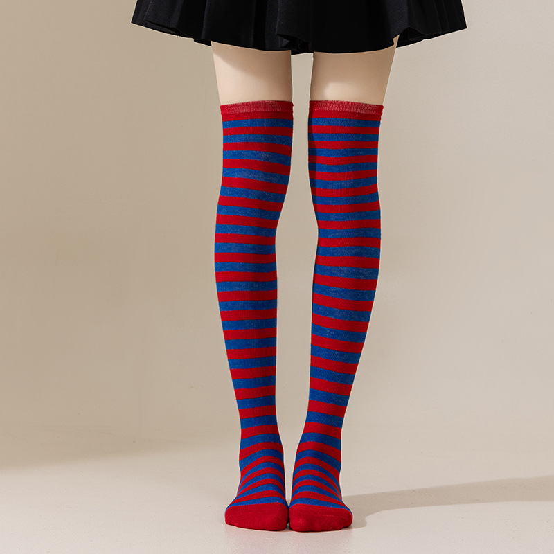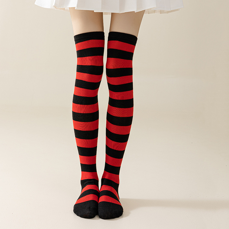 국경 간 여성 COSPLAY 애니메이션 줄무늬 크리스마스 JK 긴 배럴 다리가 무릎 양말 위로 허벅지스토어 가기