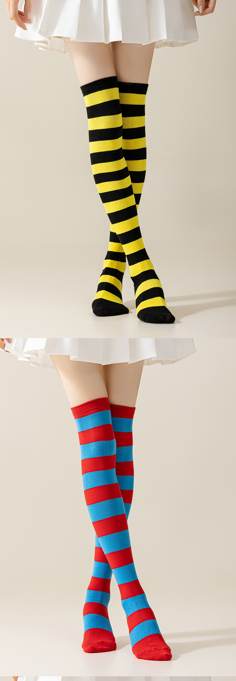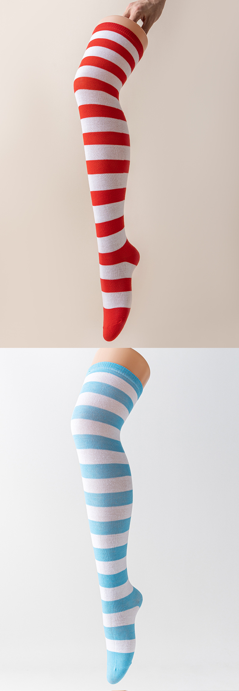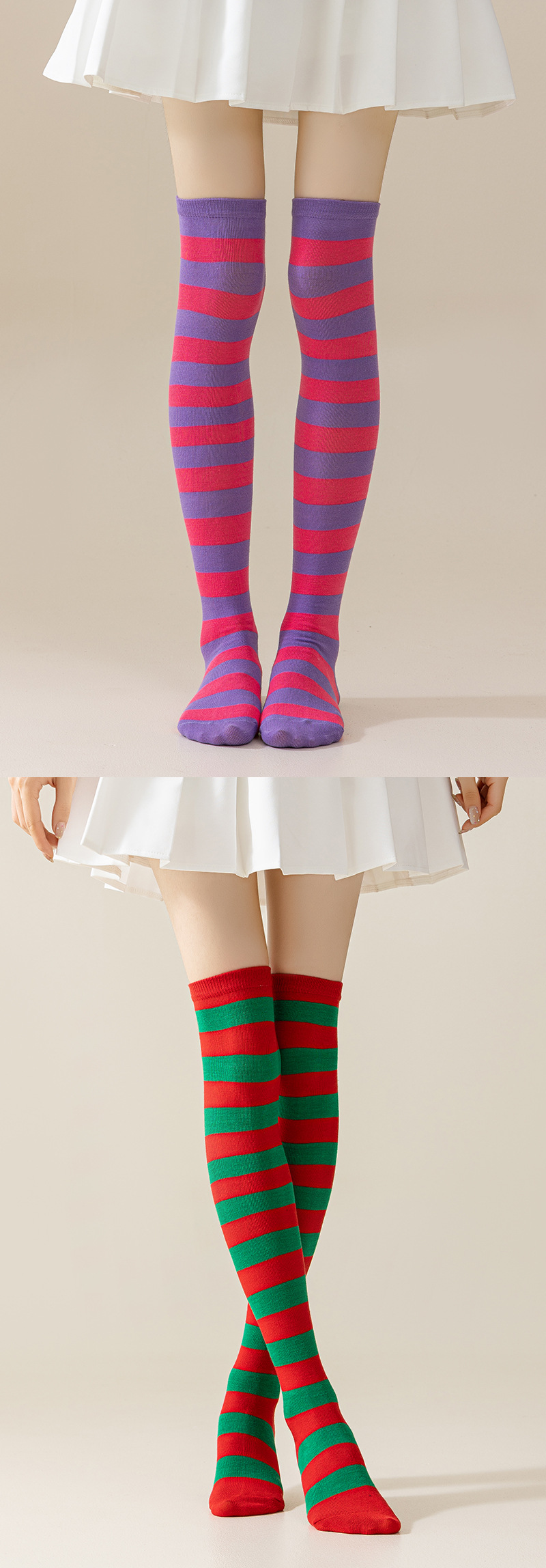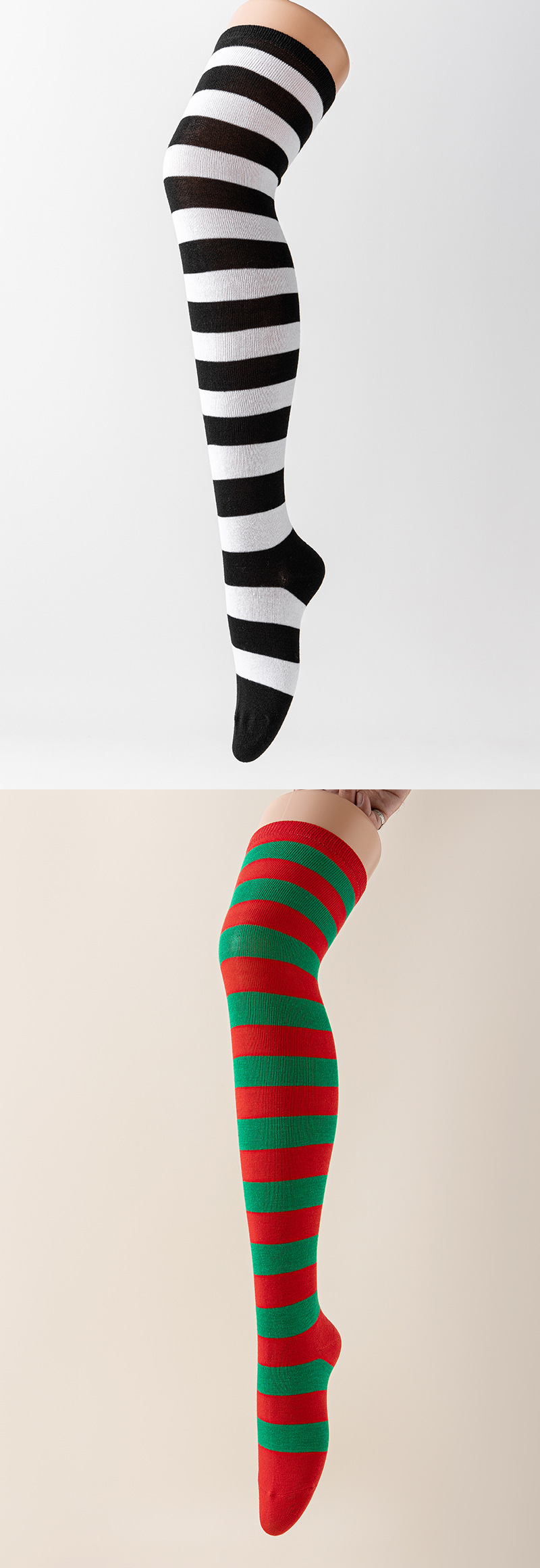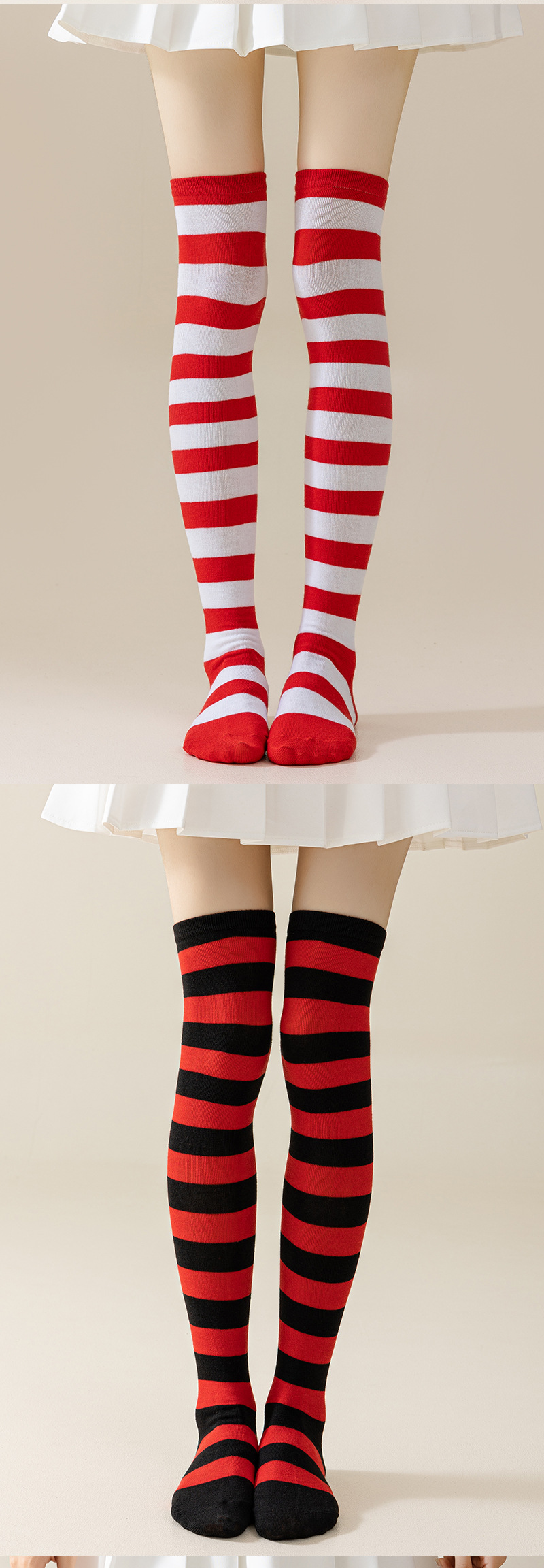 국경 간 여성 COSPLAY 애니메이션 줄무늬 크리스마스 JK 긴 배럴 다리가 무릎 양말 위로 허벅지스토어 가기